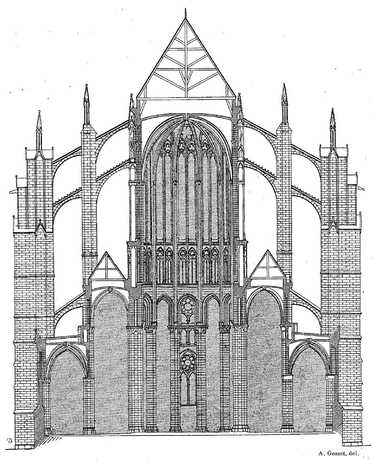- Coupe sur le choeur par A. Gosset extrait de Eugène LEFEVRE-PONTALIS, Congrès archéologique de France, 72ème session, Beauvais, 1905, Société française d’archéologie, Paris et Caen, 1906, face p. 12.