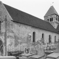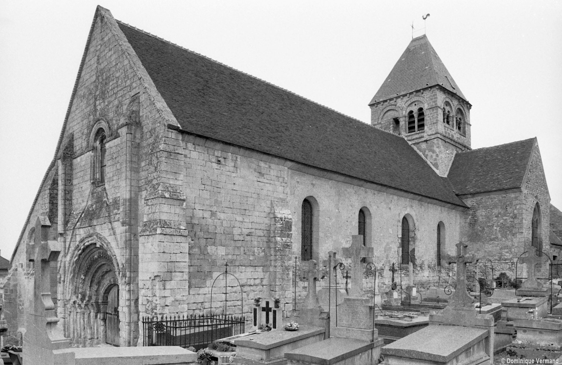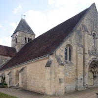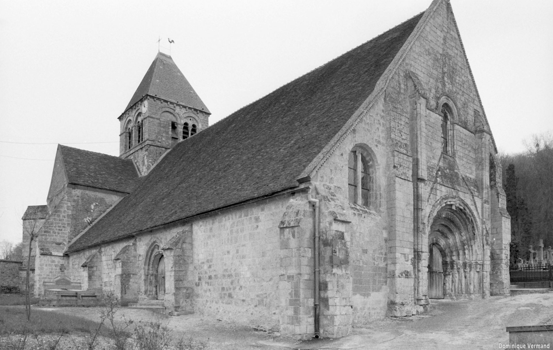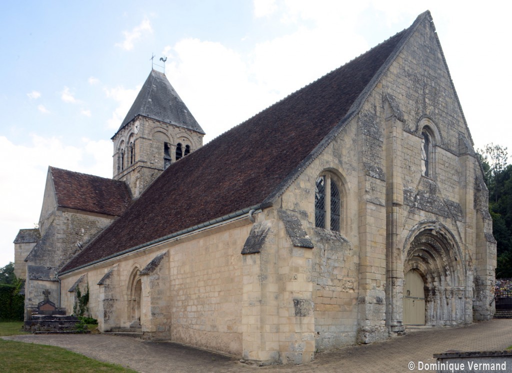 Vers les années 1140, la nef est prolongée par un avant-corps où se remarquent des colonnes engagées avec chapiteaux qui suggèrent qu’une tribune, peut-être en bois, existait à l’origine. Des arcatures aveugles animent la partie basse. A l’extérieur, et malgré les mutilations du temps, le portail en plein cintre, avec ses multiples voussures et son décor de bâtons brisés a encore fort belle allure et compte parmi les réalisations les plus achevées de cette époque avec celui de l’église voisine de Nointel.