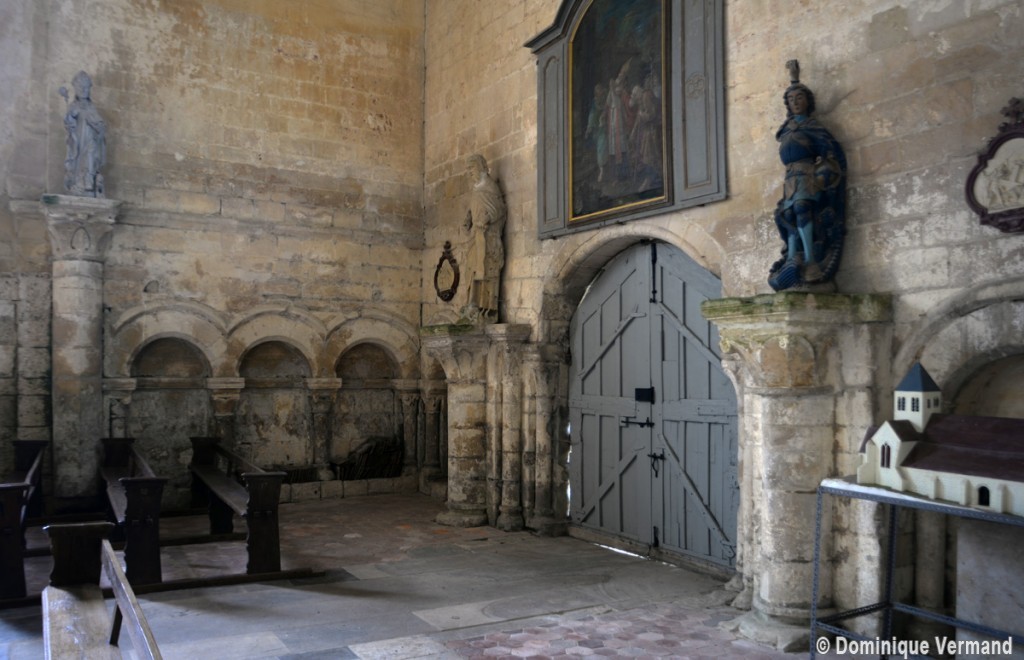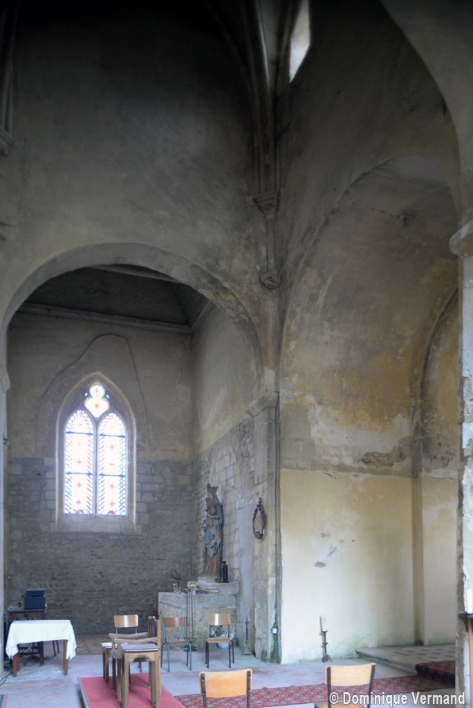 Un bas-côté a été construit au nord de la nef au début du 13ème siècle et communique avec celle-ci par quatre arcades brisées très élégantes retombant sur des piles circulaires par l’intermédiaire de chapiteaux à crochets.