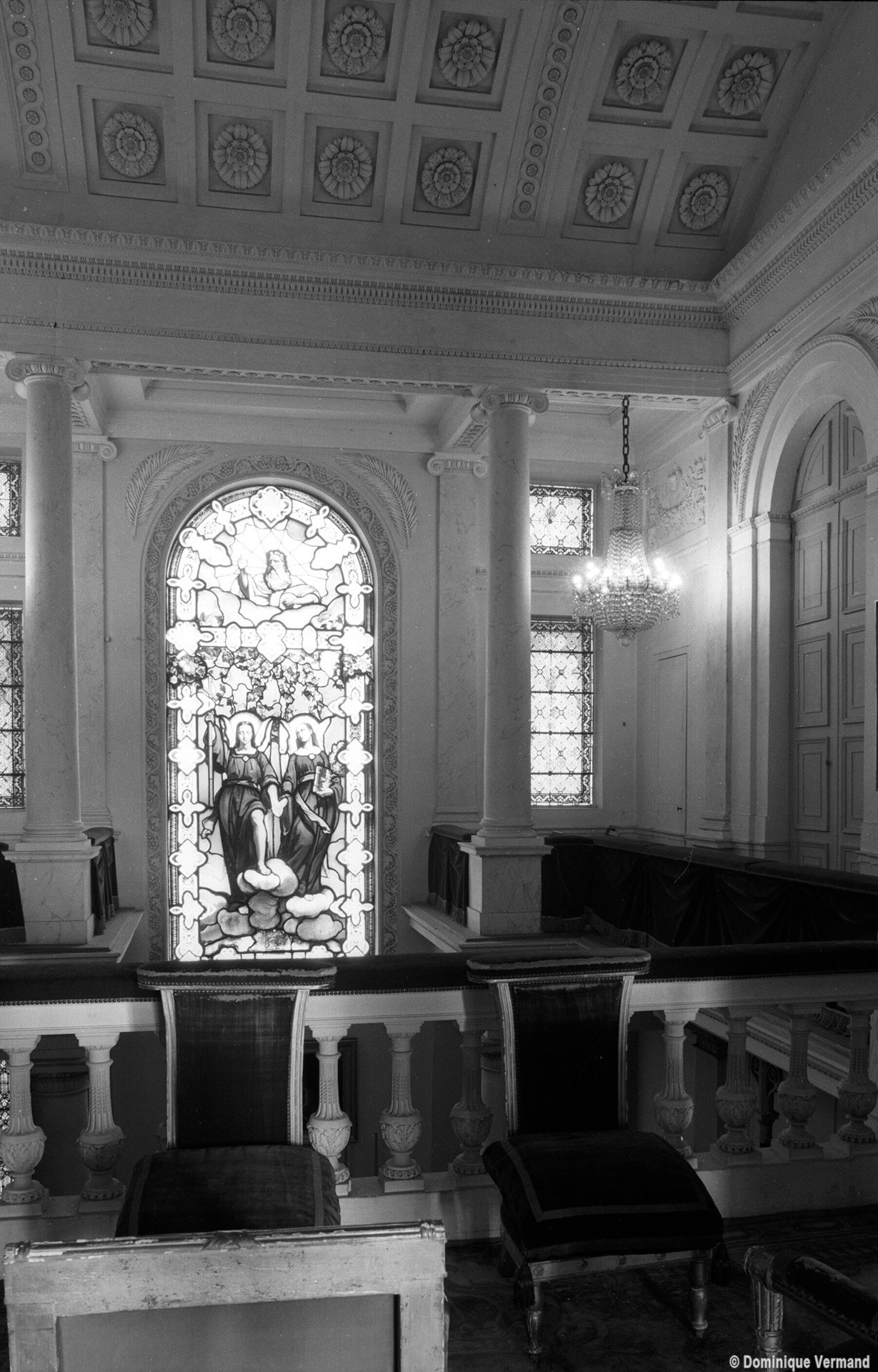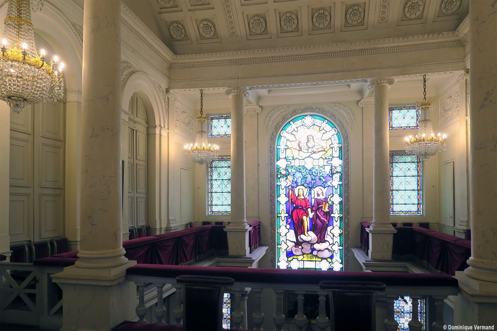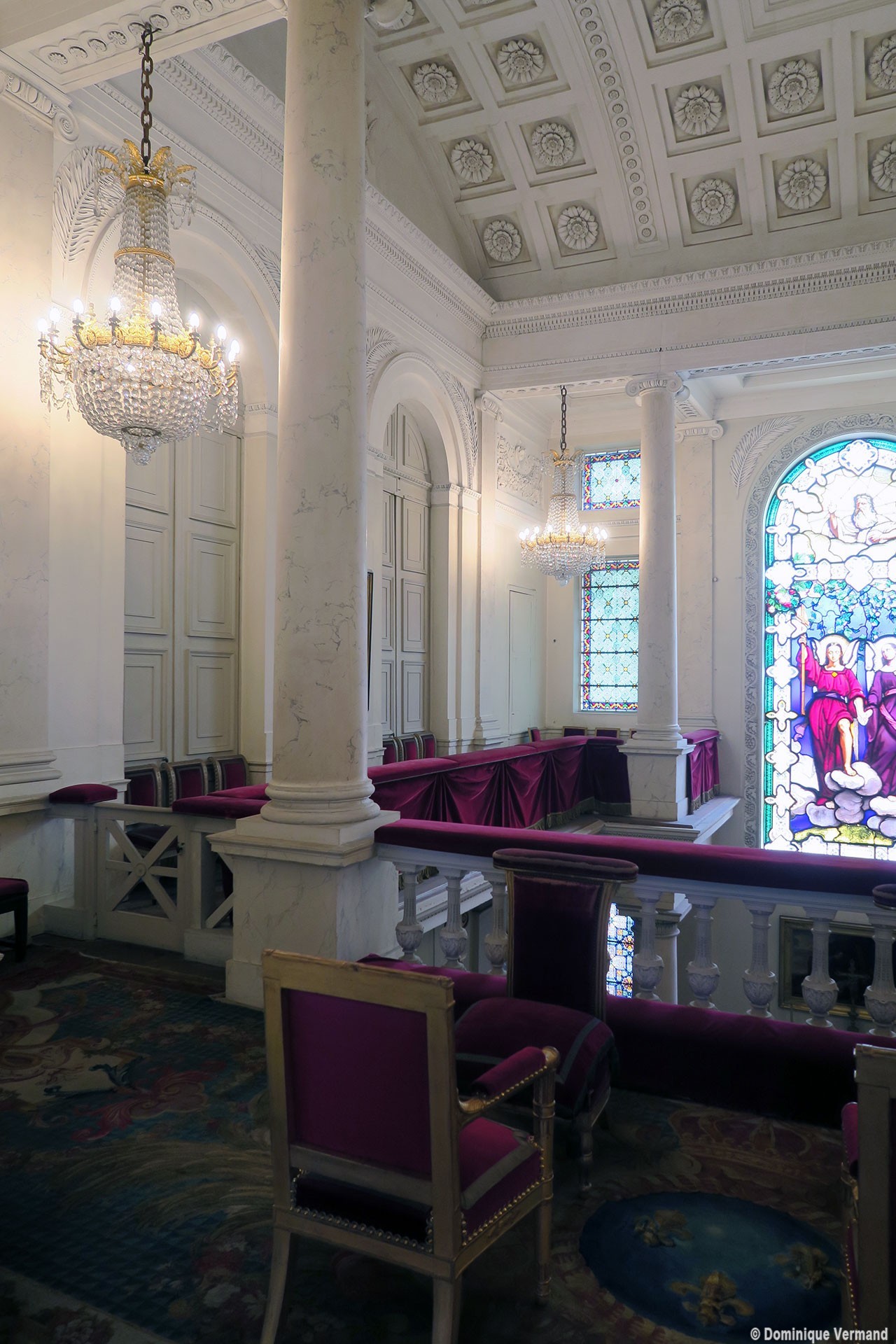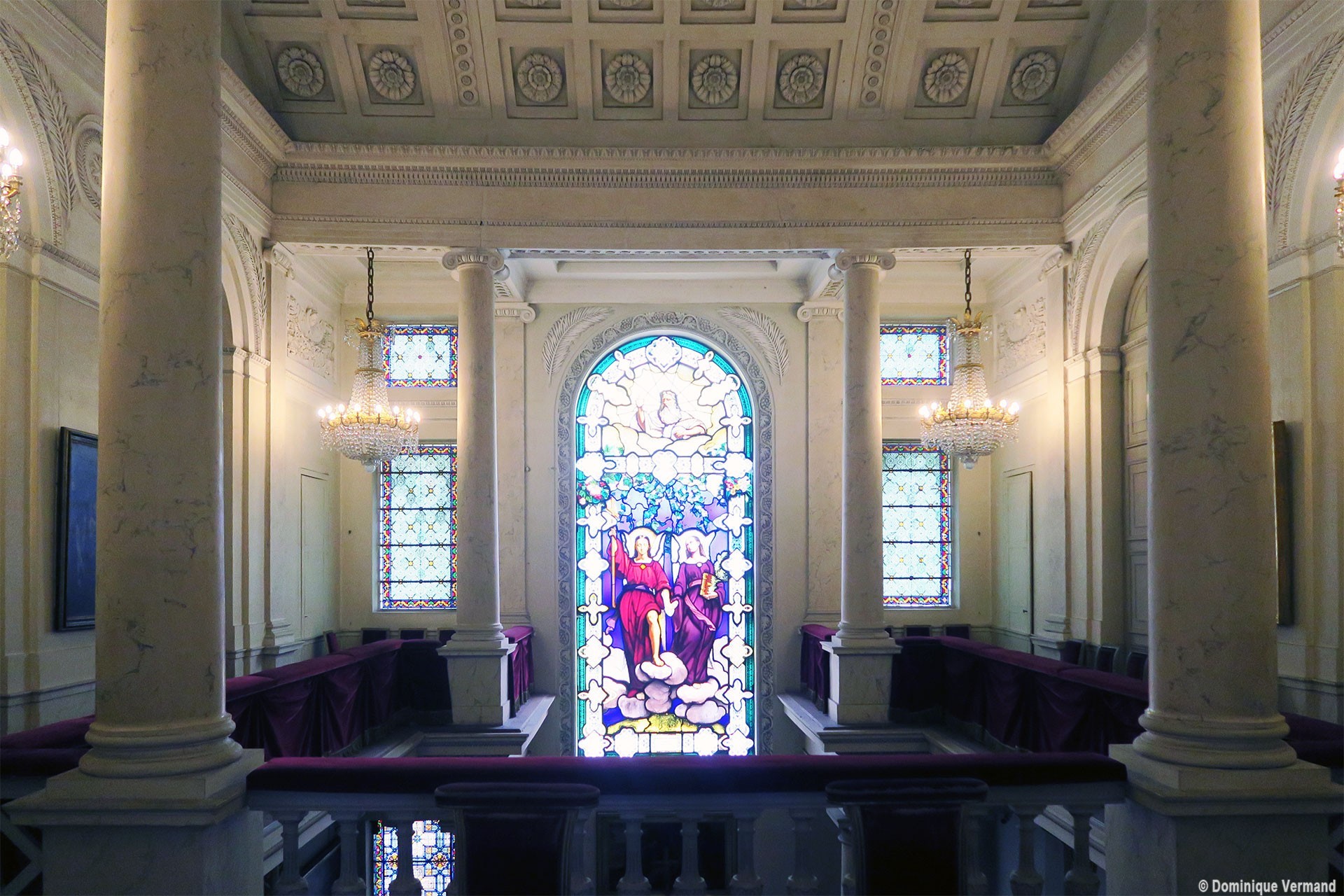 Datant essentiellement du Premier Empire mais modifiée sous Napoléon III, la chapelle du château est une construction dont les dimensions plutôt modestes n’altèrent en rien, cependant, un caractère monumental bien réel. D’une structure presque parfaitement symétrique, elle est pourvue, sur trois côtés, d’une tribune en relation directe avec les appartements impériaux, comme il est d’usage dans ce type d’édifice. Elle est surtout célèbre pour avoir servi de cadre, le 9 août 1832, au mariage de la fille aînée de Louis-Philippe, Louise, avec le roi des Belges Léopold 1er (D.Vermand, 2002).