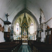 Saint-Pierre se signale de loin par son imposante tour qui domine un très beau chœur de la fin du gothique et une modeste nef unique reconstruite en 1834 comme l’indique une date inscrite sur le pignon ouest. Le chœur est composé de deux travées droites et d’une abside à cinq pans.