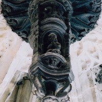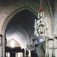Dans le chœur, d’importantes et remarquables statues en pierre (17ème siècle) représentant le Père éternel tenant le Christ crucifié, la Vierge, saint Pierre, saint Paul et saint Caprais proviennent de la chapelle Saint-Sauveur, aujourd’hui détruite (2005).