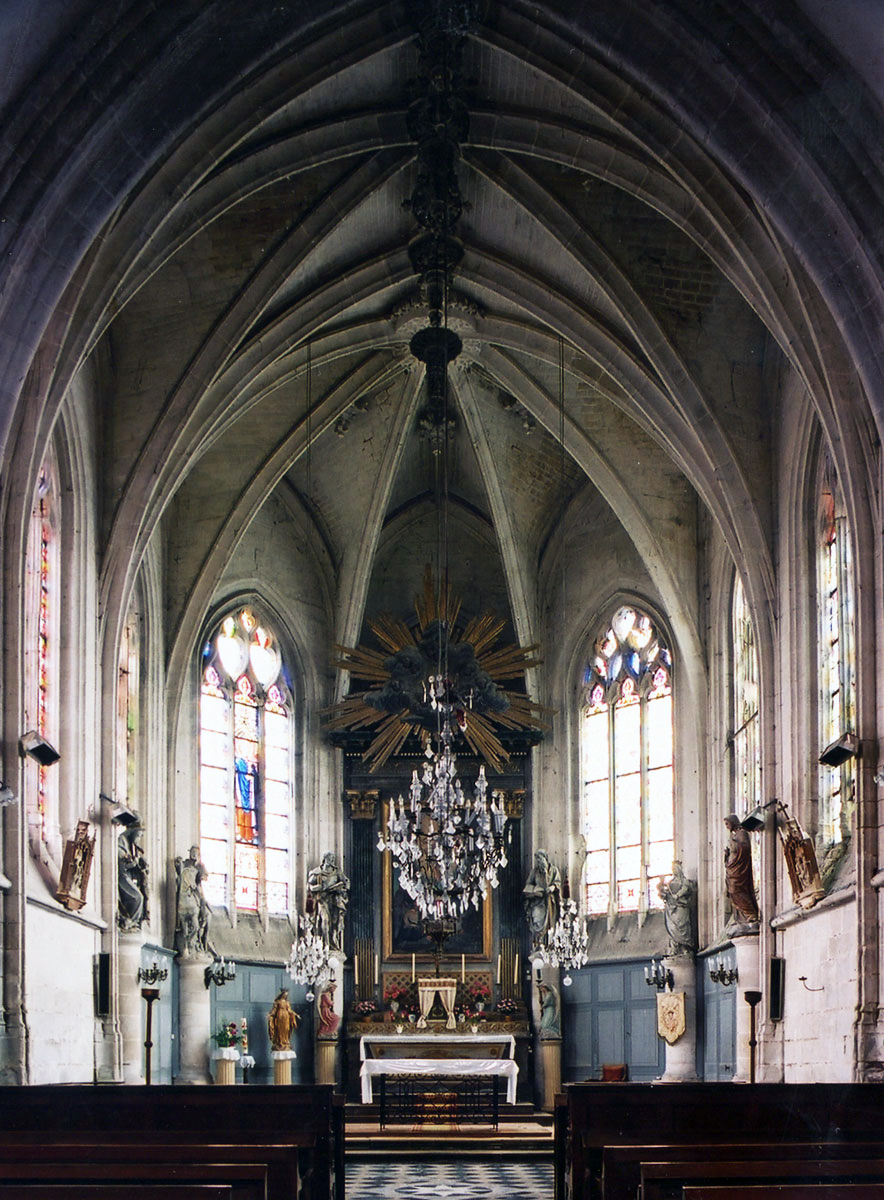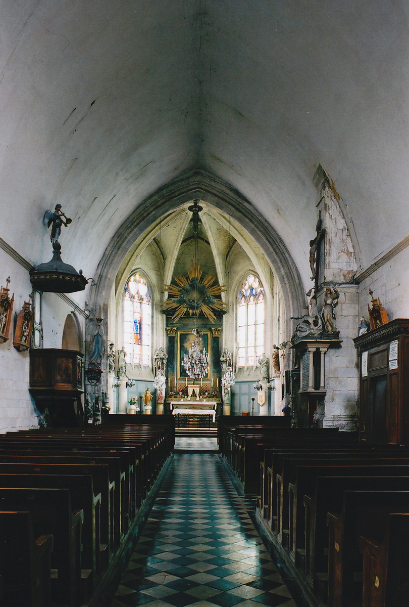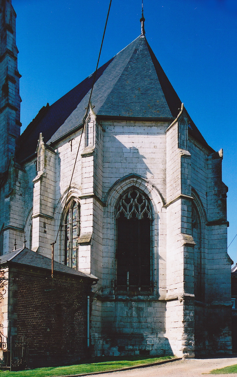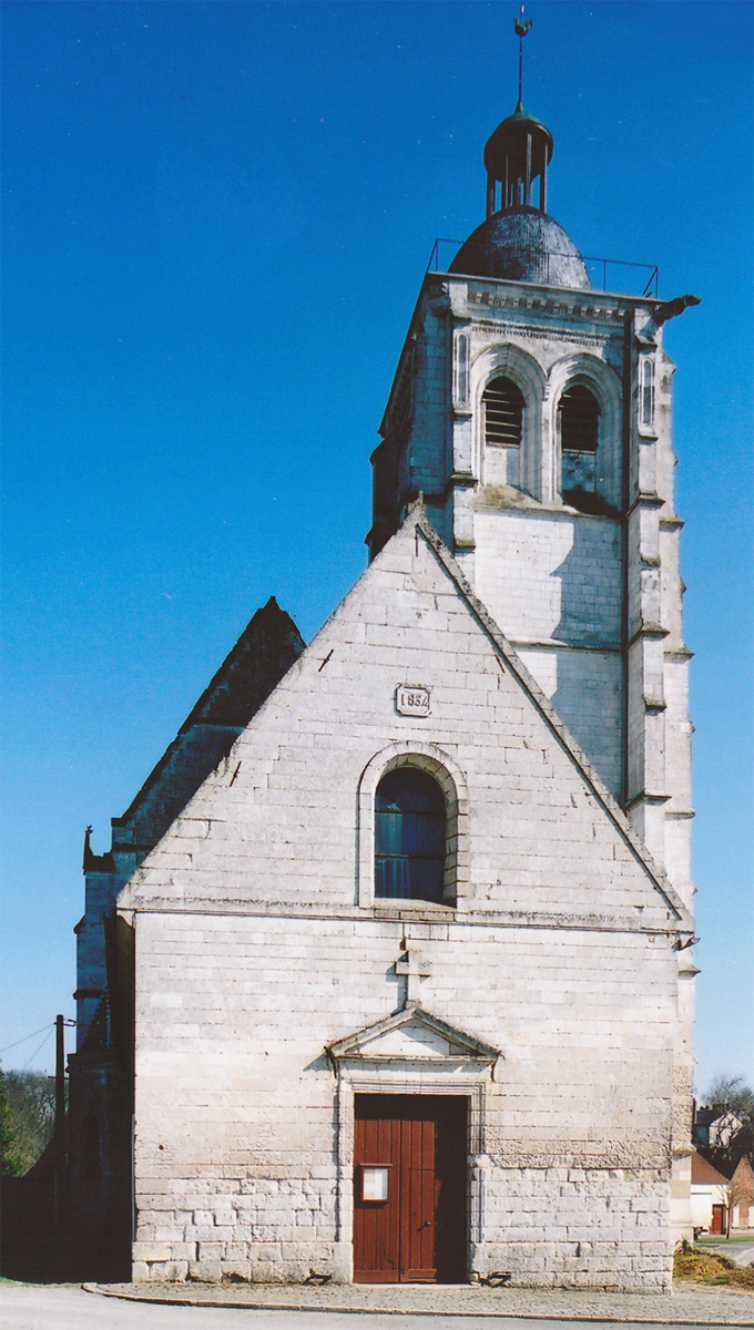 A l’angle nord-ouest de la tour, une amorce de fenêtre montre que la reconstruction d’une nef de même élévation que le chœur avait été envisagée. Des traces de boulets rappellent les combats que se sont livrés ici Huguenots et Ligueurs en 1589. A l’extrémité de la nef, deux petites chapelles ont été bâties en 1874 par Sellier-Delaforge en commémoration de la bénédiction de leur usine. Elles comportent des vitraux de la même époque et constitue un bon exemple de mécénat religieux, comme il s’en pratiquait beaucoup à l’époque.