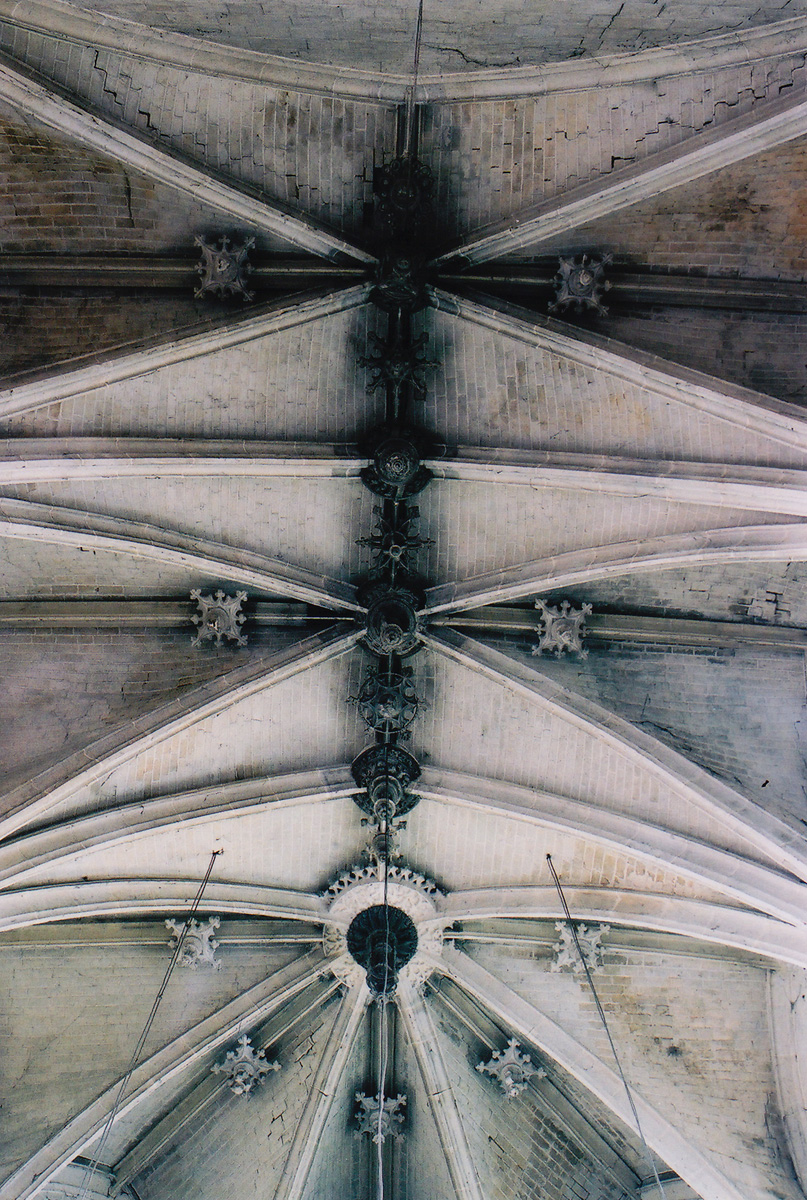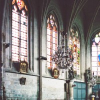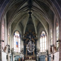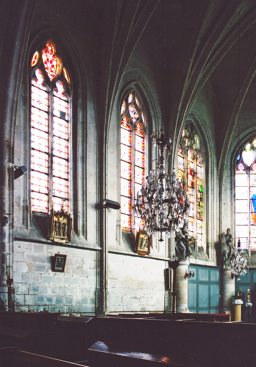 A l’intérieur, l’ensemble produit une grande impression d’unité. Les neuf fenêtres, toutes de même hauteur, prennent appui sur un soubassement nu terminé en larmier qu’interrompt à intervalles réguliers la retombée des voûtes. Les fenêtres sont divisées en trois lancettes dans l’abside et deux dans les travées droites et montrent en partie supérieure un beau réseau flamboyant qui comporte de légères variantes. Au sud, une fenêtre est plus simple. Comme c’est parfois le cas à cette époque, ces fenêtres n’atteignent pas la lunette de la voûte et une portion de mur nu subsiste au-dessus.