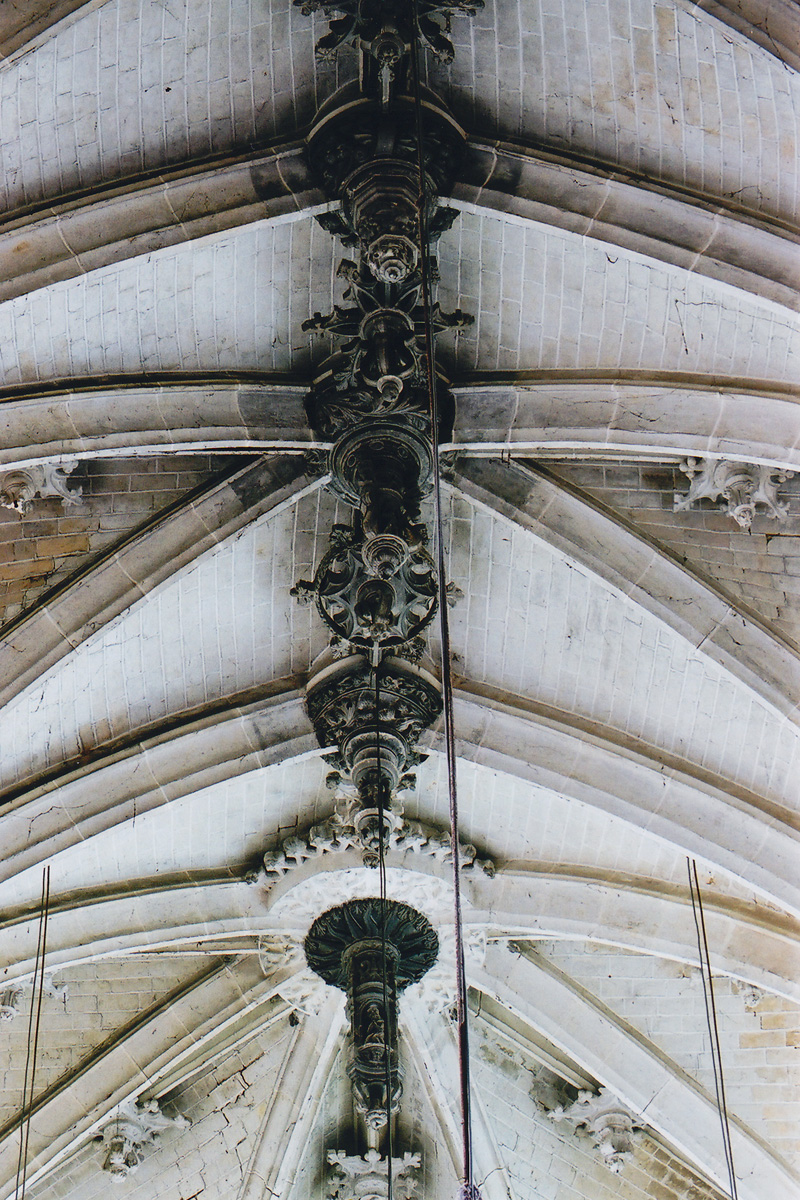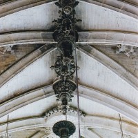 Avec celles de Paillart, d’Hardivillers, de Reuil-sur-Brêche…les voûtes comptent parmi les plus belles de la région. La croisée d’ogives traditionnelle est complétée par des liernes (nervures transversales), un procédé courant à la fin du gothique où l’on complique volontiers, parfois jusqu’à l’extrême, le dessin des voûtes. Ce qui fait la richesse de celles d’Esquennoy ce sont les dix-neuf clefs pendantes de tailles variées qui émaillent son réseau. Leur décor raffiné appartient déjà au style de la Renaissance. Plus importante, la clef de l’abside est décorée de personnages abrités dans des niches.