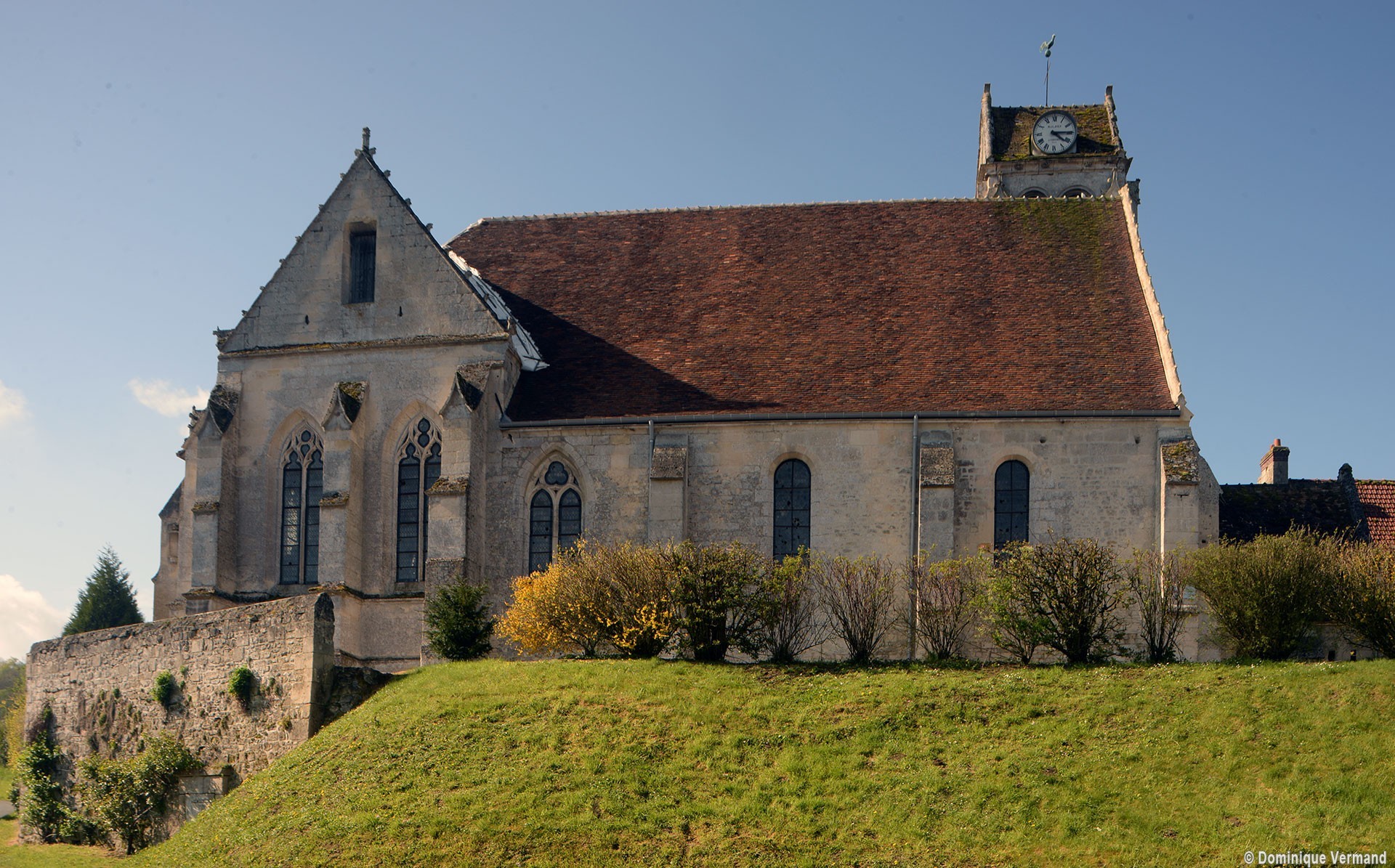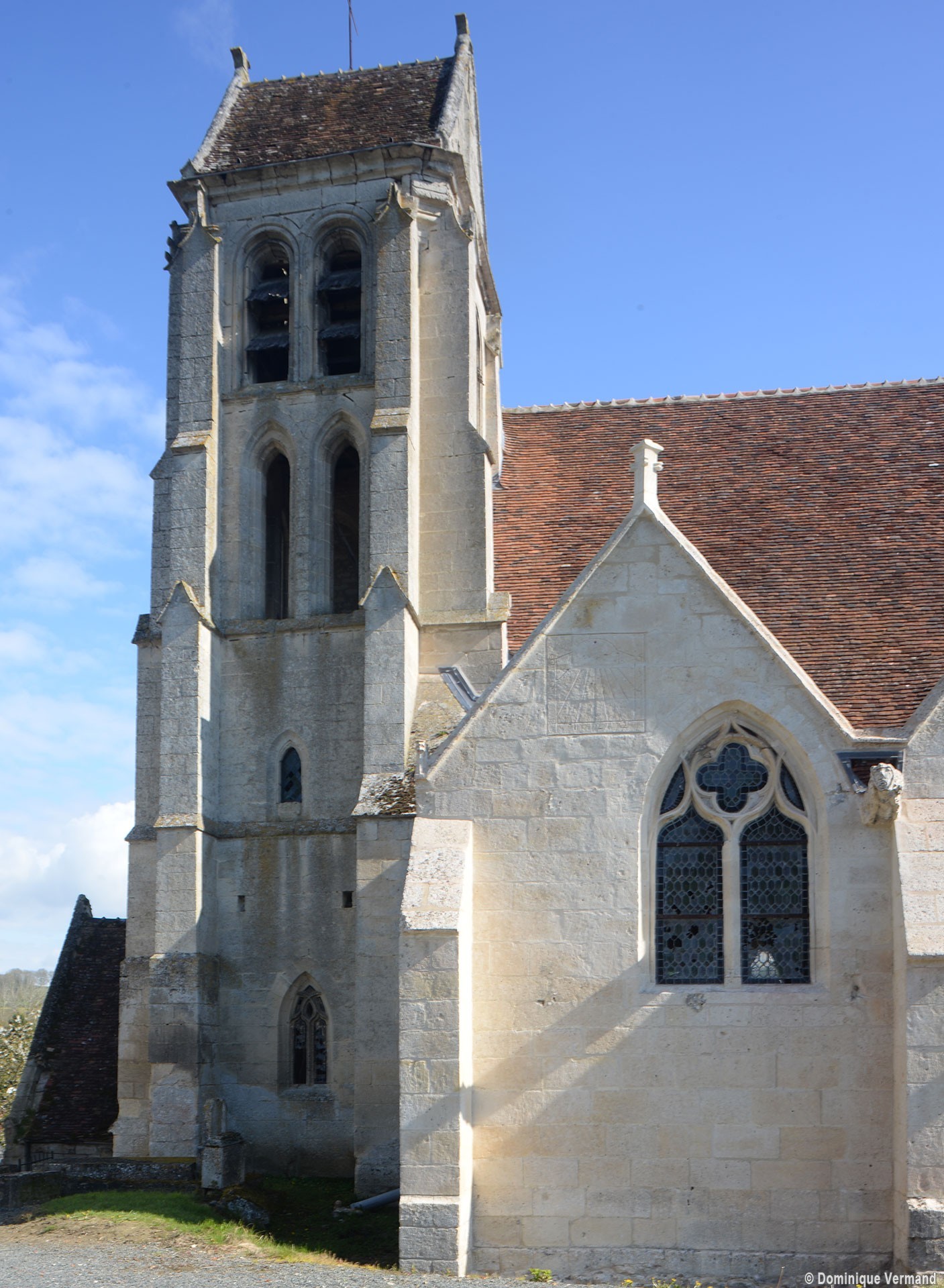 Assis sur un replat du versant méridional de la vallée de l’Automne, Saint-Denis est un bel édifice presque totalement reconstruit, en deux campagnes, au 16ème siècle. Son plan comprend une large nef avec bas-côté au sud, un choeur-halle non saillant et une abside à cinq pans. Comme il est souvent de règle à cette époque, le clocher est bâti en façade.