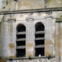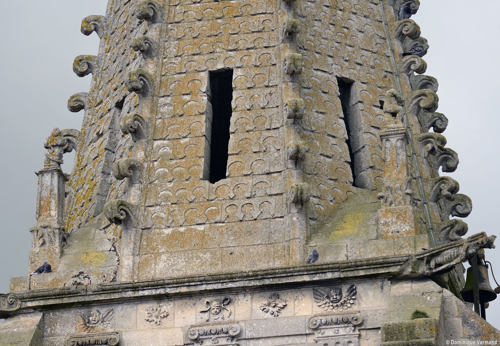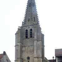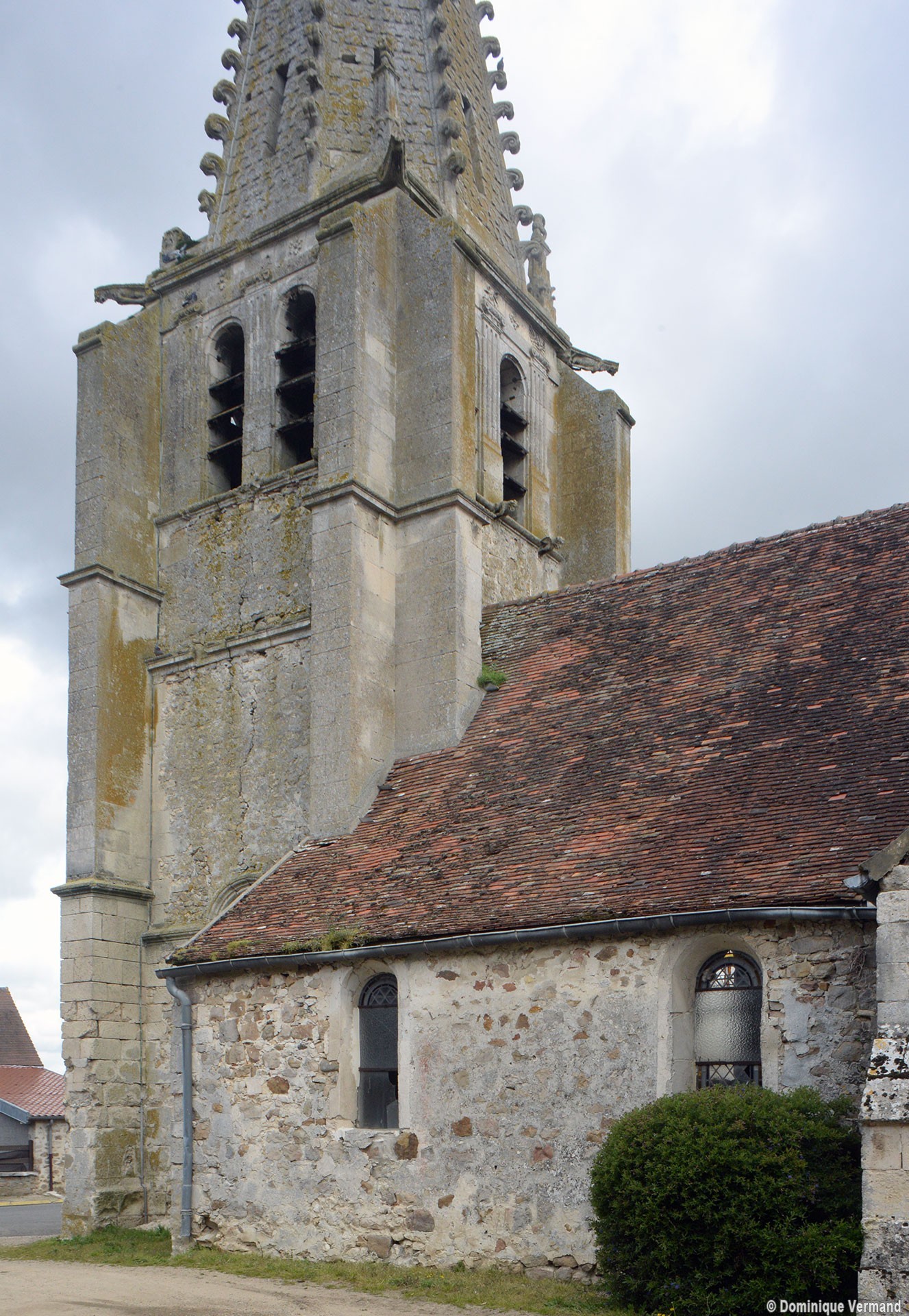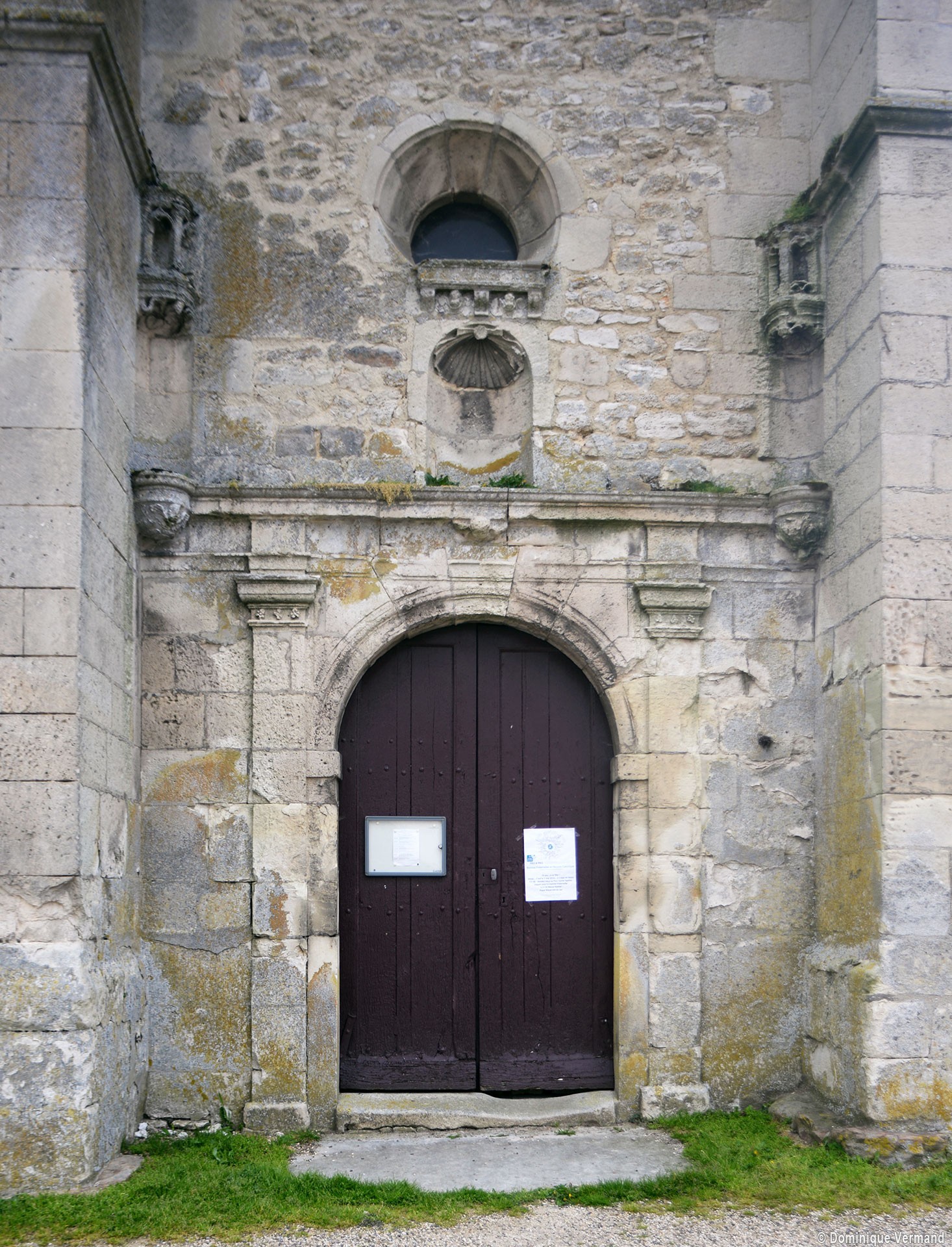 Un clocher porche, d’exécution soignée, vient compléter ces transformations. Le portail, très simple, est encadré par des pilastres lisses et surmonté d’une petite niche et d’un oculus. Au-dessus d’une importante portion de mur nu, l’étage du beffroi se signale par les pilastres cannelés à chapiteaux ioniques qui encadrent les baies en plein cintre et la délicate frise décorée de masques et de choux frisés qui tient lieu de corniche. Surmontant cette tour de style pleinement renaissance, la flèche octogonale en pierre aux arêtes garnies de crochets continue la tradition des flèches romanes et gothiques du Valois dont celle de la cathédrale de Senlis constitue le plus beau fleuron. Aux angles, une gargouille et des petits pinacles se substituent, avec moins de bonheur cependant, aux traditionnelles petites pyramides.