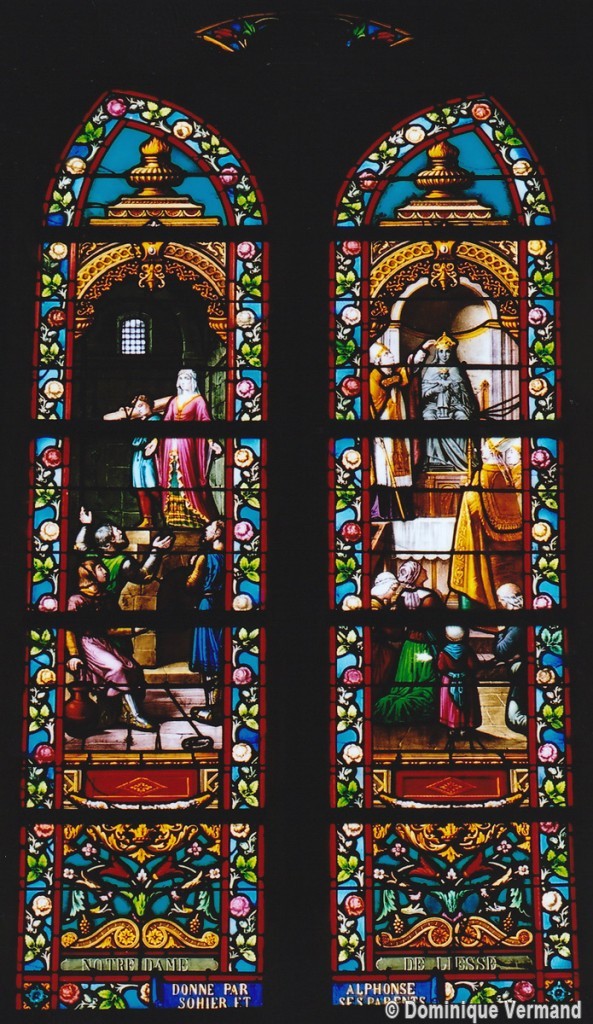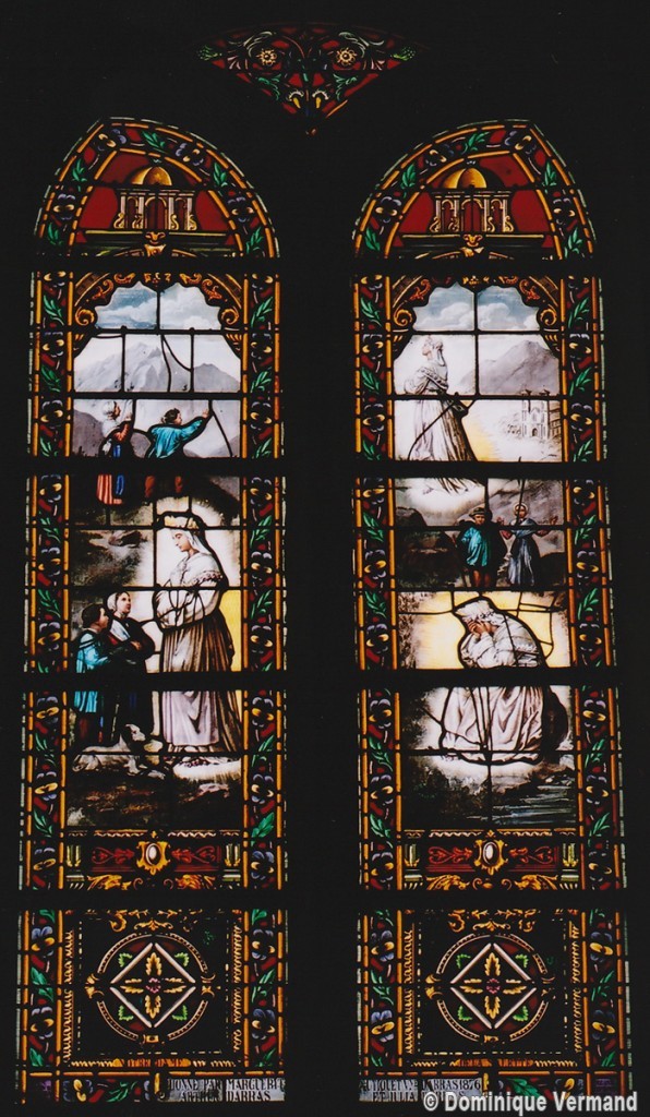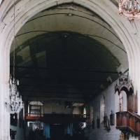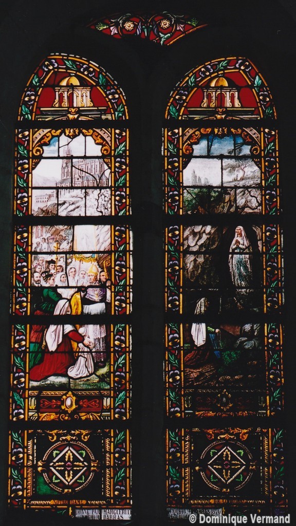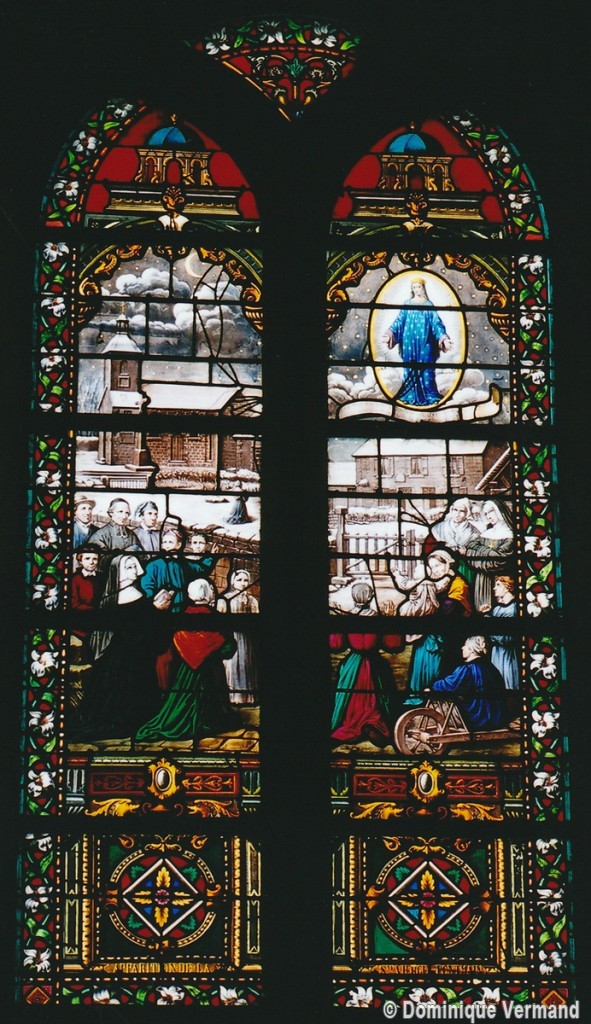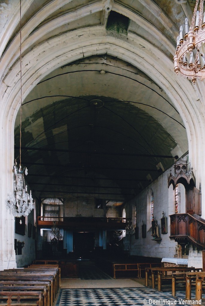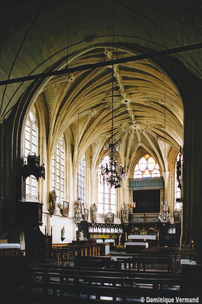 Homogène et solidement construite en pierres bien appareillées, la nef est de 1770, une date qui s’accorde bien avec le sobre décor de pilastres et de niches de la façade. Du mobilier on retiendra, dans le chœur, un petit bas-relief en bois représentant la Crucifixion, quatre hauts-reliefs anglais, en albâtre, de la seconde moitié du 15ème siècle, incrustés dans le retable du maître-autel et, dans la nef, une intéressante série de six vitraux consacrés aux Apparitions de la Vierge (1876) (2005, modifié 2017).