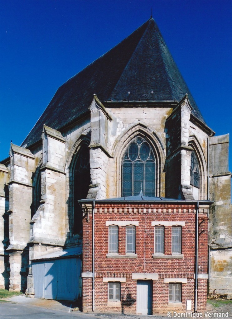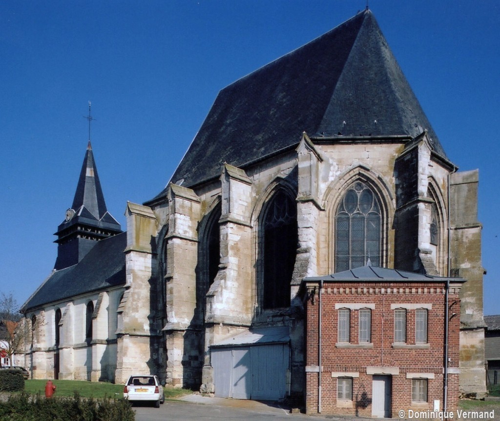 Saint-Pierre offre la silhouette, très courante en Picardie, d’un haut chœur du 16ème siècle dominant une nef unique dont le clocher en charpente et ardoise, bâti en façade, n’atteint qu’à peine la hauteur de la toiture du chœur.