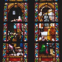 Comme toujours à cette époque, les arcades et les ogives retombent directement dans les supports, sans l’intermédiaire de chapiteaux. Par leur réseau, les fenêtres marquent la transition entre le style flamboyant et celui de la Renaissance. Ainsi, au nord, trois fenêtres ont encore le dessin – mais très assagi – en courbe et contrecourbe caractéristique du flamboyant tandis que les autres fenêtres ont le réseau en plein cintre de la Renaissance. C’est également de la Renaissance que se réclame le petit portail, inachevé, qui s’ouvrait au sud.