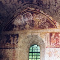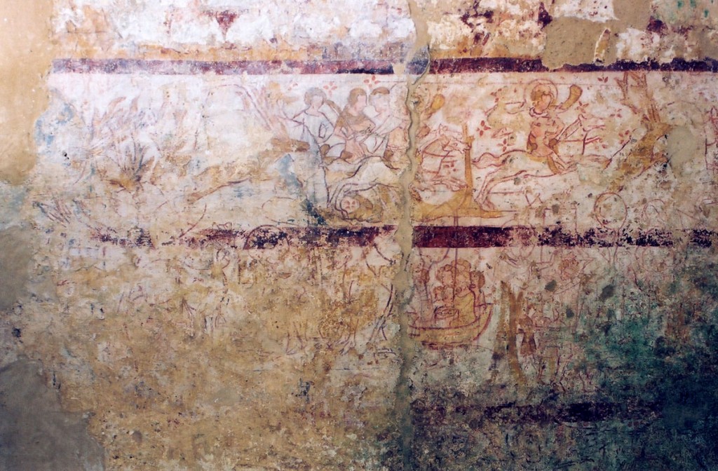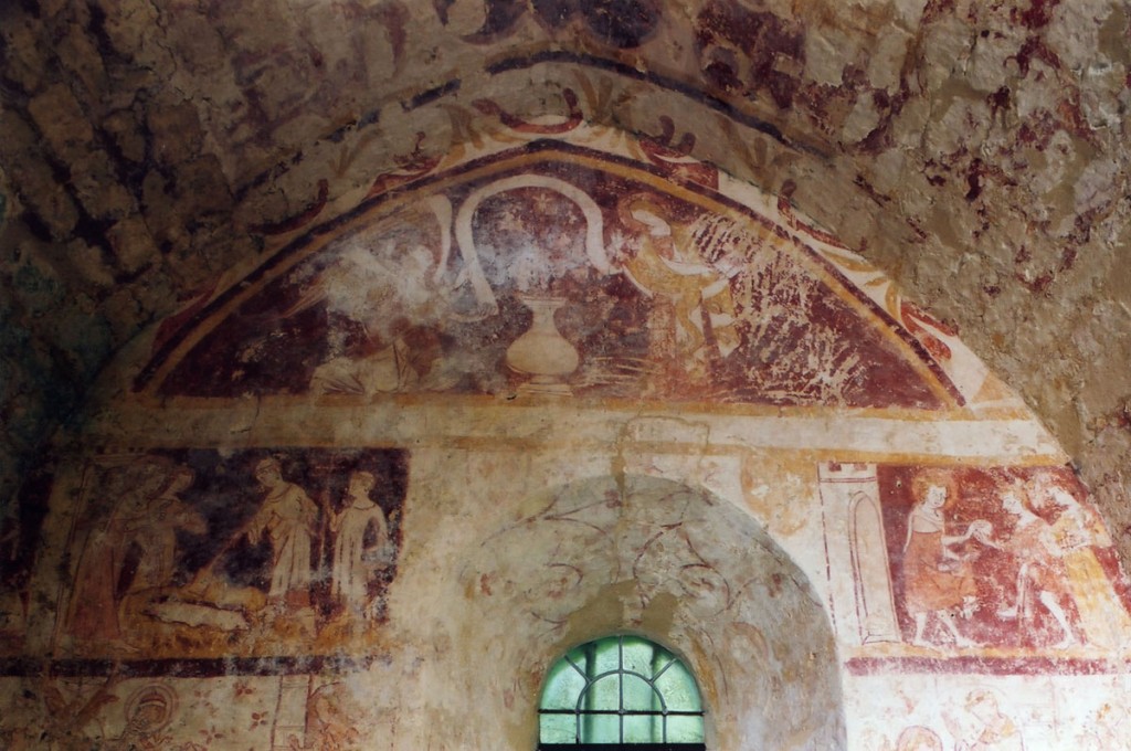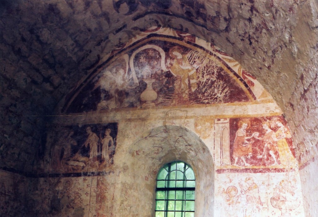 C’est à la même époque qu’est entrepris le cycle de fresques de la chapelle nord. Il constitue, avec celui de l’église de Ponchon, l’un des rares témoins de qualité de peinture murale médiévale dans l’Oise. Très dégradées à la voûte et dans les parties basses des murs, les fresques sont en revanche d’une remarquable fraîcheur au mur nord. Dans le tympan est représentée l’Annonciation et, au-dessous, sur trois registres qui se continuent sur les murs latéraux, figurent des scènes qui pourraient se rapporter à la légende de saint Eustache (2007).