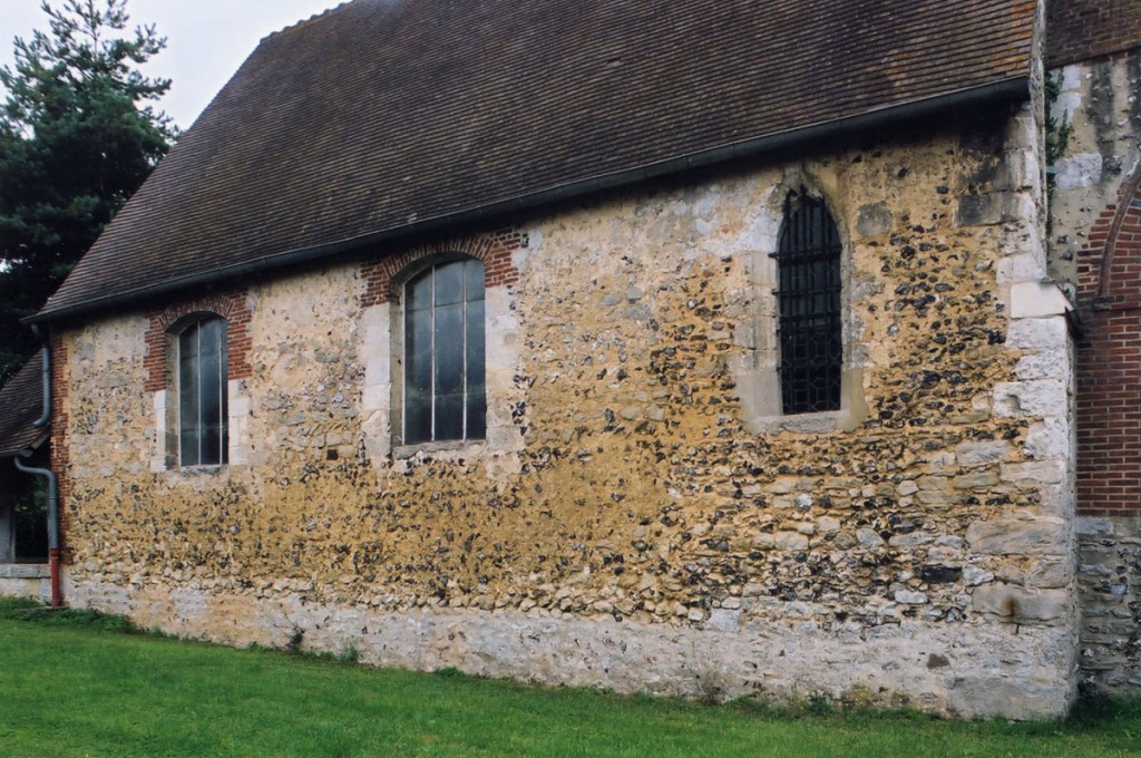 Bâtie dans un site verdoyant à proximité du Thérain, Notre-Dame est une église modeste par ses dimensions mais d’un grand intérêt pour les problèmes archéologiques qu’elle pose et, plus encore, pour le rare cycle de fresques murales du début du 14ème siècle qu’elle conserve. L’ossature d’une église du 11ème siècle composée d’une nef unique et d’un choeur de deux travées, à chevet plat, se lit encore dans l’édifice actuel : l’appareil en moellons et silex mélangés, souvent disposé en arêtes de poisson, et une petite fenêtre à linteau échancré, au mur nord de la nef, l’attestent. Il est possible qu’un clocher, presque totalement reconstruit par la suite, faisait partie de cette première église.