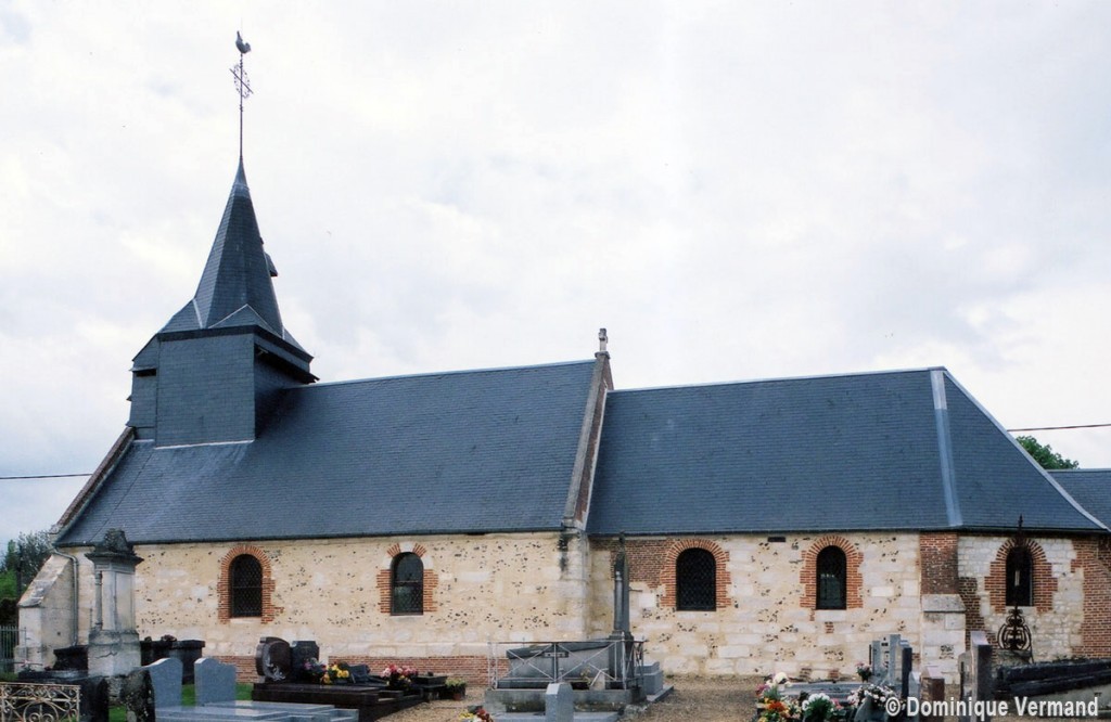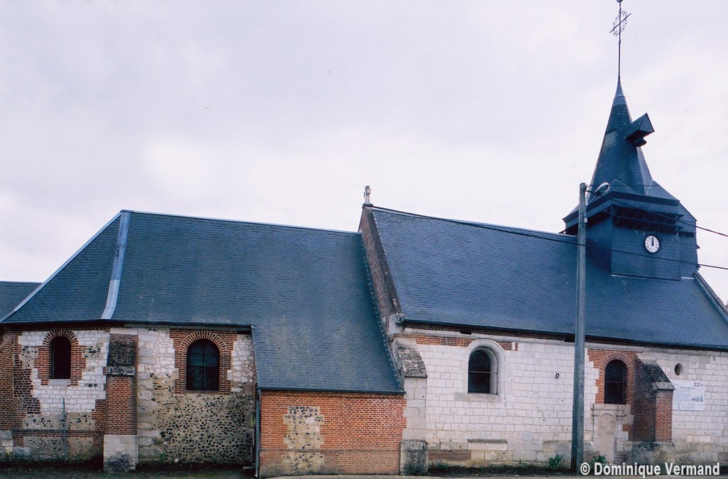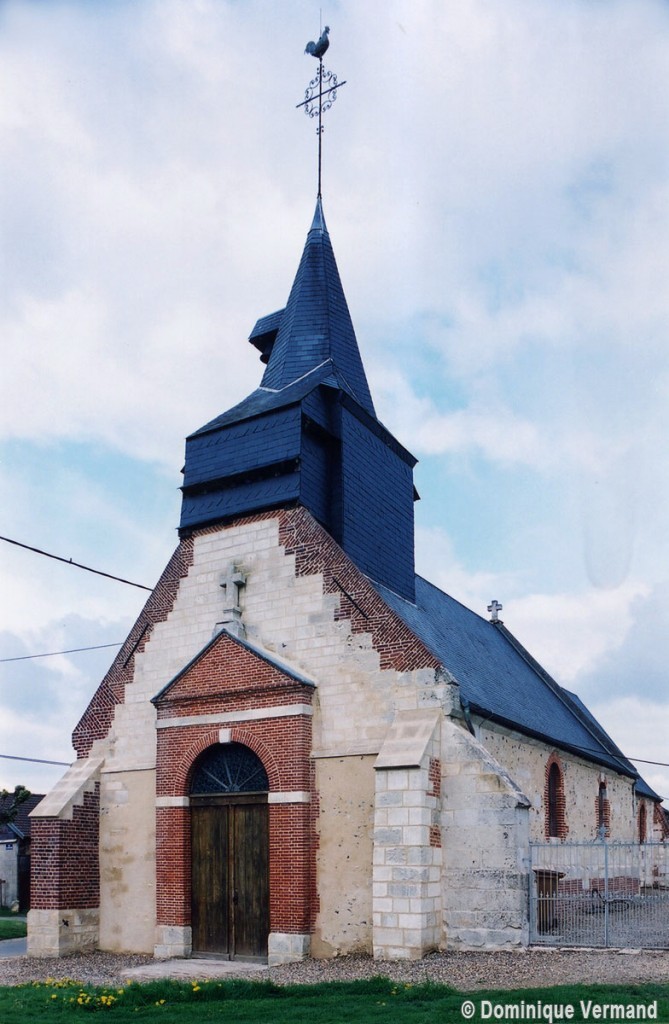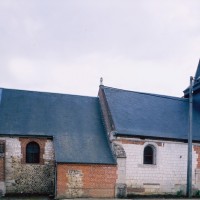 Les autres ouvertures sont en brique, un matériau utilisé ici à trois époques différentes : au 17ème siècle pour ce qui concerne les fenêtres du chœur et du mur sud de la nef, peut-être dans les années 1820 pour le portail avec fronton triangulaire de la façade et au milieu du 19ème siècle – avec une brique de type industriel – pour les contreforts nord-ouest de la nef, les arêtes de son pignon ouest et la sacristie. On peut donc y étudier à loisir l’évolution de ce matériau très utilisé en Picardie (2005).