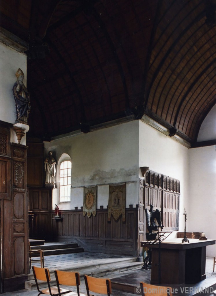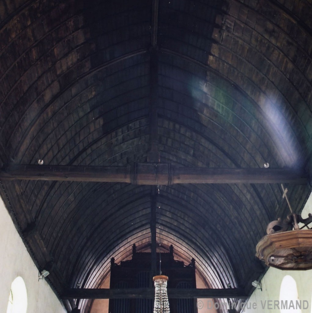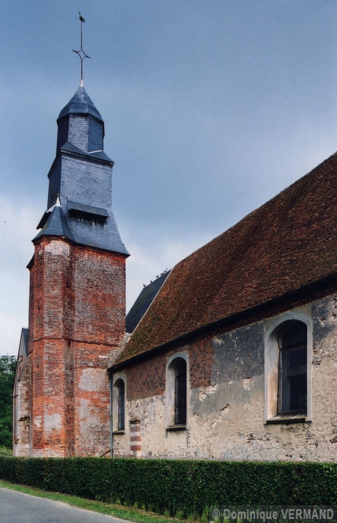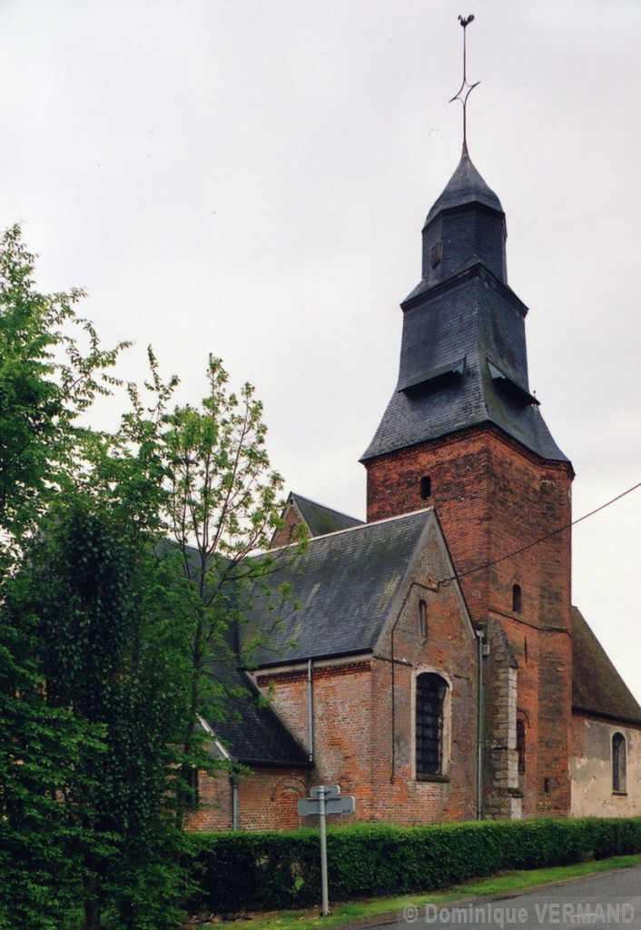 Construites en briques au 16ème siècle, les parties orientales comprennent un transept saillant et un choeur pentagonal, complétés au nord-ouest d’un clocher et au sud-ouest d’une chapelle autrefois à usage seigneurial. Les quelques fenêtres qui n’ont pas été refaites sont en cintre surbaissé souligné d’une simple moulure en brique. De belles charpentes en carène, également du 16ème siècle, couvrent les différentes parties de l’église. Celles du choeur et du transept ont cependant été refaites à l’identique après un incendie survenu en 1970.