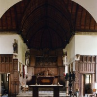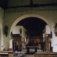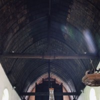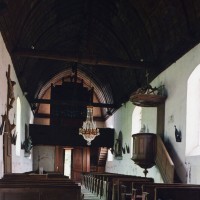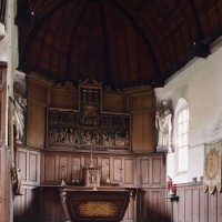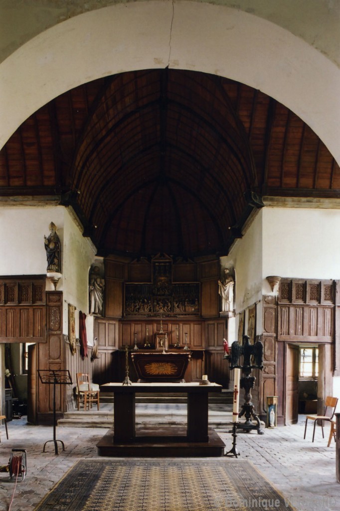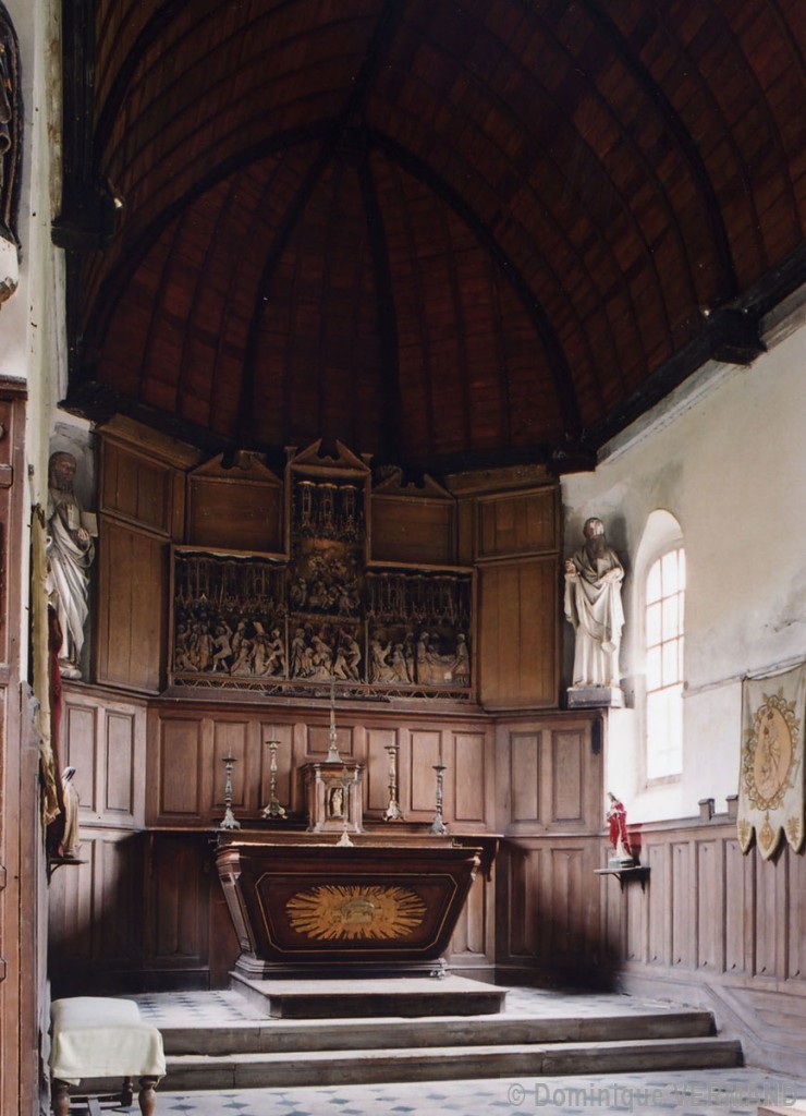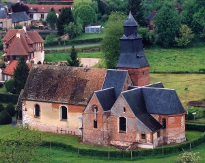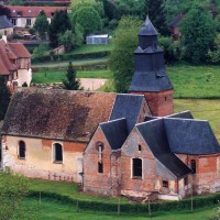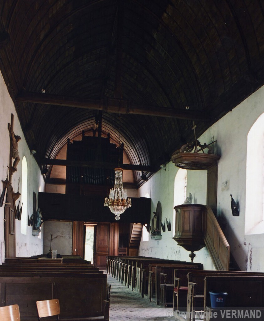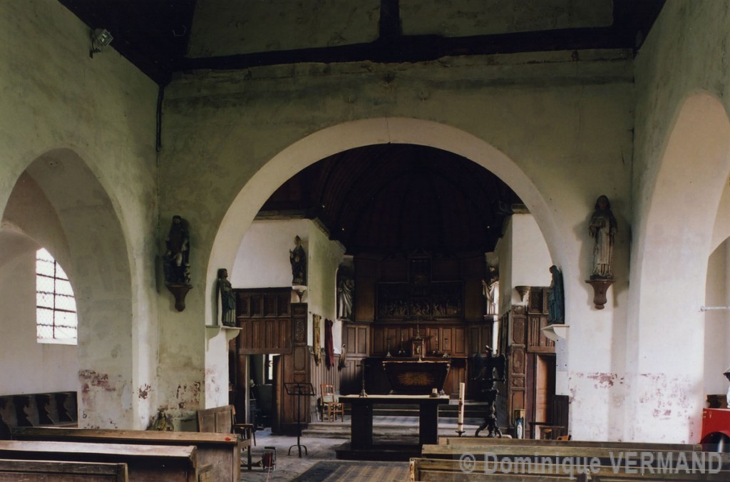 Construites en briques au 16ème siècle, les parties orientales comprennent un transept saillant et un choeur pentagonal, complétés au nord-ouest d’un clocher et au sud-ouest d’une chapelle autrefois à usage seigneurial. Les quelques fenêtres qui n’ont pas été refaites sont en cintre surbaissé souligné d’une simple moulure en brique. De belles charpentes en carène, également du 16ème siècle, couvrent les différentes parties de l’église. Celles du choeur et du transept ont cependant été refaites à l’identique après un incendie survenu en 1970.