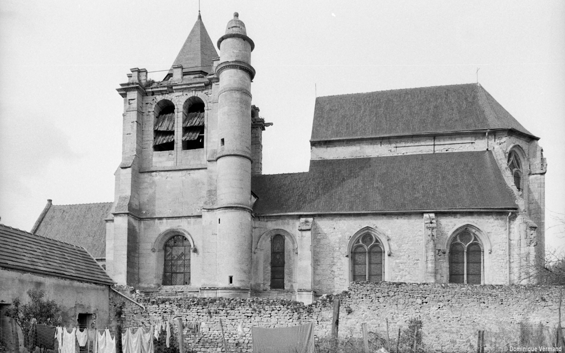 Si l’on excepte les “embellissements” du 19ème siècle, la dernière campagne importante concerne la construction du clocher en 1634. A peine plus haut que le choeur, c’est une tour massive couronnée par une balustrade et flanquée sur son angle sud-est d’une tourelle d’escalier qui dépasse nettement le niveau de la plate-forme. Son utilisation comme tour de guet ne fait aucun doute. A l’ouest, des pierres d’attente prouvent qu’un bas-côté devait également flanquer la nef au sud (2002).