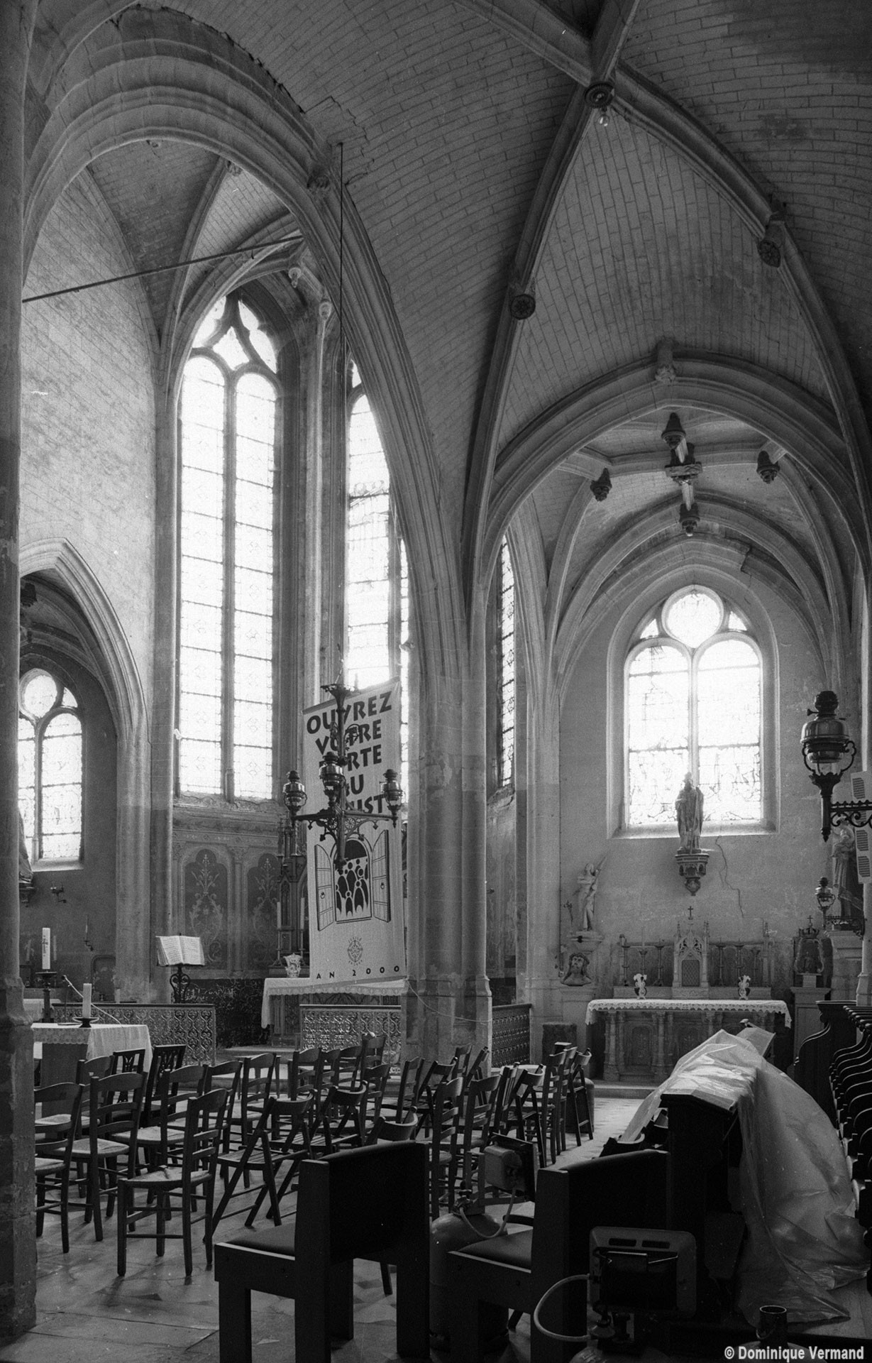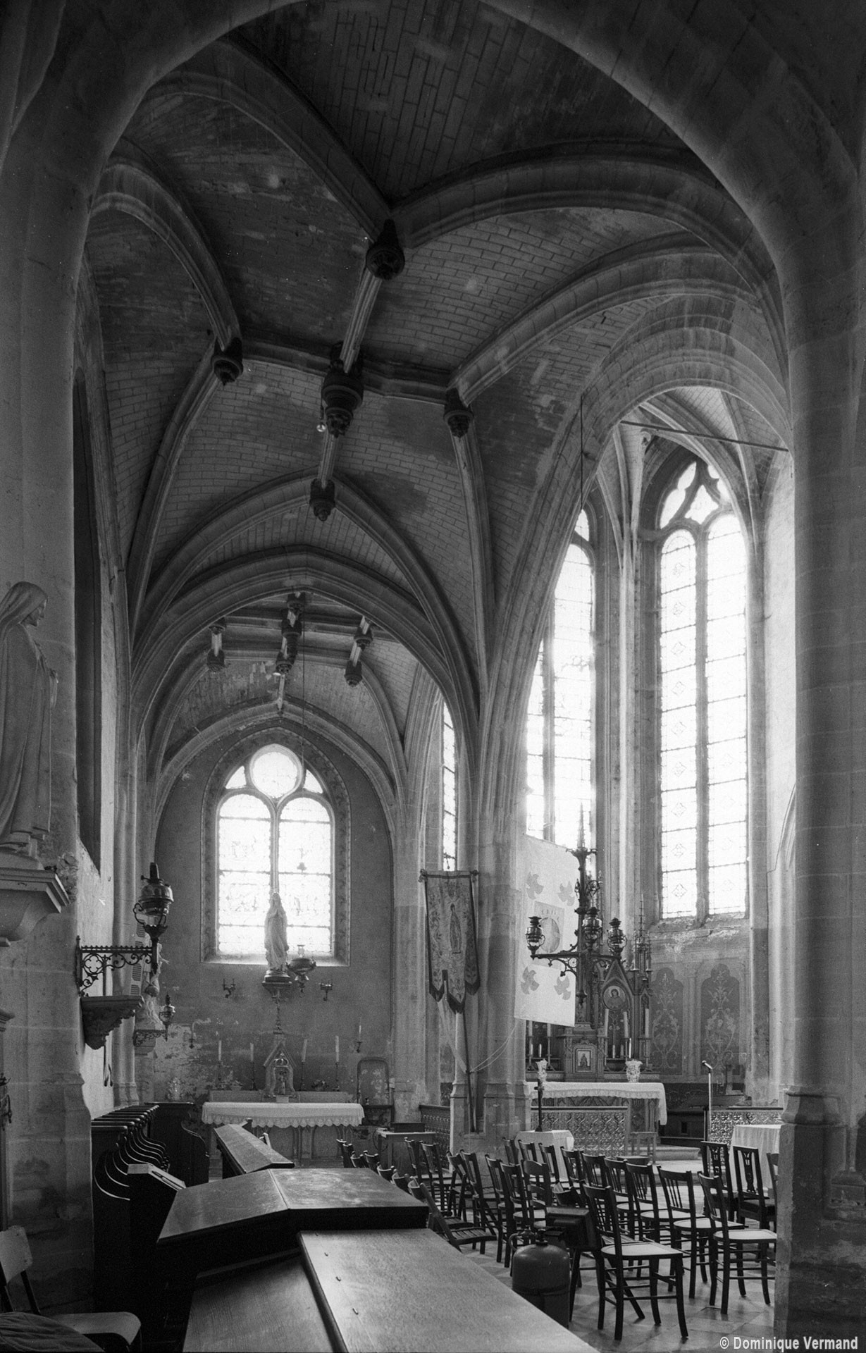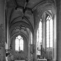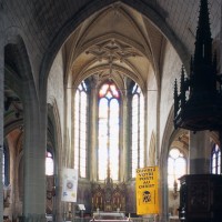Les fenêtres présentent toutes un réseau en plein cintre qui dénote l’influence de la Renaissance. L’élément le plus remarquable est constitué par les voûtes, dont les nervures adoptent des tracés complexes et tous différents, véritable anthologie des voûtes du gothique tardif. Liernes et tiercerons (nervures secondaires) sont ici de rigueur et les nervures de l’abside adoptent même un tracé asymétrique.