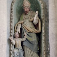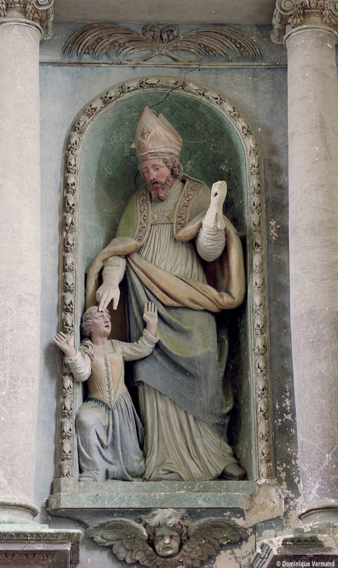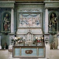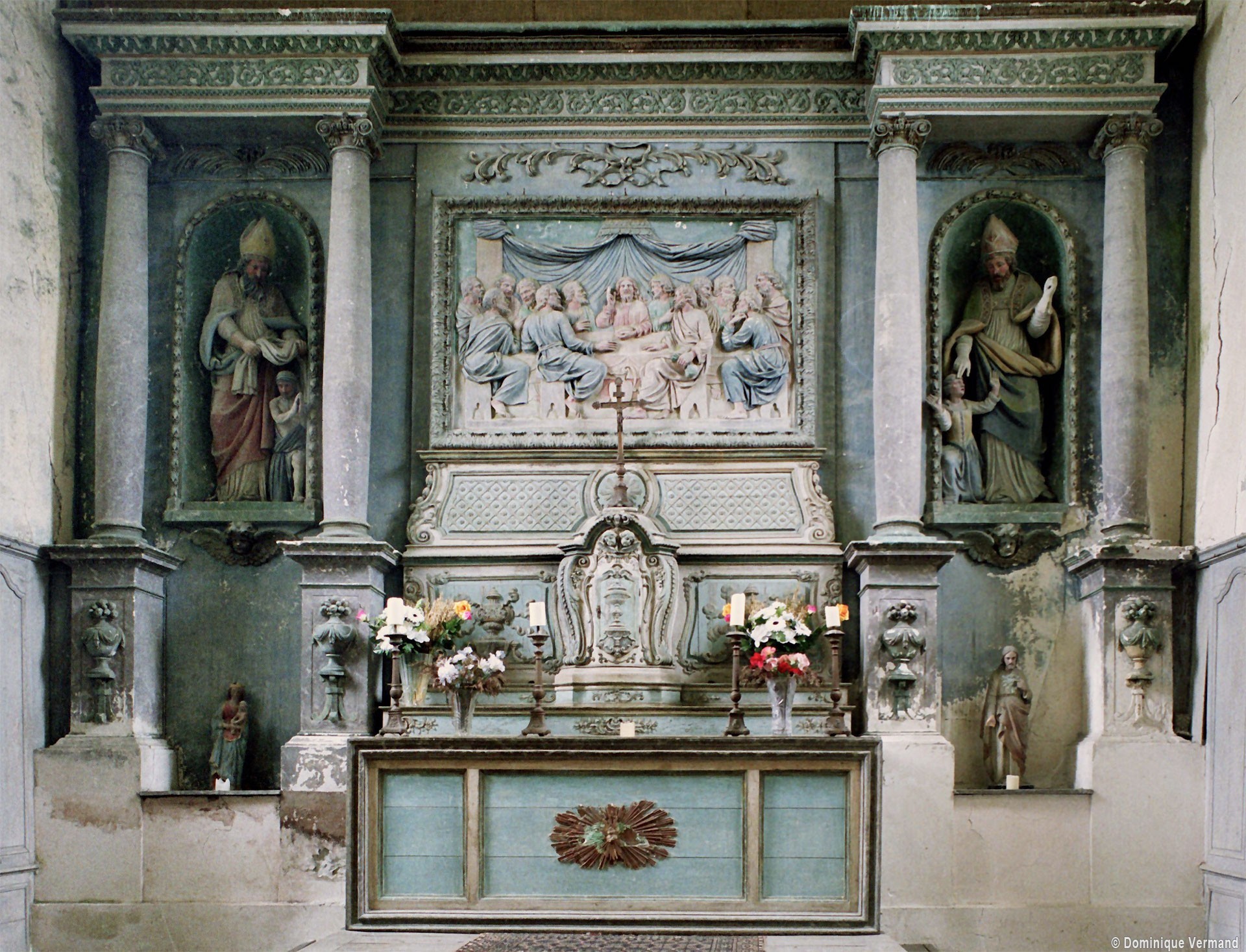 L’édifice possède par ailleurs un ensemble mobilier fort intéressant : remarquable et vaste retable en pierre polychromé du 17ème siècle comportant une représentation de la Cène, imposante statue de saint Martin, exceptionnelle stèle de fondation du saint Rosaire (1644) par Charles de Moictier avec un arbre généalogique illustré de 22 blasons et d’un heaume finement sculptés (2004).
