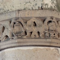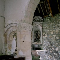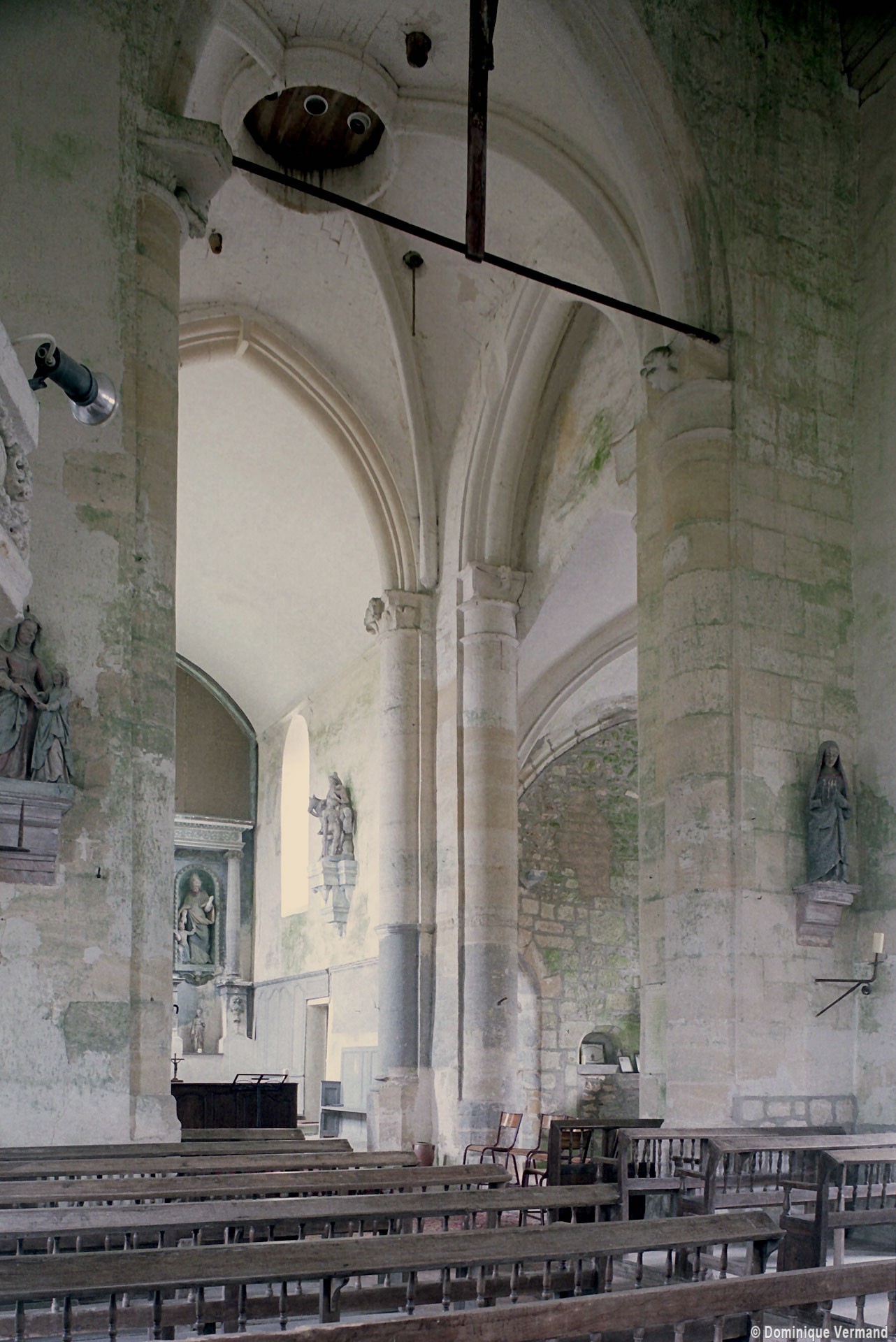 Pour le reste, l’église est le résultat de plusieurs campagnes de construction réalisées principalement au cours du 16ème (croisillons, reprise en sous-œuvre de la base du clocher avec sa voûte percée d’un oculus pour le passage des cloches, bas-côtés de la nef) et au début du 17ème siècle (clocher, portail de la façade). On détaillera plus particulièrement plusieurs chapiteaux à décor de griffons ou de masques aux arcades nord de la nef ainsi que le clocher, dont le décor appartient à la fin de la Renaissance.