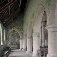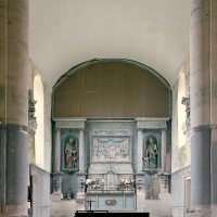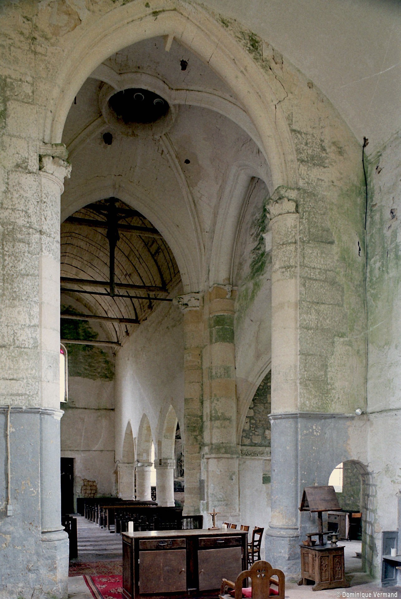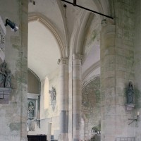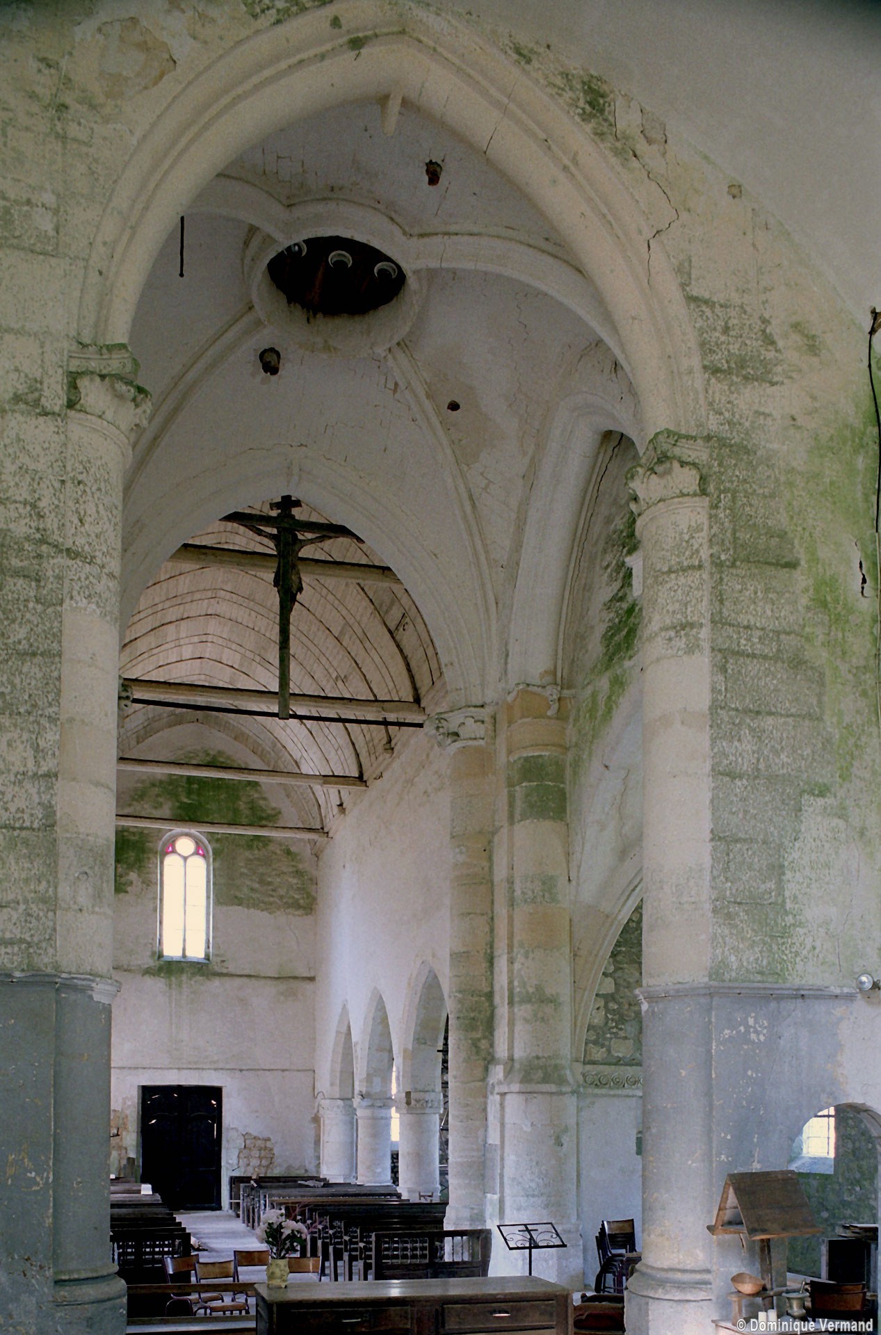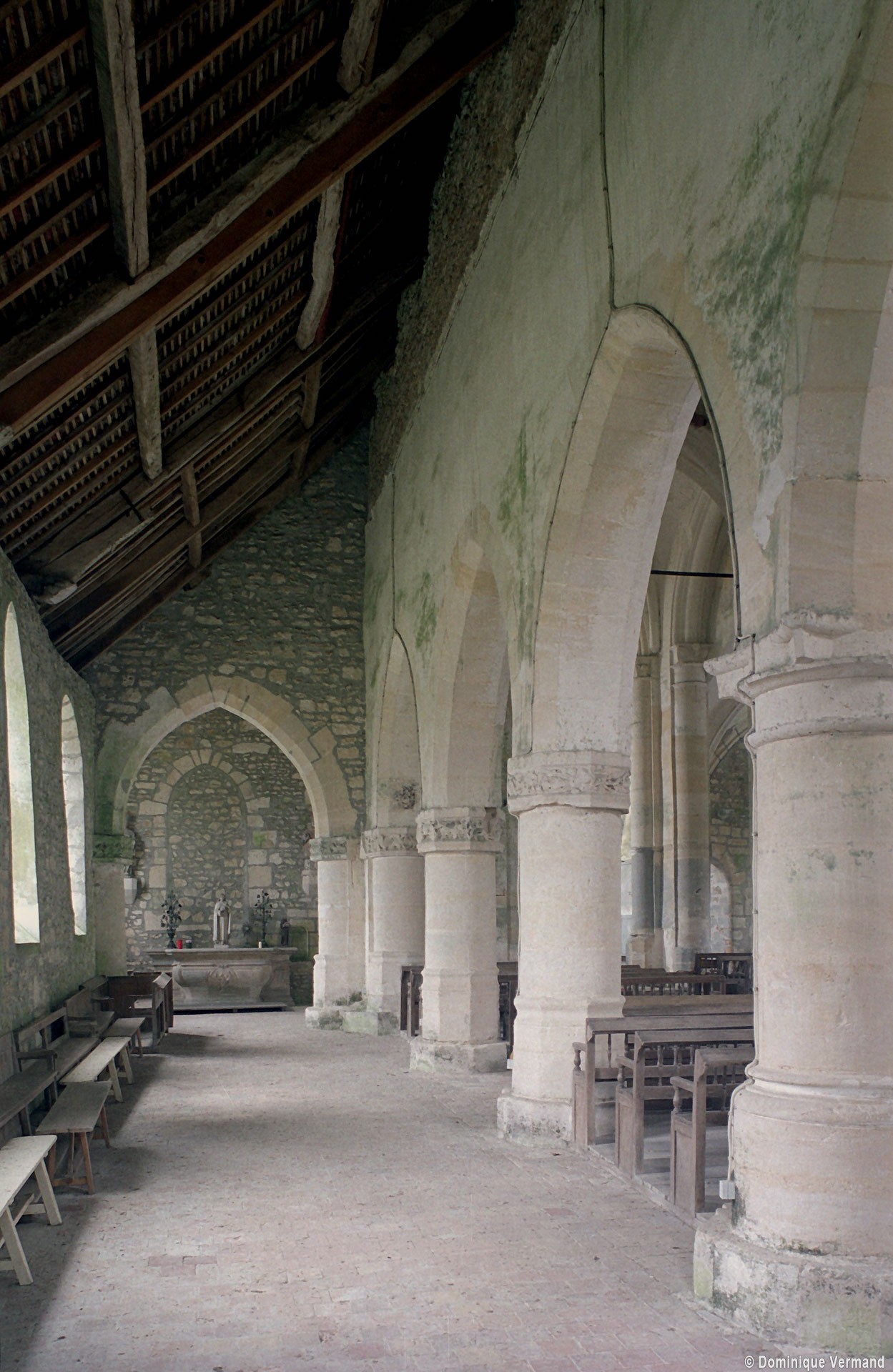 Mais la partie la plus ancienne identifiable avec certitude est le chœur. Long de deux travées, il est percé de lancettes au tracé aigu (regroupées en triplet au chevet) que souligne une moulure de billettes. A l’intérieur, les voûtes ont disparu mais des chapiteaux à crochets, modifiés par la suite, permettent d’en faire remonter l’édification vers 1200.