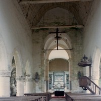 Une nef unique existait sans doute à l’époque romane, dont deux contreforts sans ressauts et des traces d’appareil en arêtes de poisson gardent peut-être le souvenir en partie centrale de la façade. Au revers de celle-ci, une petite arcade en plein cintre pose également problème quant à sa fonction initiale.