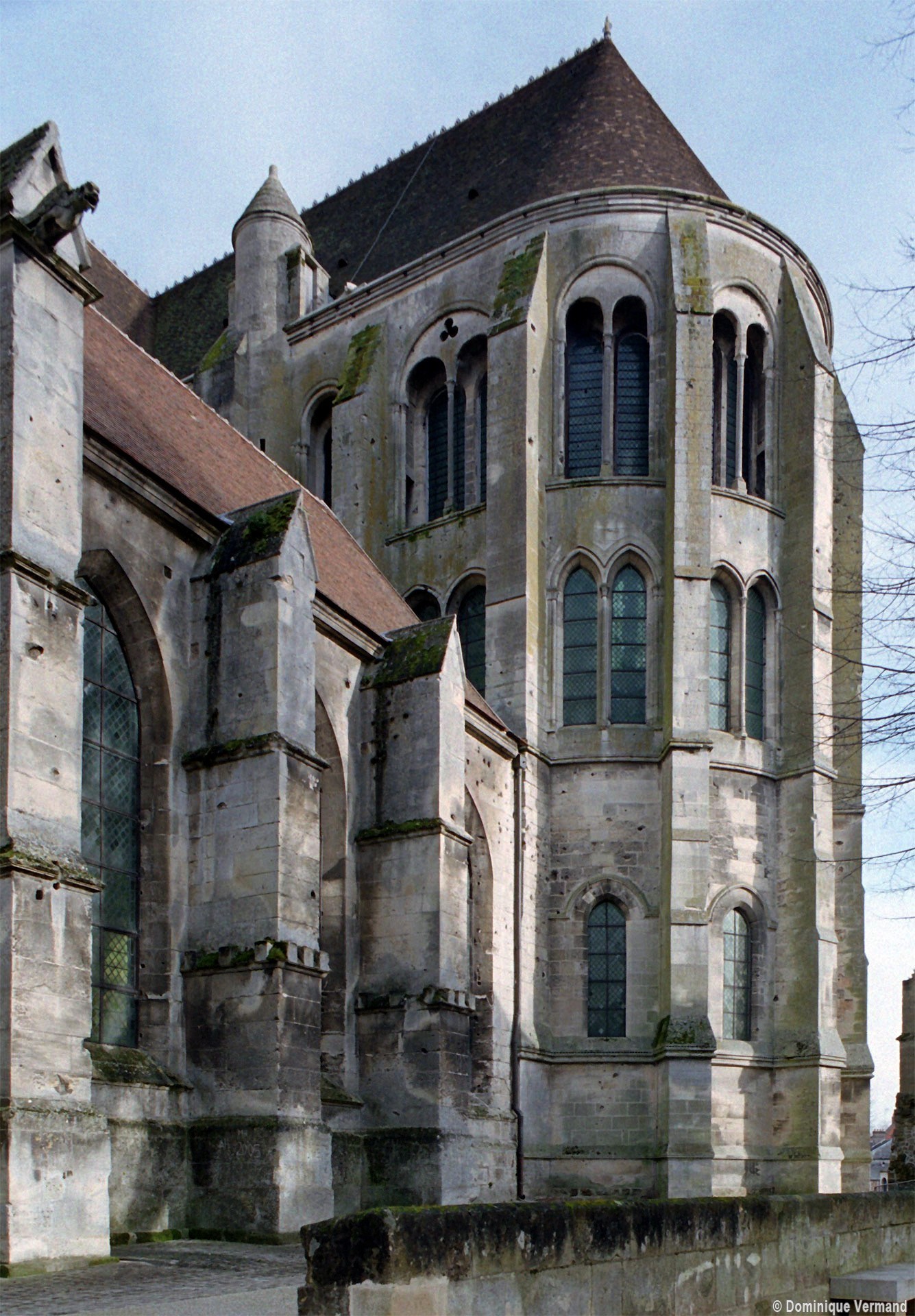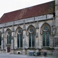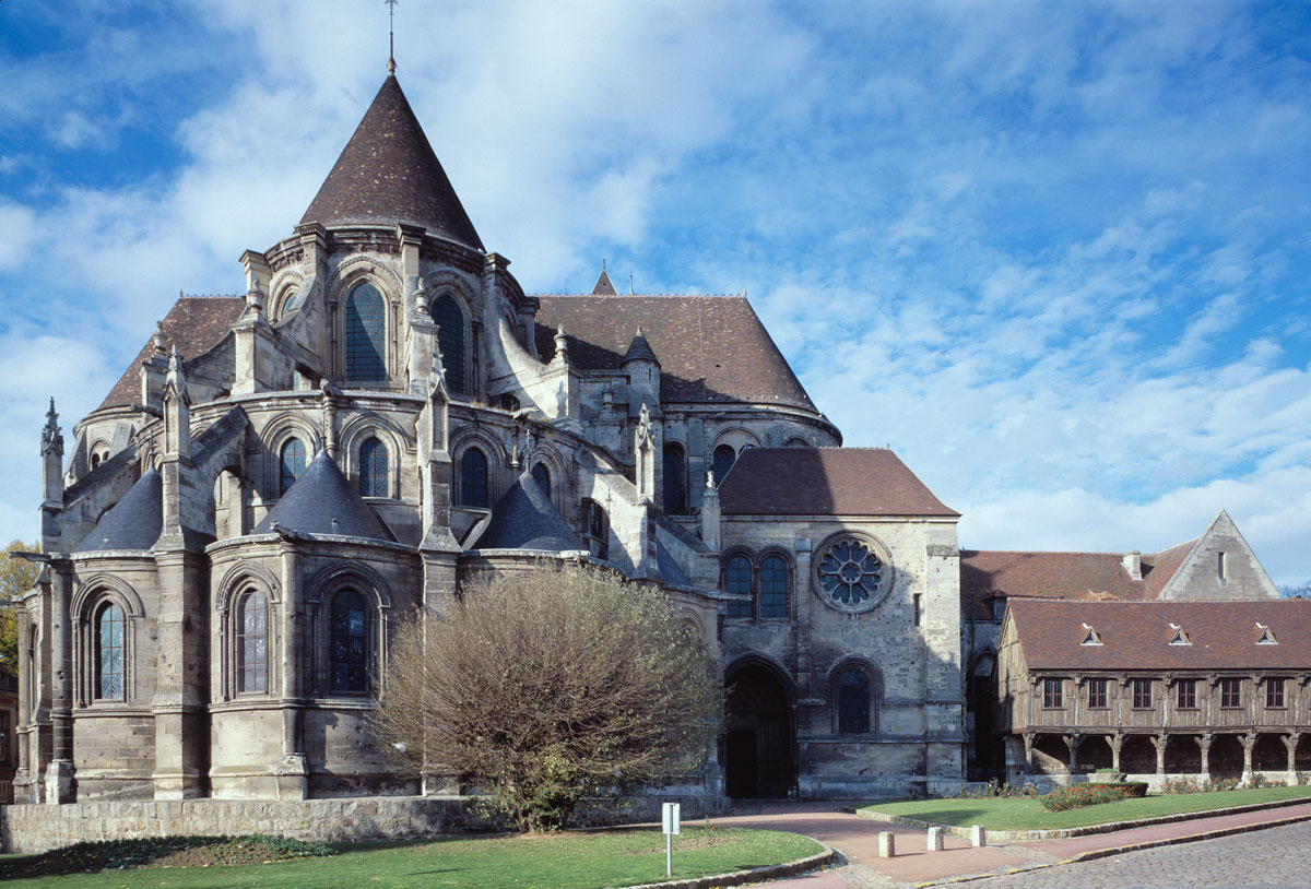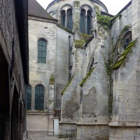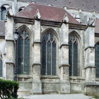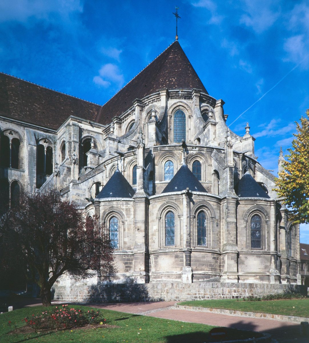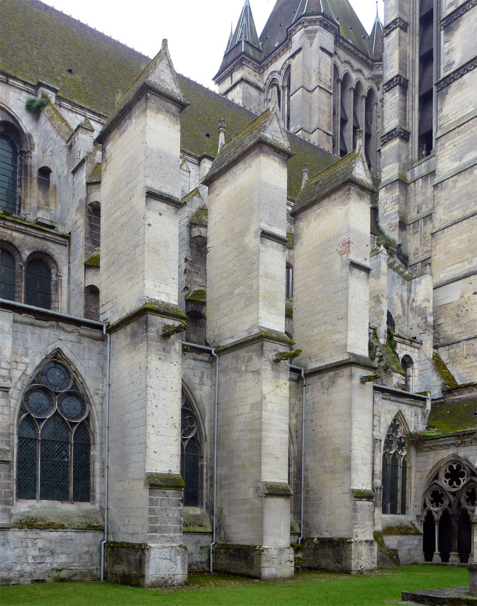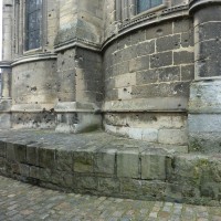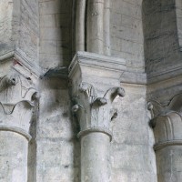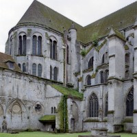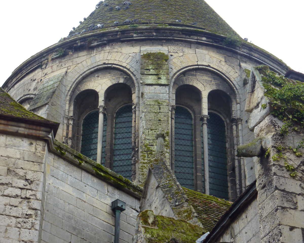 Tout le vaisseau central du choeur se caractérise ainsi par son extrême richesse décorative, par sa plastique généreuse qui font écho, là encore, à l’architecture anglo-normande comme à celle du Laonnois et du Soissonnais. Tout aussi riche dans sa décoration, le chevet est remarquable par l’équilibre de sa composition et l’étagement de ses volumes, altérés, cependant, par les modifications et les réfections dont il fut très souvent l’objet. La disparition de la toiture unique des chapelles – son appui se voit encore à la base des fenêtres des tribunes – au profit de toitures individualisées ; la réfection des arcs-boutants des tribunes au 15ème siècle et mise en place, au 18ème siècle, de nouveaux arcs-boutants dans les parties hautes ne permettent plus de définir avec certitude le système de contrebutement mis en place à l’origine.