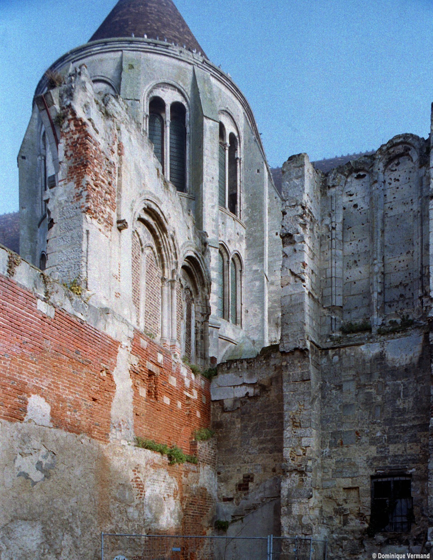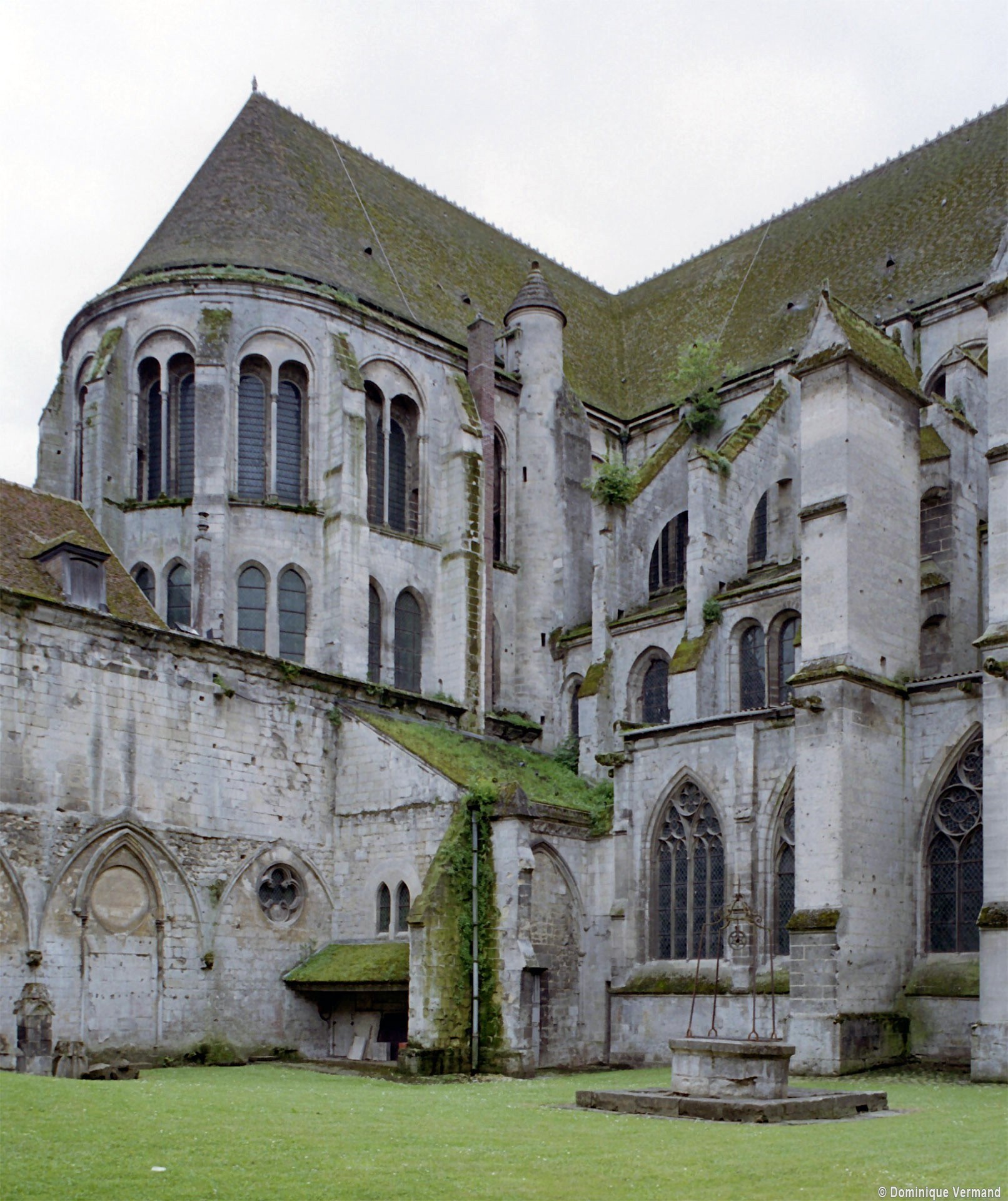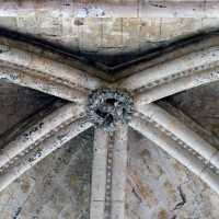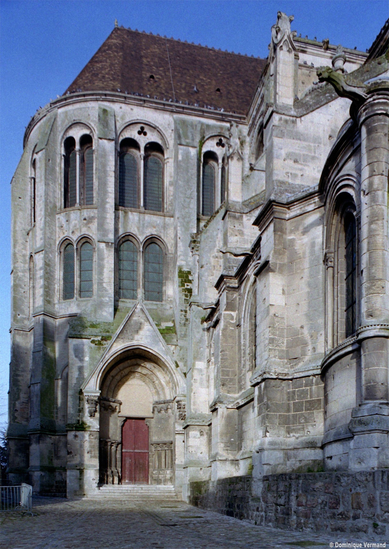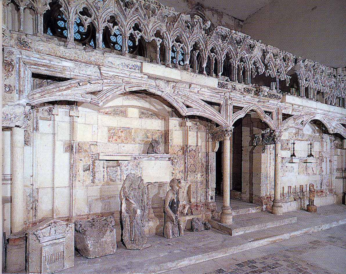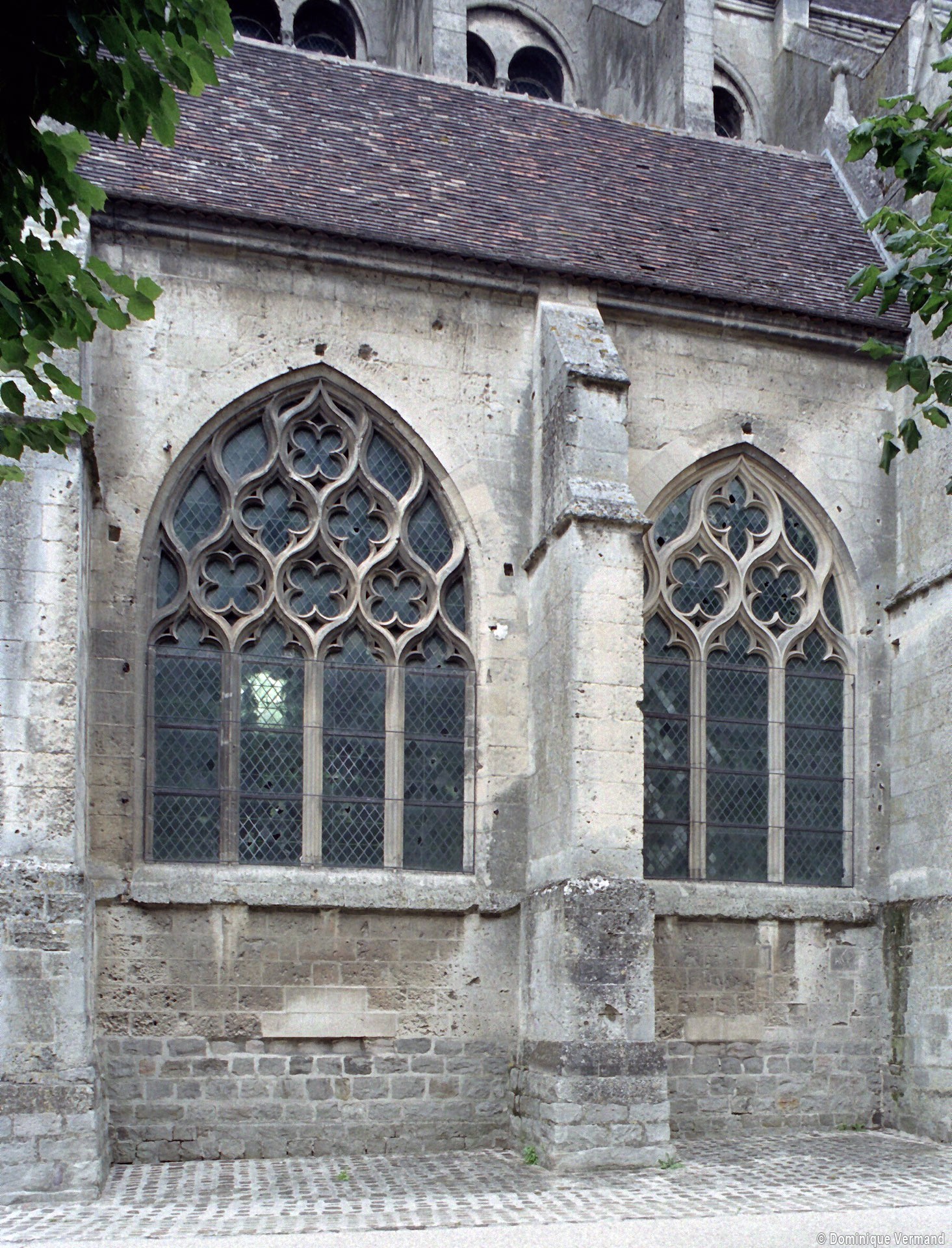 Tout le vaisseau central du choeur se caractérise ainsi par son extrême richesse décorative, par sa plastique généreuse qui font écho, là encore, à l’architecture anglo-normande comme à celle du Laonnois et du Soissonnais. Tout aussi riche dans sa décoration, le chevet est remarquable par l’équilibre de sa composition et l’étagement de ses volumes, altérés, cependant, par les modifications et les réfections dont il fut très souvent l’objet. La disparition de la toiture unique des chapelles – son appui se voit encore à la base des fenêtres des tribunes – au profit de toitures individualisées ; la réfection des arcs-boutants des tribunes au 15ème siècle et mise en place, au 18ème siècle, de nouveaux arcs-boutants dans les parties hautes ne permettent plus de définir avec certitude le système de contrebutement mis en place à l’origine.