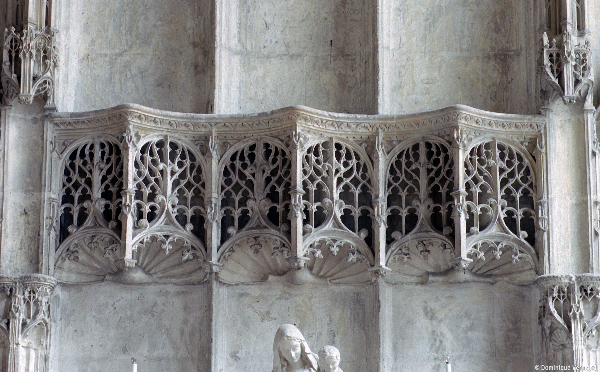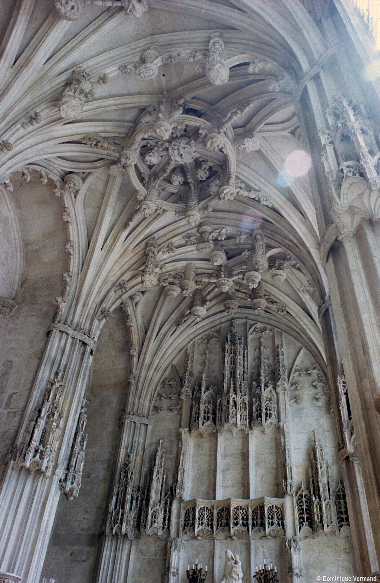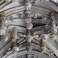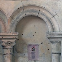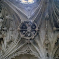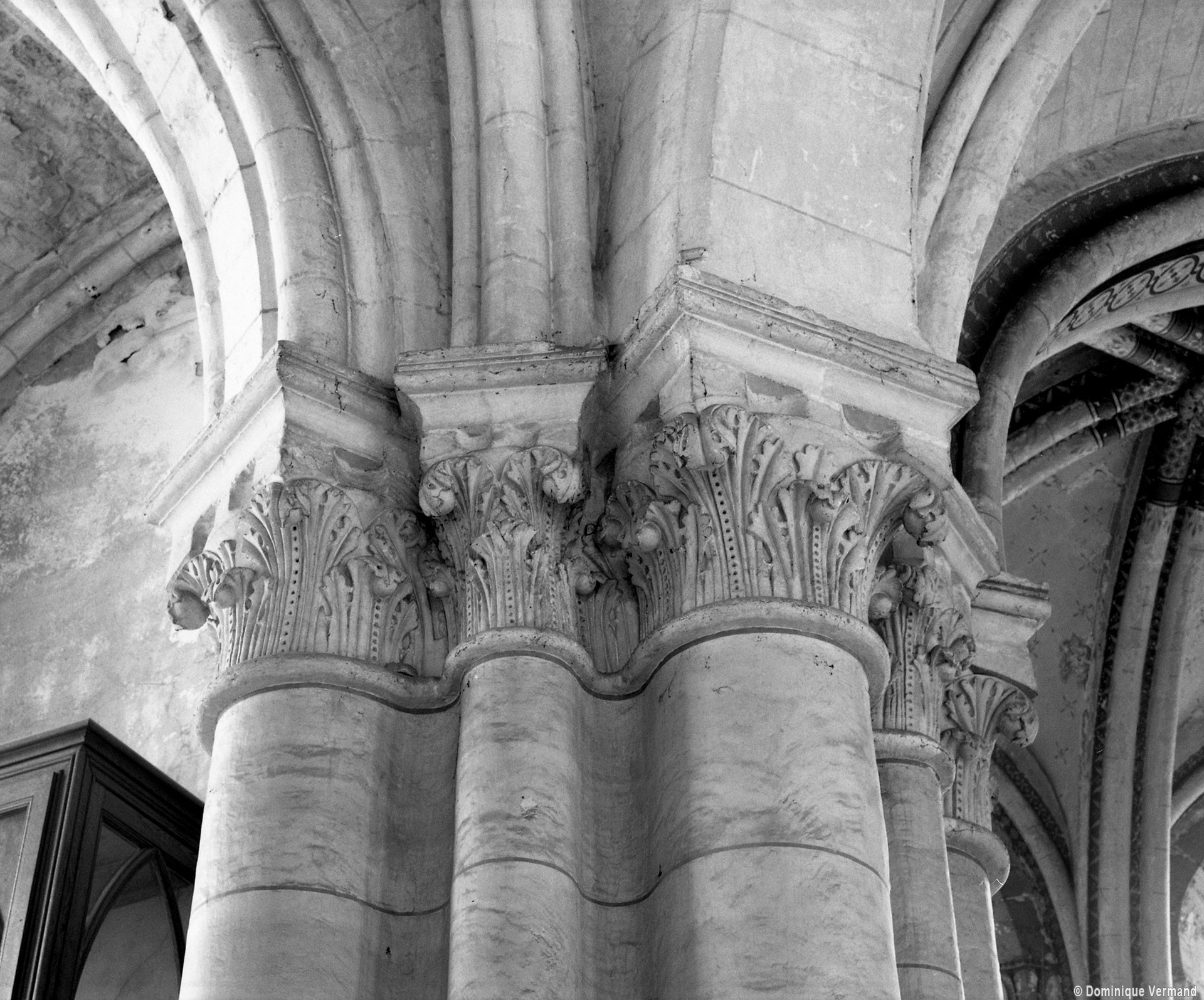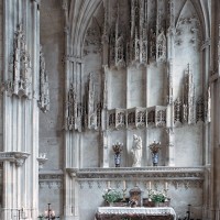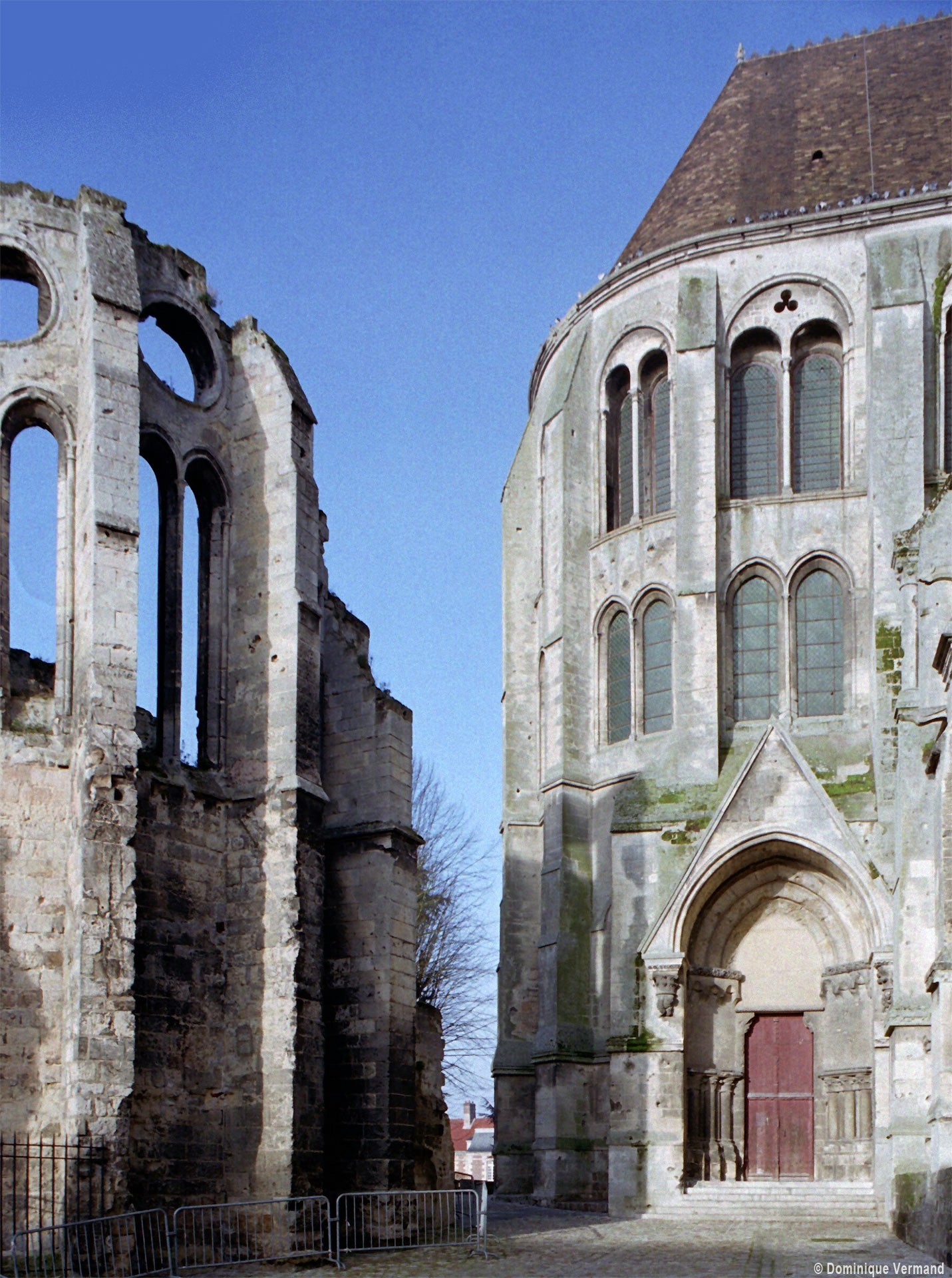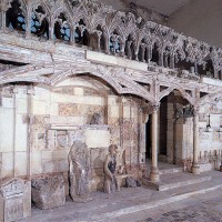 Tout le vaisseau central du choeur se caractérise ainsi par son extrême richesse décorative, par sa plastique généreuse qui font écho, là encore, à l’architecture anglo-normande comme à celle du Laonnois et du Soissonnais. Tout aussi riche dans sa décoration, le chevet est remarquable par l’équilibre de sa composition et l’étagement de ses volumes, altérés, cependant, par les modifications et les réfections dont il fut très souvent l’objet. La disparition de la toiture unique des chapelles – son appui se voit encore à la base des fenêtres des tribunes – au profit de toitures individualisées ; la réfection des arcs-boutants des tribunes au 15ème siècle et mise en place, au 18ème siècle, de nouveaux arcs-boutants dans les parties hautes ne permettent plus de définir avec certitude le système de contrebutement mis en place à l’origine.
