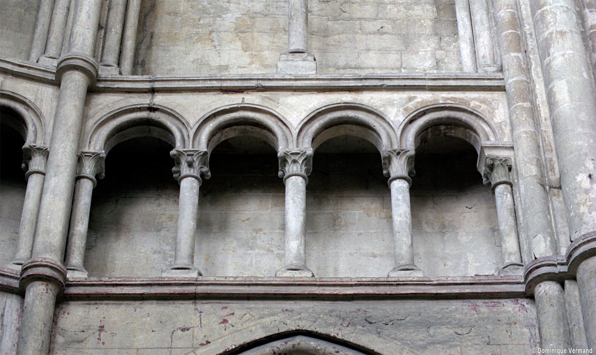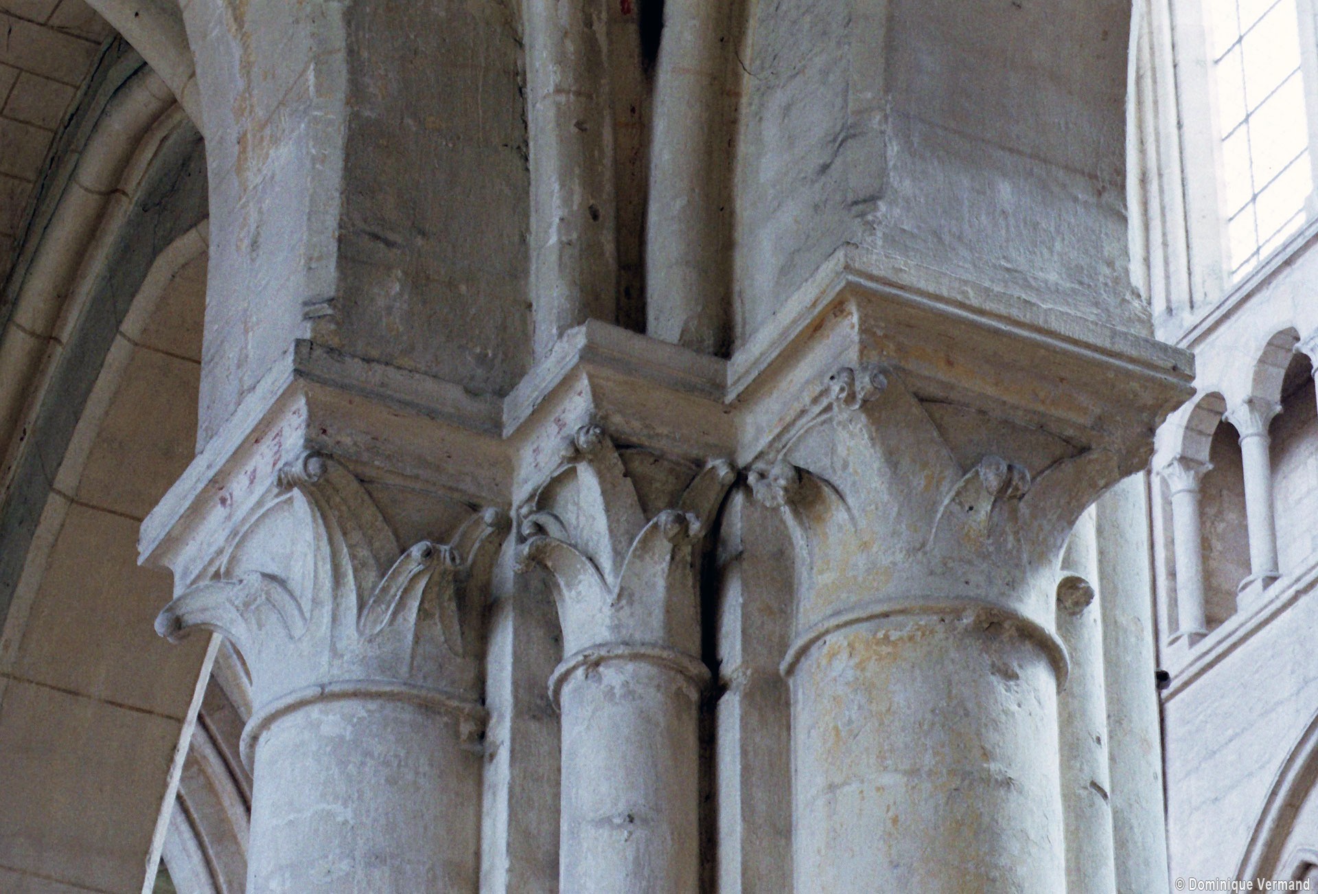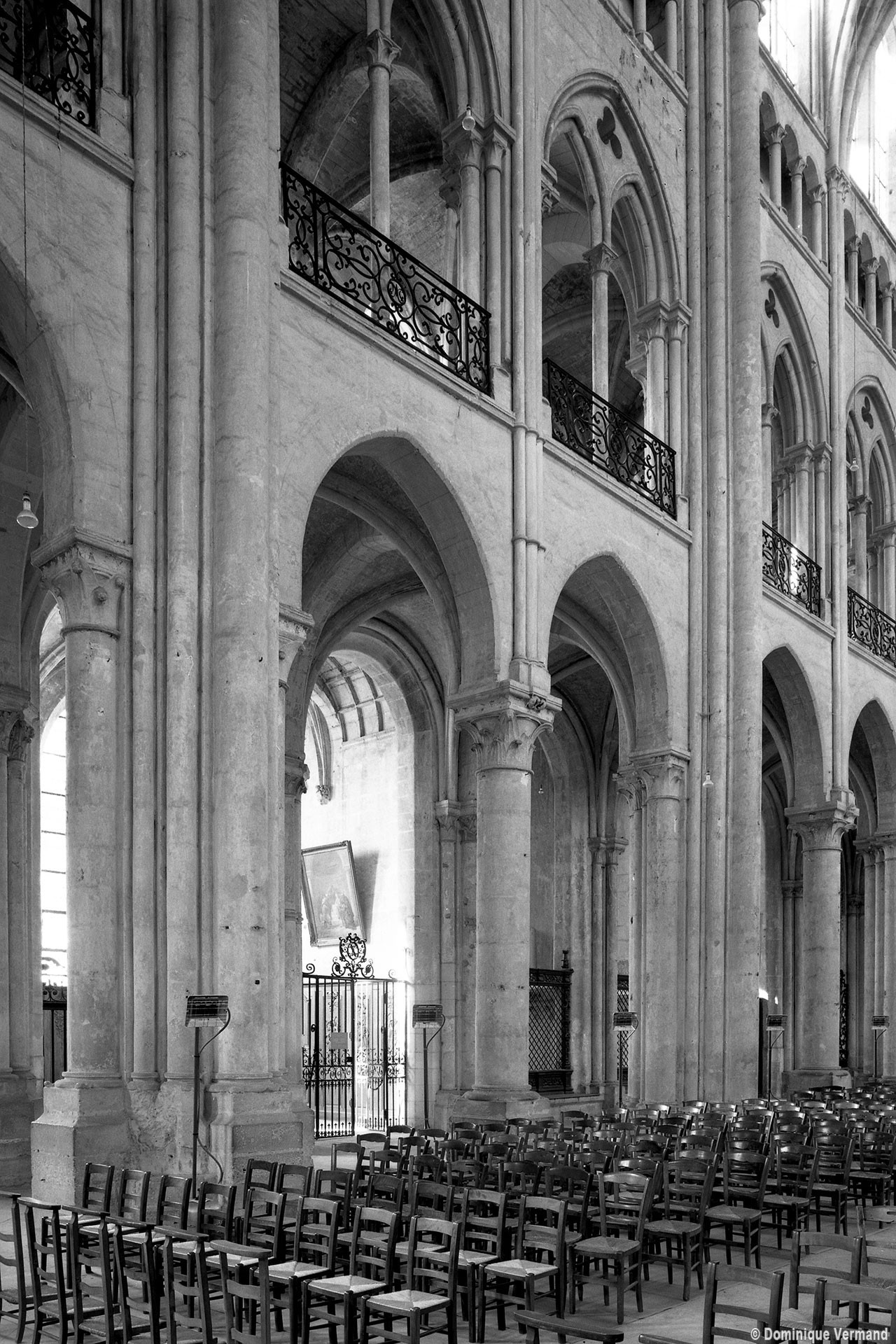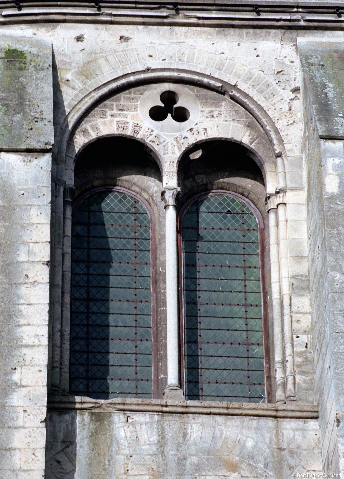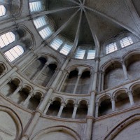Mais, plus encore que le plan, c’est la conception de l’élévation qui retient l’attention. Divisée en cinq registres, elle comporte d’abord un soubassement puissant constitué d’une suite de deux ou trois arcatures aveugles au premier niveau, que circonscrivent des arcatures simples constituant le second niveau. Au-dessus, un triforium passage assure la continuité de la circulation entre les tribunes du choeur et celles de la nef. En contraste total avec cette partie aveugle (en tout cas au nord, le doute subsistant au sud, où les fenêtres sont du 19ème siècle) et qui constitue environ la moitié de l’élévation totale, les deux niveaux supérieurs sont inondés de lumière. Développant le principe du triforium passage situé au-dessous, le dédoublement de la paroi s’y trouve ici affirmé d’une manière spectaculaire en associant une baie recoupée par une colonnette d’une finesse sans pareil à une fenêtre à deux lancettes, toutes ces ouvertures occupant pratiquement la totalité de l’espace disponible. Le dispositif est inversé au dernier niveau où, la fenêtre étant placée sur le plan interne, c’est la galerie de circulation qui se trouve rejetée à l’extérieur.