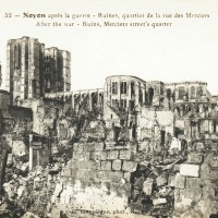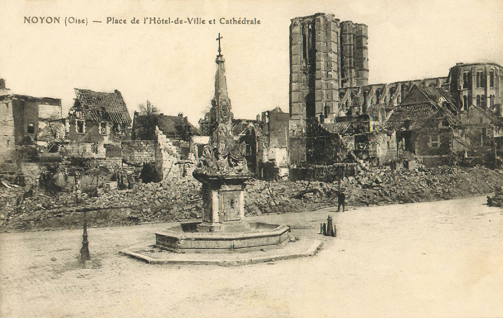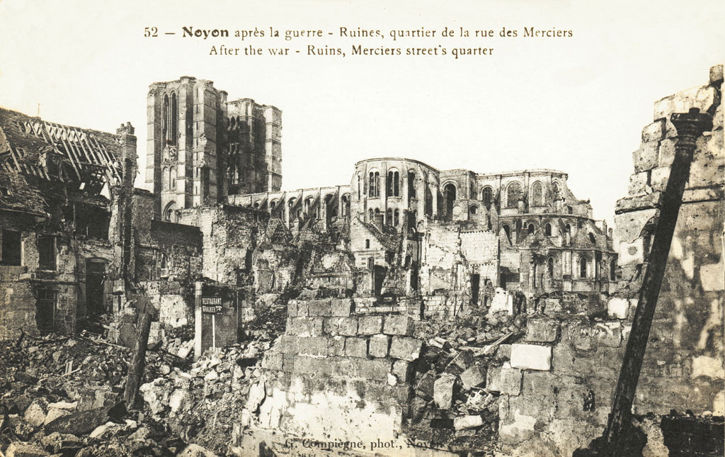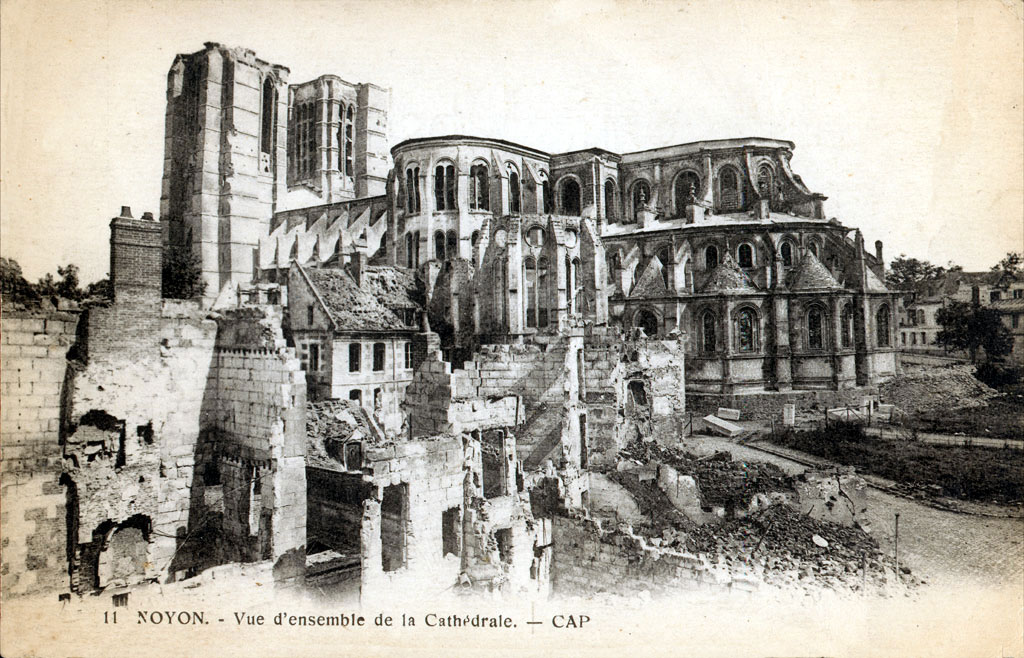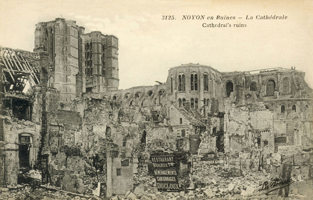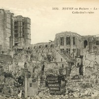 Son classement parmi les Monuments Historiques dès 1840 est le point de départ d’importants travaux de restauration qui ne s’achèveront qu’en 1910. Epargnée jusqu’en 1918, elle subit, comme la ville de Noyon, des dégâts considérables – au massif occidental et aux voûtes, surtout – lors de l’offensive allemande et de la reconquête française du Printemps 1918. Confiée à l’architecte A. Collin, la restauration est effectuée avec le souci rare du respect des dispositions anciennes et de l’apport de chaque époque, faisant de la cathédrale Notre-Dame un véritable exemple à cet égard.