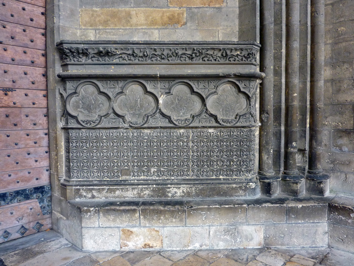 La cathédrale et son environnement étaient achevés depuis une trentaine d’années lorsque survient le violent incendie de 1293, qui devait provoquer des dégâts importants à la nef et aux tours du choeur. Cet événement dramatique n’empêchait toutefois pas la construction de sept chapelles entre les contreforts de la nef (six au nord, une au sud) quelques années plus tard. La Guerre de Cent ans épargne la cathédrale, mais le manque d’entretien impose d’importantes réparations durant la seconde moitié du 15ème siècle.