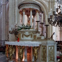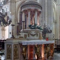 - La châsse de saint Eloi et le maître autel de la cathédrale au 18ème siècle par Tavernier de Jonquières (Bnf).
