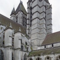 Campée sur le point le plus élevé de la ville, là où se situait jadis le castrum du Bas-Empire et son enceinte de la fin du 3ème siècle, la cathédrale Notre-Dame s’impose de tous côtés aux regards par la haute et austère silhouette de ses deux tours de façade. Ayant survécu par miracle, mais non sans dommages, aux vicissitudes de l’Histoire, elle compte parmi les oeuvres majeures de la première architecture gothique, celle de la seconde moitié du 12ème siècle.