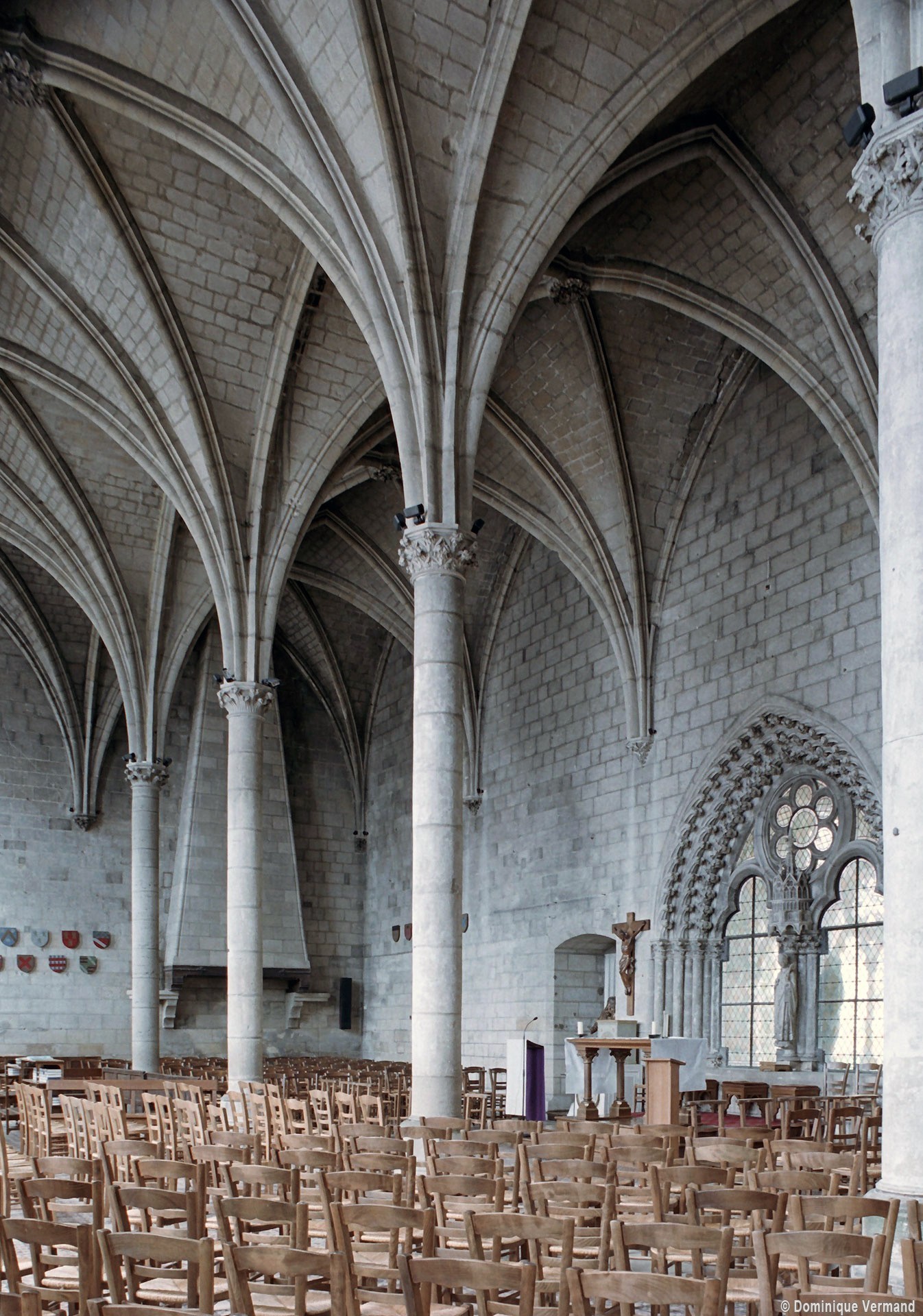 A l’originalité de cette structure s’ajoute une mise en oeuvre d’un raffinement extraordinaire avec, notamment, l’utilisation systématique du délit (les colonnes et les colonnettes sont indépendantes des murs) et un mélange subtil des formes en plein cintre et brisées. Tout ce raffinement ne nuit nullement à la lisibilité de l’ensemble, tant à l’intérieur, quadrillé en quelque sorte par les faisceaux de colonnettes recevant les voûtes et les bandeaux moulurés séparant les niveaux, qu’à l’extérieur, bien structuré par les contreforts qui montent d’un seul jet jusqu’à la toiture.