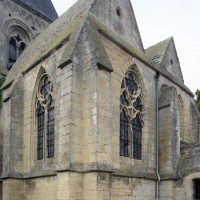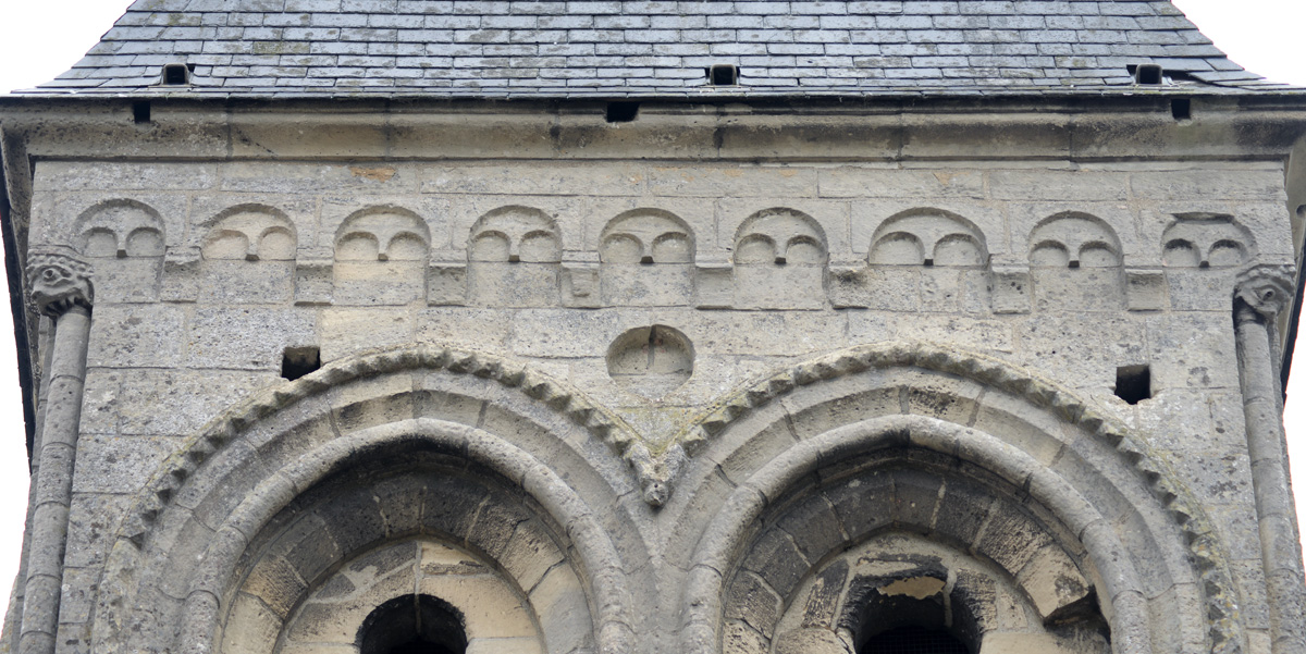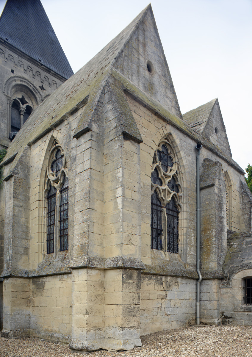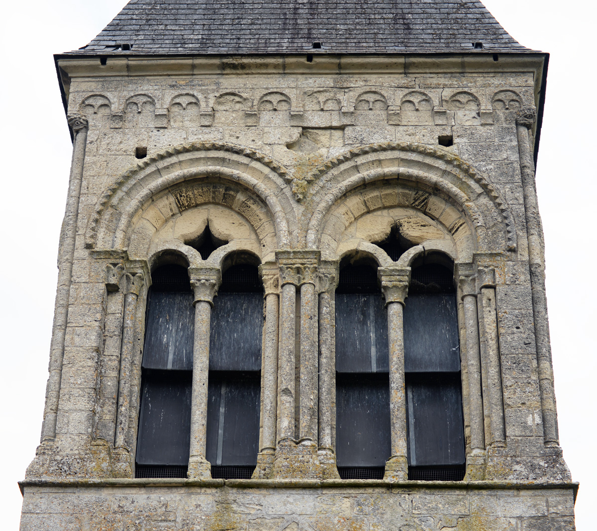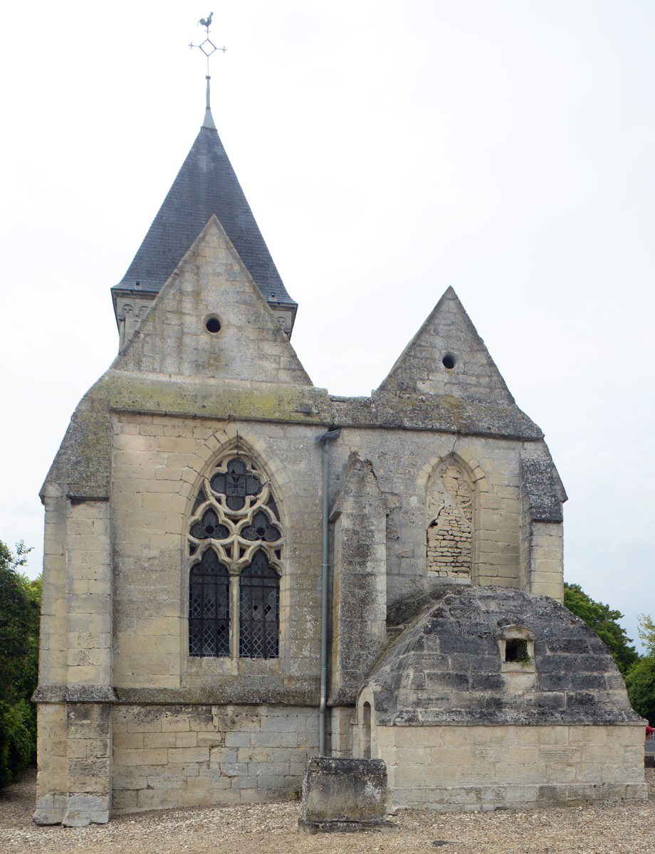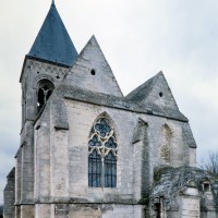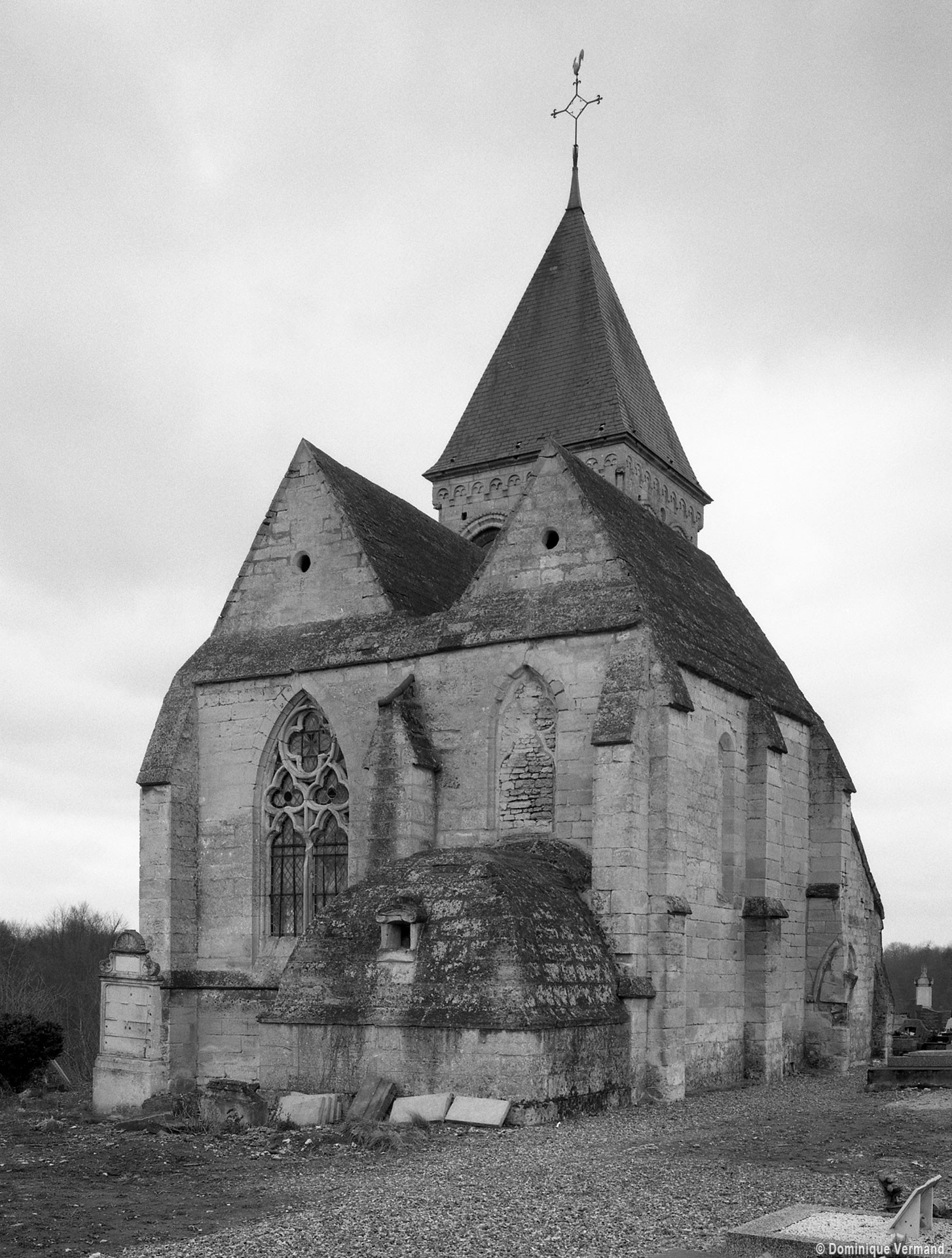 La travée qui porte le clocher, bâtie au milieu du 12ème siècle, comporte une voûte en berceau brisé. Une petite chapelle lui a été adjointe au nord dans le dernier quart du même siècle. C’est aussi de cette époque que date le clocher, que l’on rapprochera, par sa conception et son décor, de ceux de Mogneville et Cauffry.
