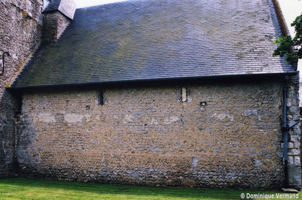 Saint-Quentin est un édifice fort complexe dont seule une analyse minutieuse permet de dégager les différentes étapes de construction. Bâtie au 11ème siècle, la nef est la partie la plus ancienne et constitue l’un des exemples les plus suggestifs qui se puissent trouver d’un appareillage en arêtes de poisson, une technique qui disparaît dès le début du 12ème siècle. Suivant un usage assez courant à l’époque, il n’y a pas de contreforts et les fenêtres sont des minuscules ouvertures dont l’archivolte est constituée par une pierre simplement échancrée. Vierge de tout remaniement, le mur nord est une bonne illustration d’un mode de bâtir alors fort répandu pour les modestes églises de campagne.
