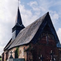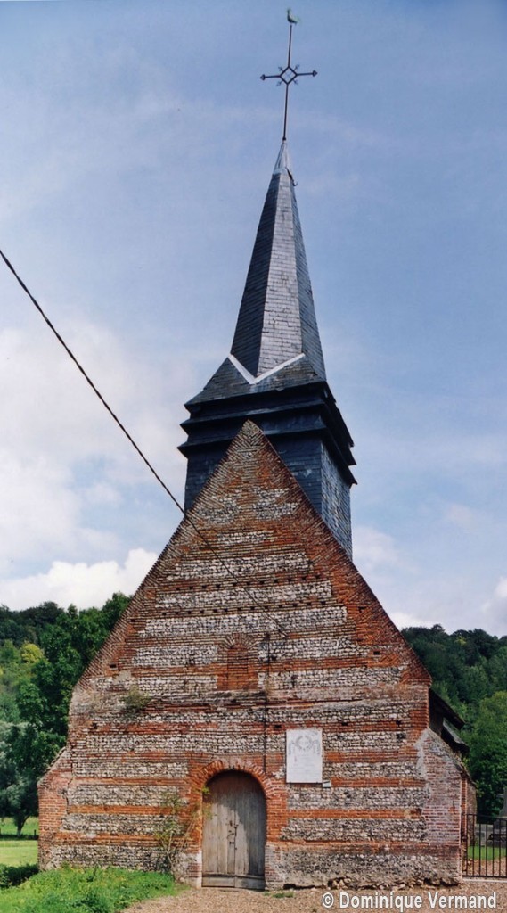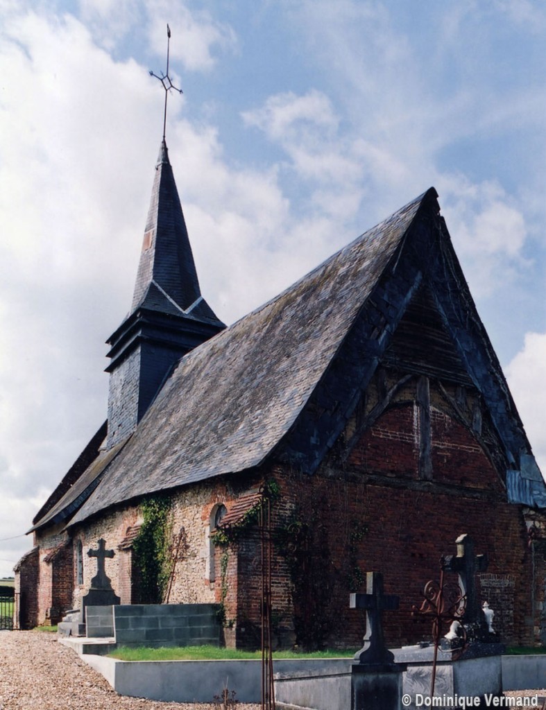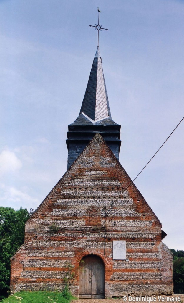 Bâtie à l’écart du village, la petite église Saint-Lambert est réduite depuis bien longtemps à une simple nef. Assez dégradée, elle est, à l’image de bien d’autres édifices de ce type, difficile à dater avec certitude. La maçonnerie à base de silex est peut-être ancienne, mais toutes les ouvertures, comme les contreforts, sont des réfections. La façade, que domine un clocher en charpente et ardoises, est mieux caractérisée avec son alternance de silex et de briques, disposés en bandes horizontales.