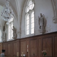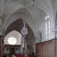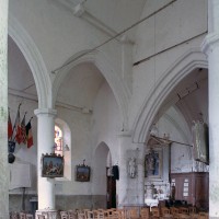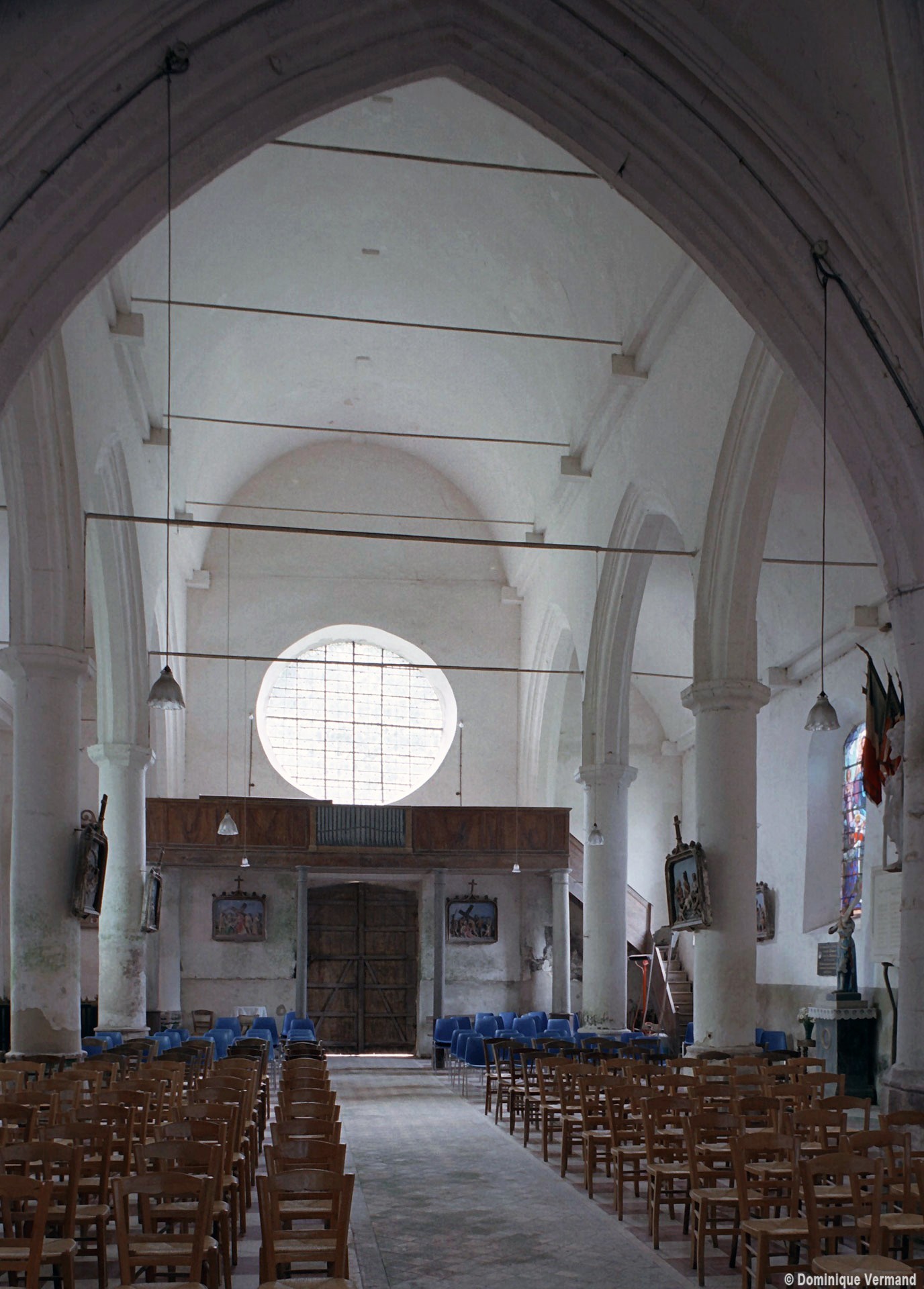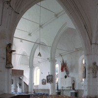 Face à ce petit chef d’oeuvre architectural, le reste de l’édifice est plus classique. Légèrement plus ancien que la nef, le transept est couvert de trois voûtes d’ogives à profil prismatique, caractéristiques de la fin du gothique. Deux grandes fenêtres à réseau flamboyant s’ouvrent au nord et au sud. Celles qui s’ouvraient vers l’est ont été bouchées. La nef vaut avant tout pour son volume spacieux et ouvert dû aux trois grandes arcades qui, de chaque côté, s’élèvent presque jusqu’au sommet des murs gouttereaux. L’extérieur, et tout particulièrement la façade, montre un bel exemple de damier de briques et de pierre. Au-dessus du portail, la grande rose a malheureusement perdu son remplage.