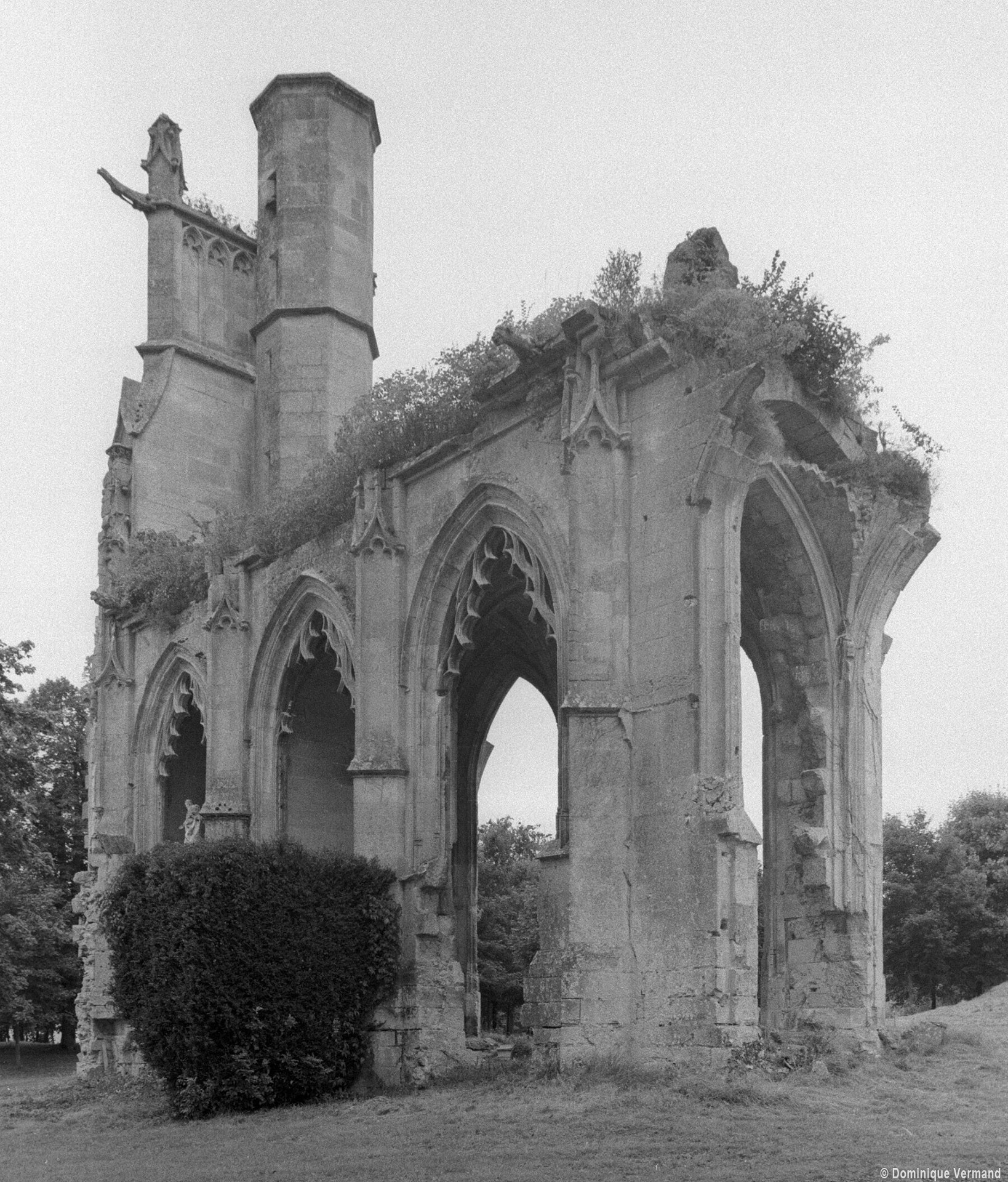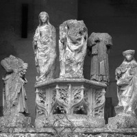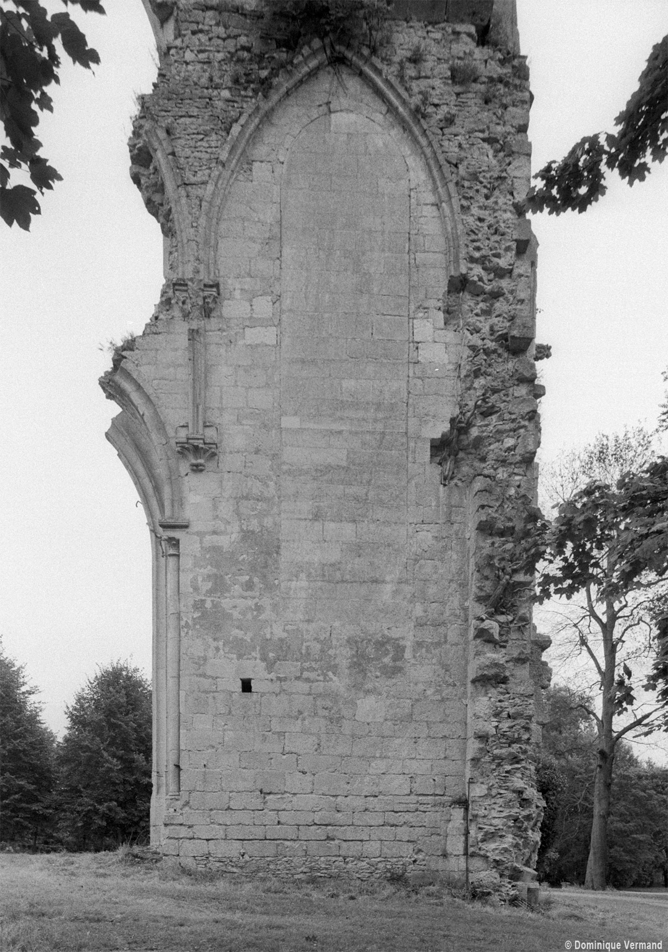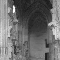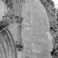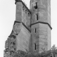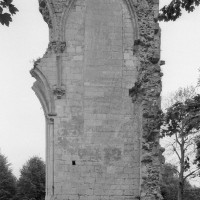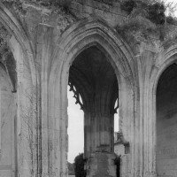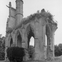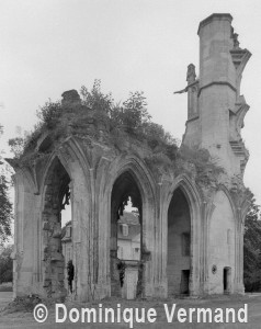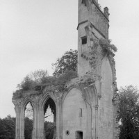 De celle-ci ne subsistent aujourd’hui que les trois premières chapelles flanquant le bas-côté sud du choeur, de style gothique flamboyant. Le mur ouest de la première chapelle s’appuie sur le bras sud du transept de l’église du 13ème siècle, bien reconnaissable avec ses chapiteaux à crochets. Une haute tourelle d’escalier octogonale qui appartient à la reconstruction flamboyante – et non au 13ème siècle comme cela est souvent écrit – domine l’ensemble. L’amorce d’une double volée d’arc-boutants donne une idée de l’importance de l’élévation de l’église du 16ème siècle. Avec ses 72 m de longueur – pratiquement comme la cathédrale de Senlis – c’était la plus vaste église de style flamboyant dans l’Oise. Très complet, son plan comprenait une nef de cinq travées avec bas côtés, un transept et un vaste choeur de cinq travées, avec bas-côtés et chapelles, terminé par une abside à cinq pans avec déambulatoire et trois chapelles rayonnantes. Un important jubé fermait le choeur. (D.Vermand, 2002)