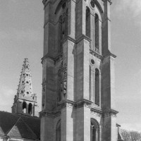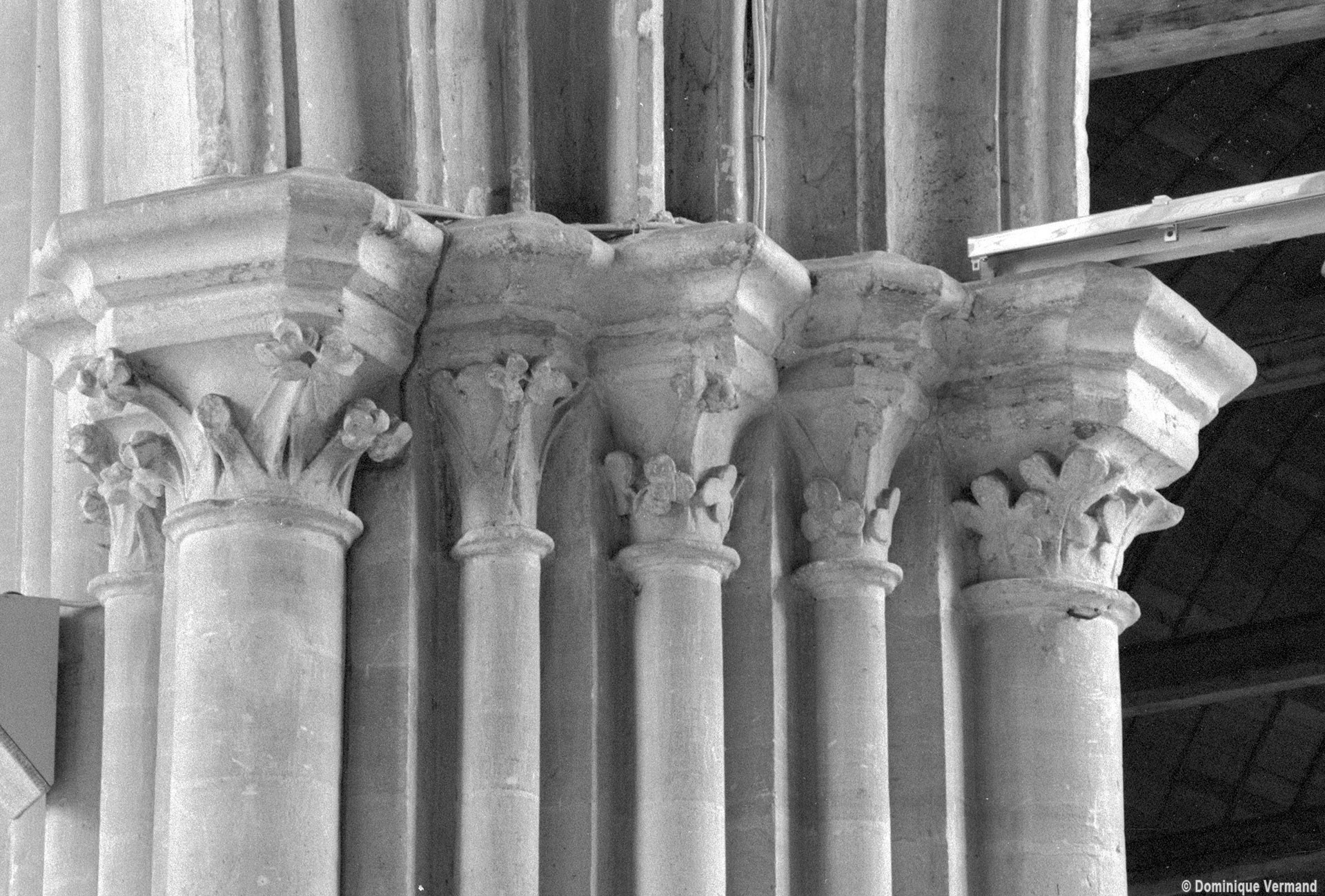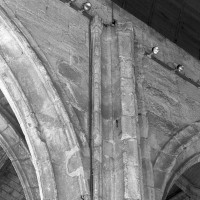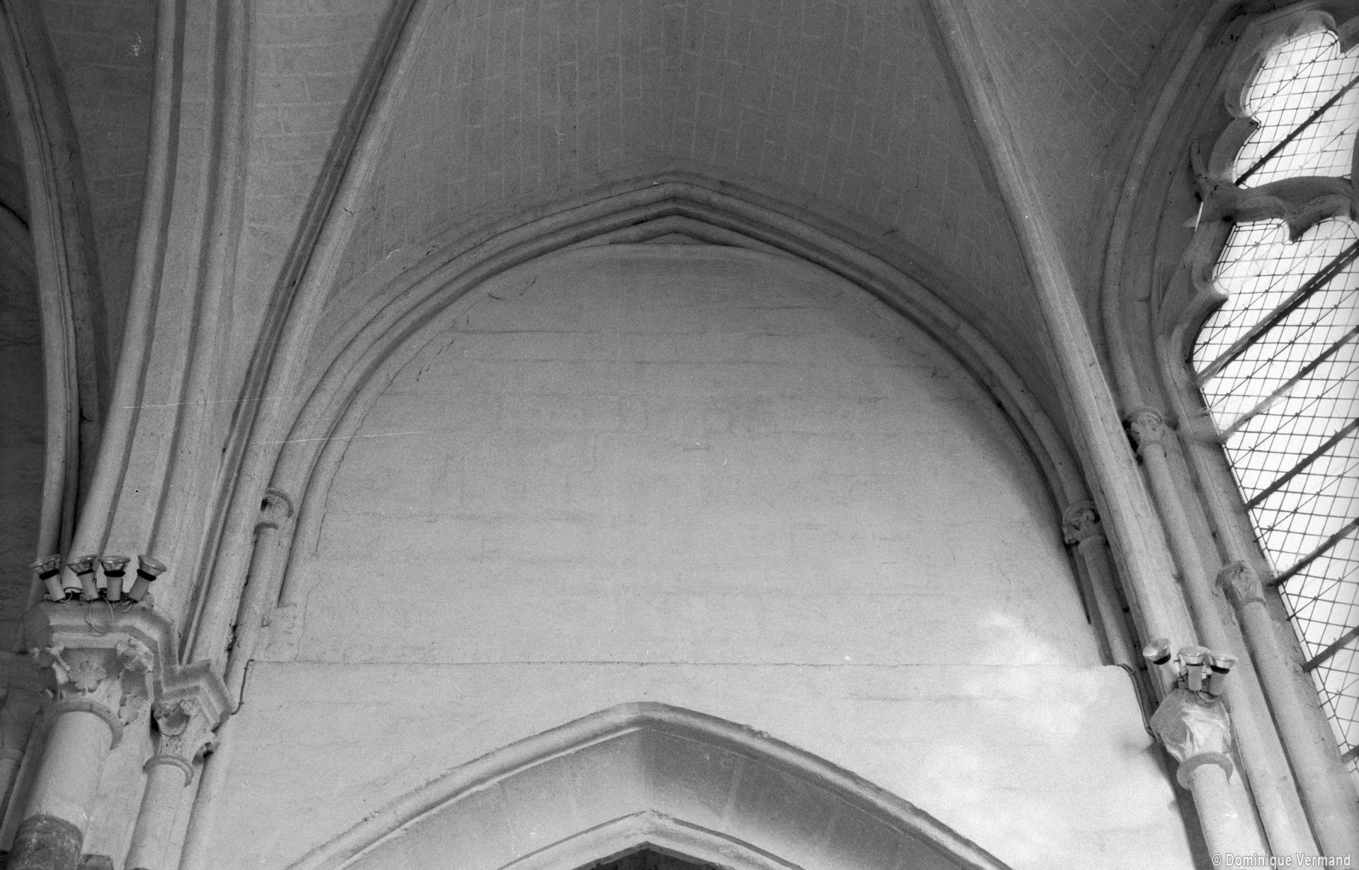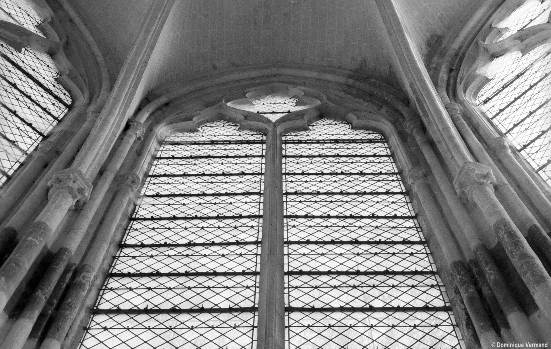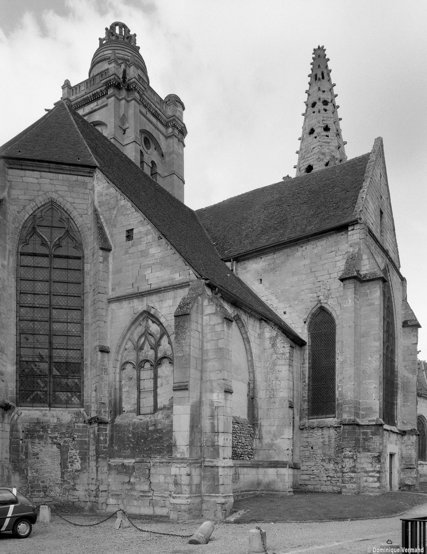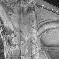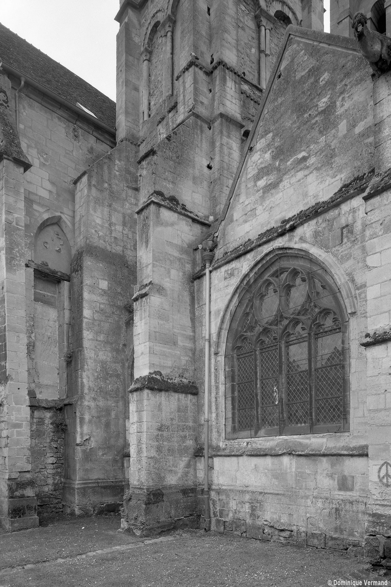 Fortement remanié au 16ème siècle, l’ensemble choeur/transept a été bâti dans les années 1240. Les fouilles de 1977/78 ont permis de montrer que le choeur du 13ème siècle comportait initialement une travée droite flanquée de deux chapelles terminées carrément et une abside à cinq pans. La communication entre les chapelles et la partie centrale s’effectuait par une arcade très étroite – une disposition qui se retrouve à Chambly – au-dessus de laquelle s’ouvrait un oculus.