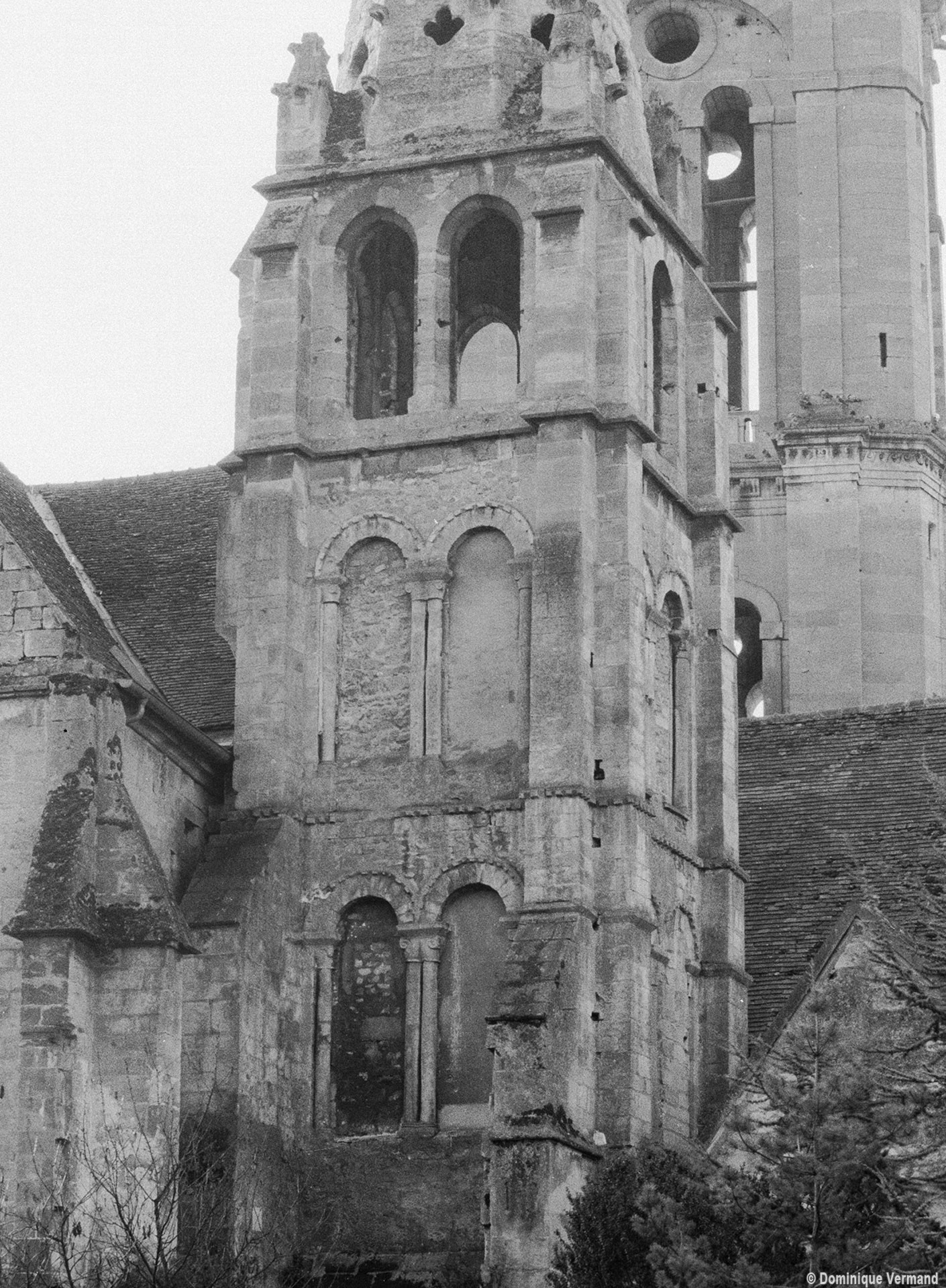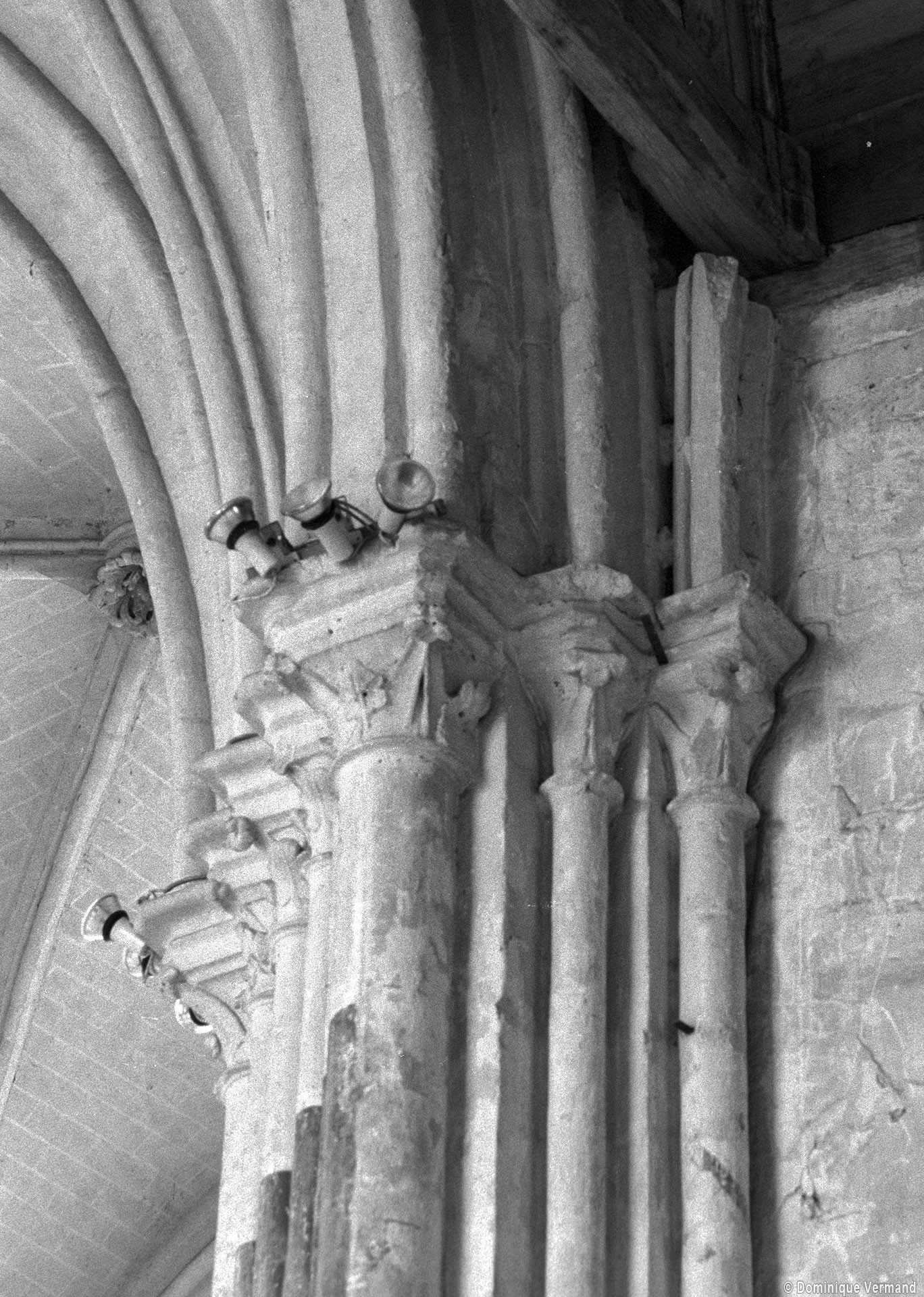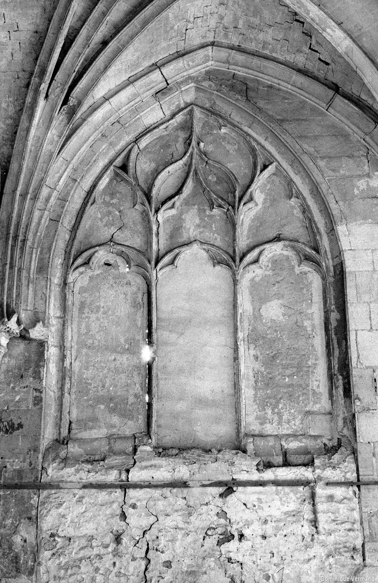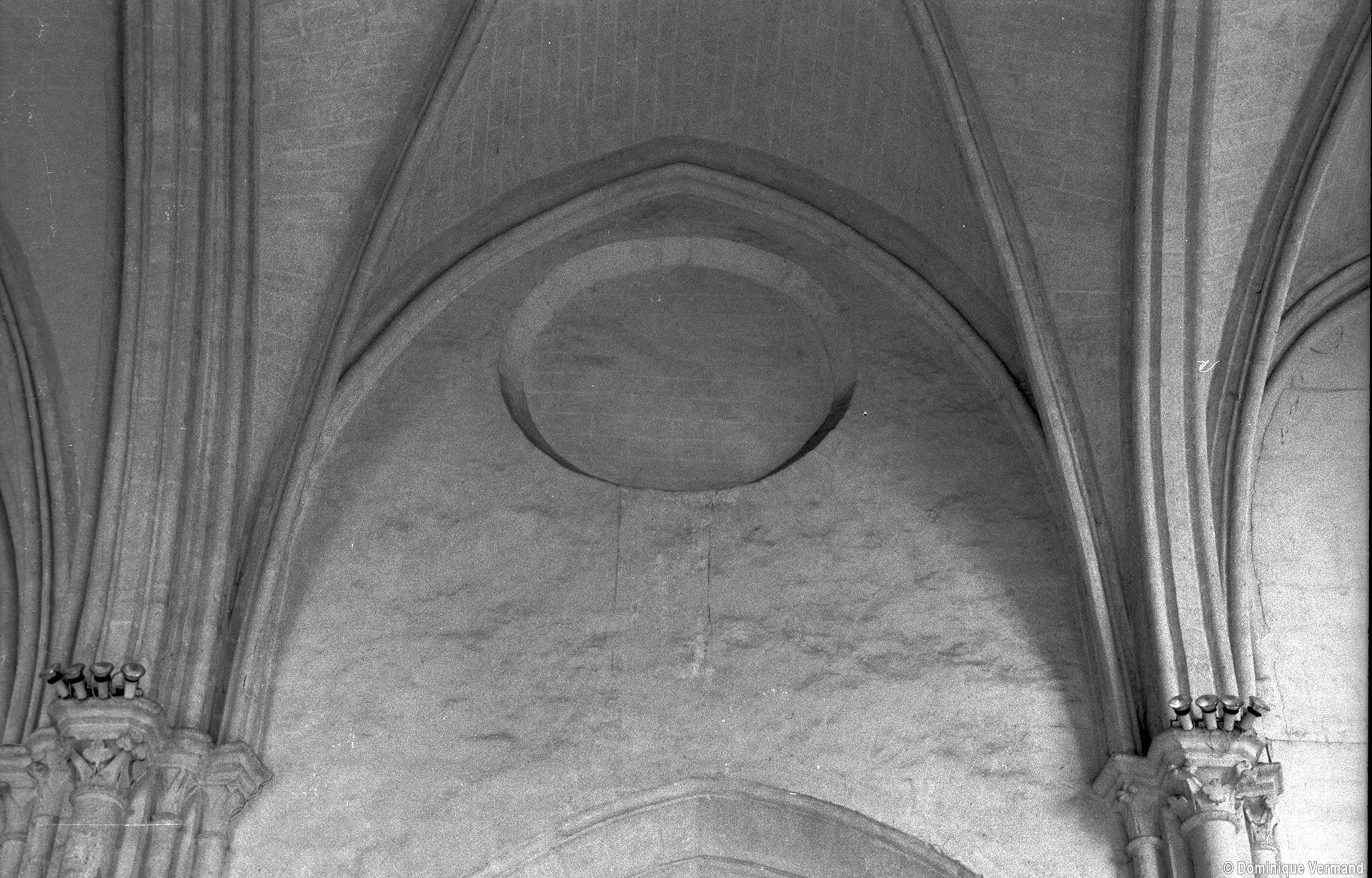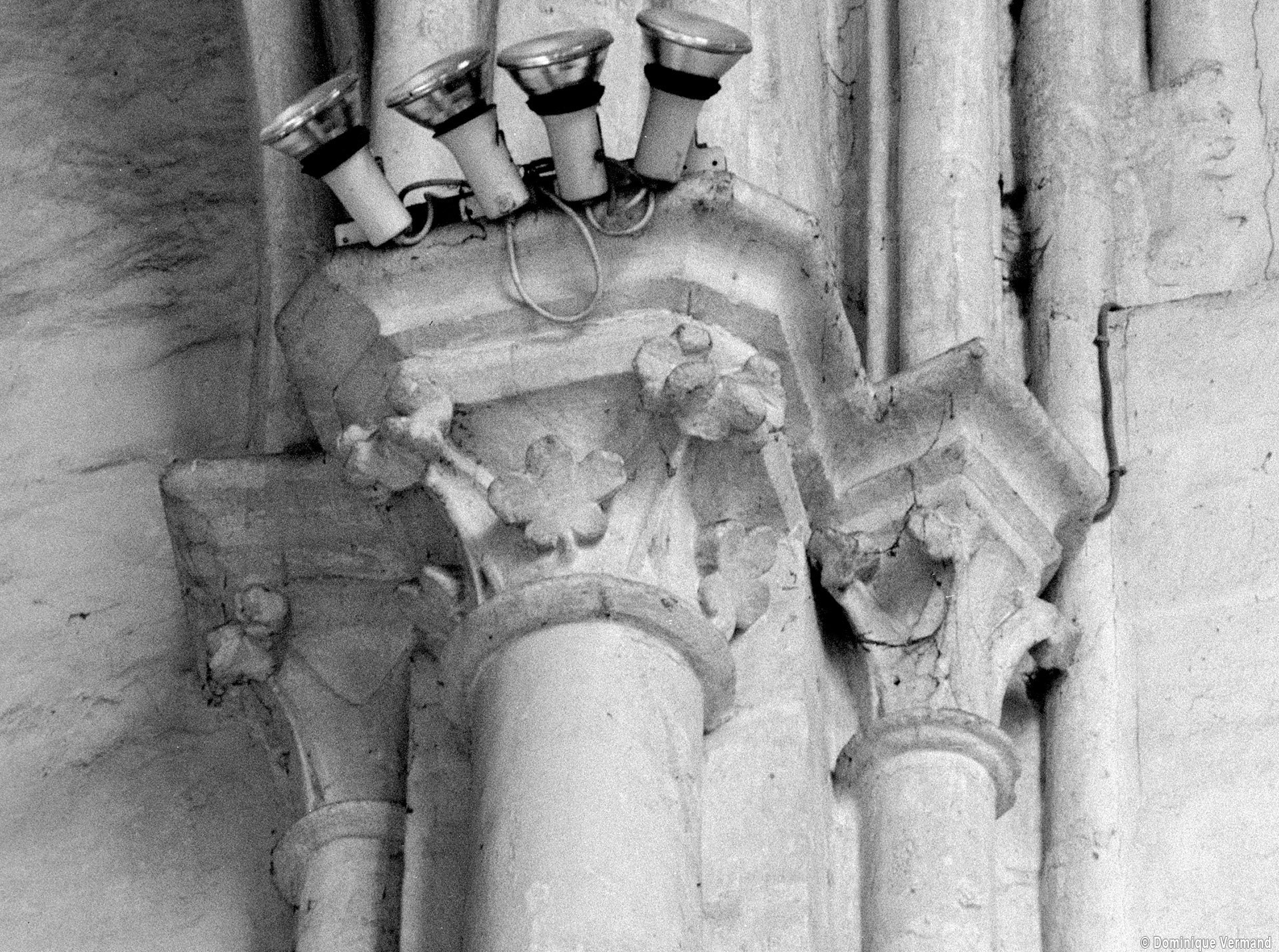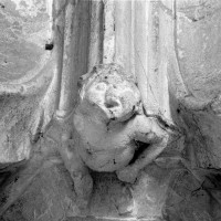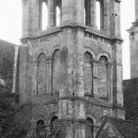 Fortement remanié au 16ème siècle, l’ensemble choeur/transept a été bâti dans les années 1240. Les fouilles de 1977/78 ont permis de montrer que le choeur du 13ème siècle comportait initialement une travée droite flanquée de deux chapelles terminées carrément et une abside à cinq pans. La communication entre les chapelles et la partie centrale s’effectuait par une arcade très étroite – une disposition qui se retrouve à Chambly – au-dessus de laquelle s’ouvrait un oculus.