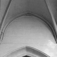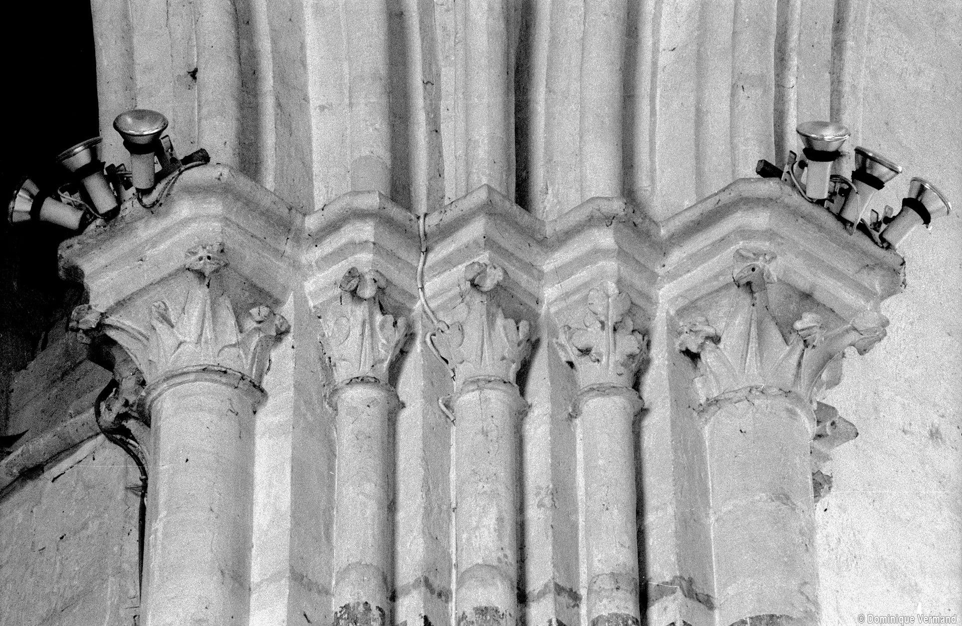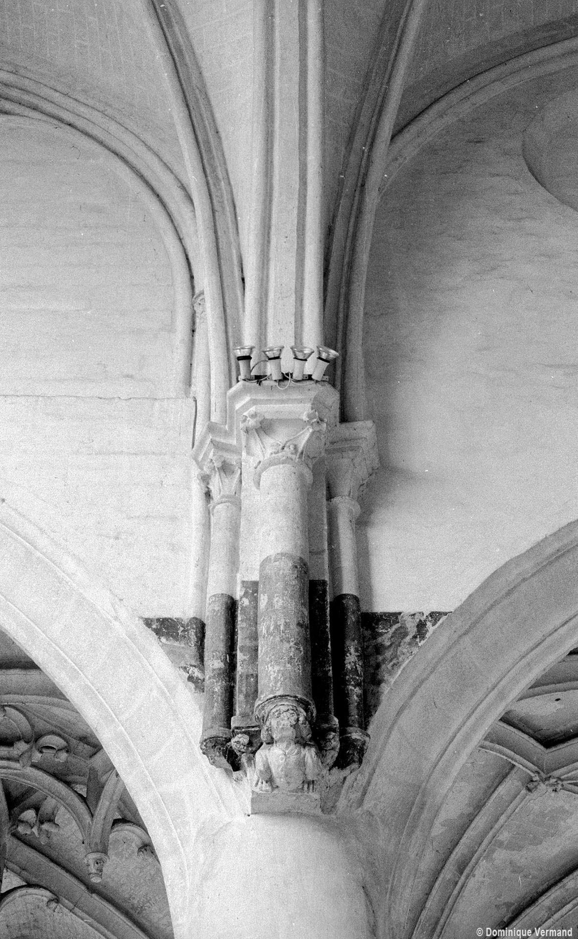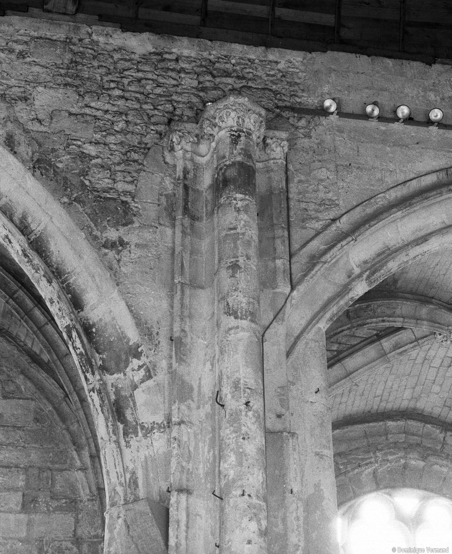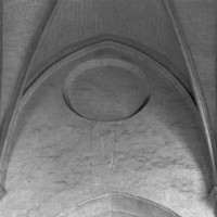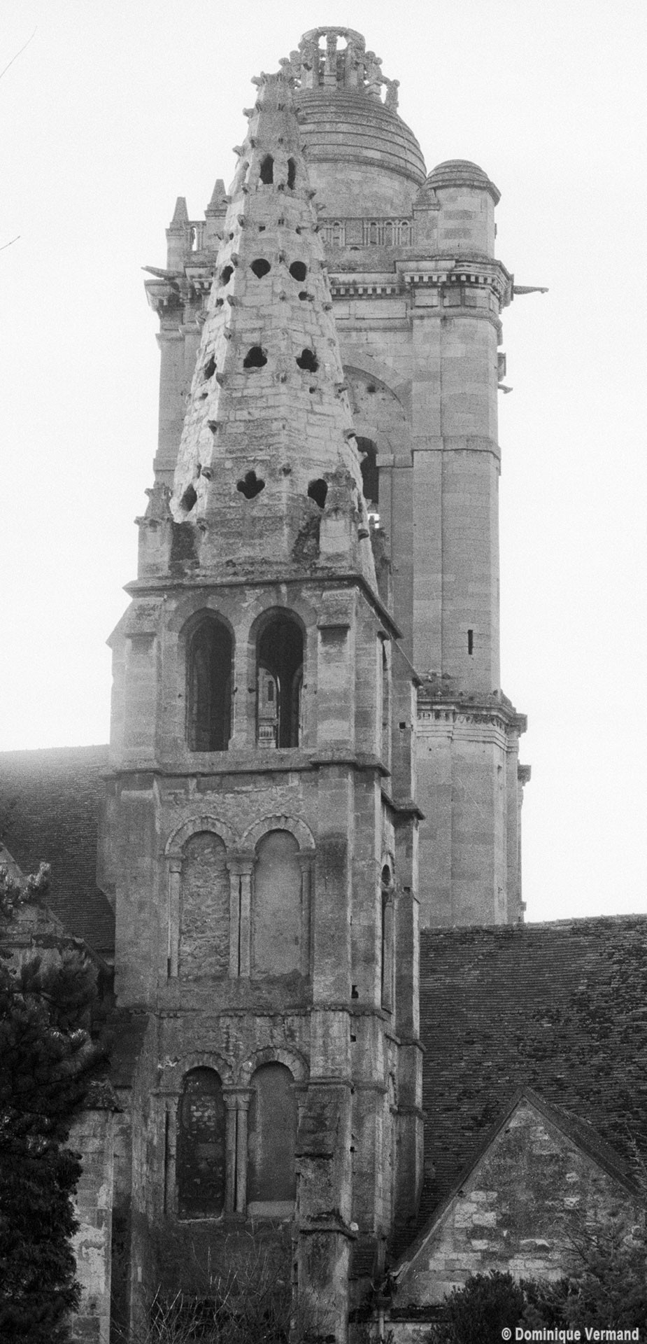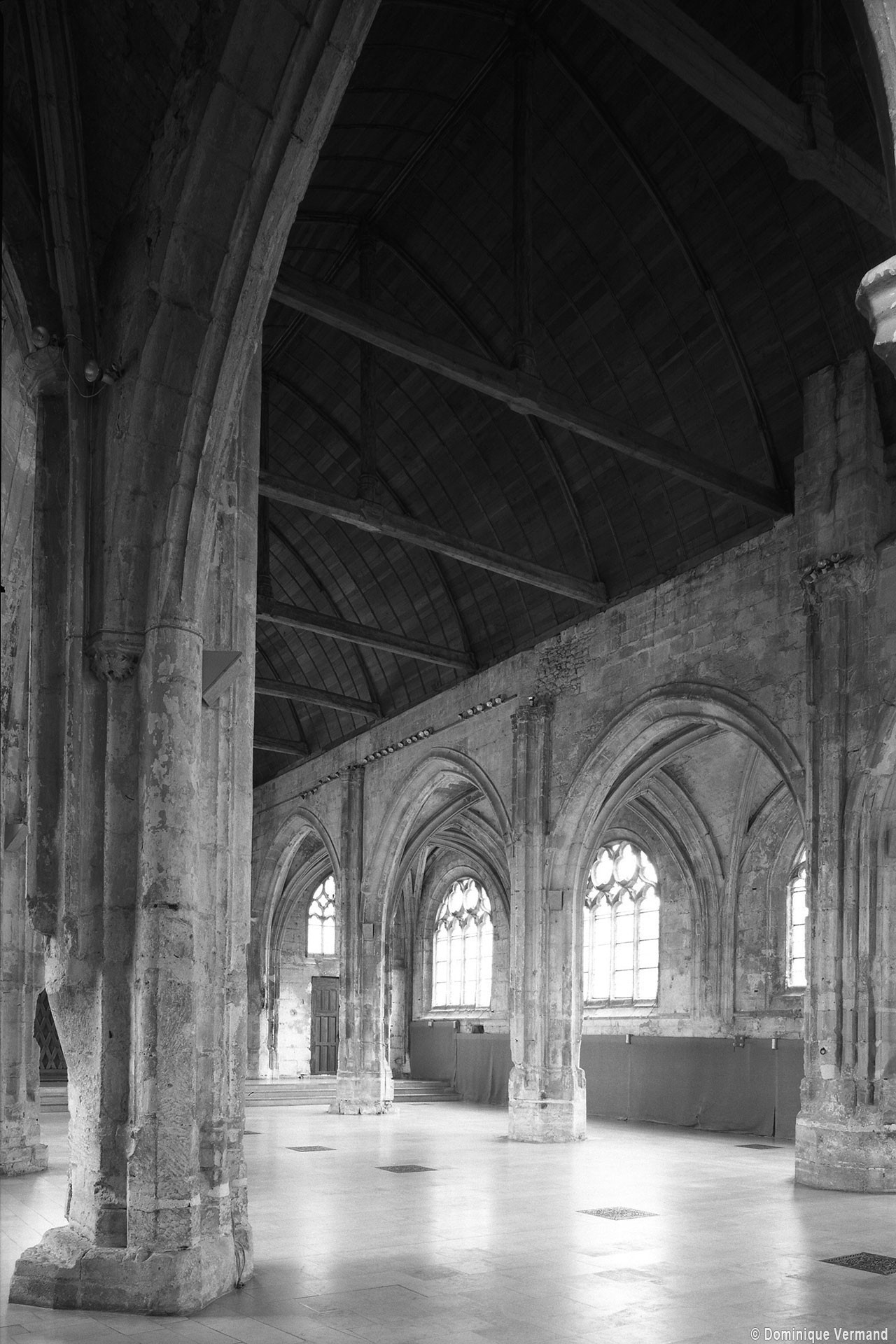 Fortement remanié au 16ème siècle, l’ensemble choeur/transept a été bâti dans les années 1240. Les fouilles de 1977/78 ont permis de montrer que le choeur du 13ème siècle comportait initialement une travée droite flanquée de deux chapelles terminées carrément et une abside à cinq pans. La communication entre les chapelles et la partie centrale s’effectuait par une arcade très étroite – une disposition qui se retrouve à Chambly – au-dessus de laquelle s’ouvrait un oculus.