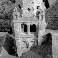 - L’église vue de l’ouest au 18ème siècle par Tavernier de Jonquières (Bnf).