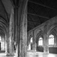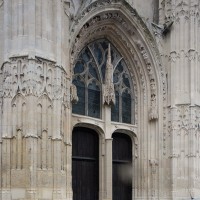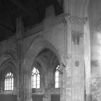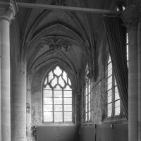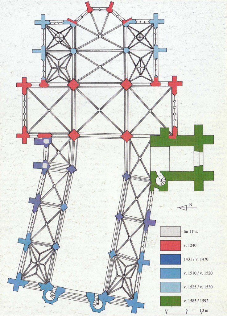 Vers 1530, les chapelles seront reconstruites en doublant leur longueur et la communication avec la partie centrale fera l’objet d’une complète reprise en sous-oeuvre, aboutissant au dispositif actuel de deux arcades retombant sur une pile circulaire. Tous les remplages des fenêtres seront par ailleurs refaits à cette époque dans le style flamboyant. Les piliers de la croisée, toutes les voûtes et les chapiteaux témoignent encore cependant de la qualité de la construction du 13ème siècle.