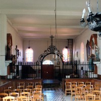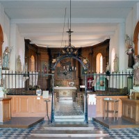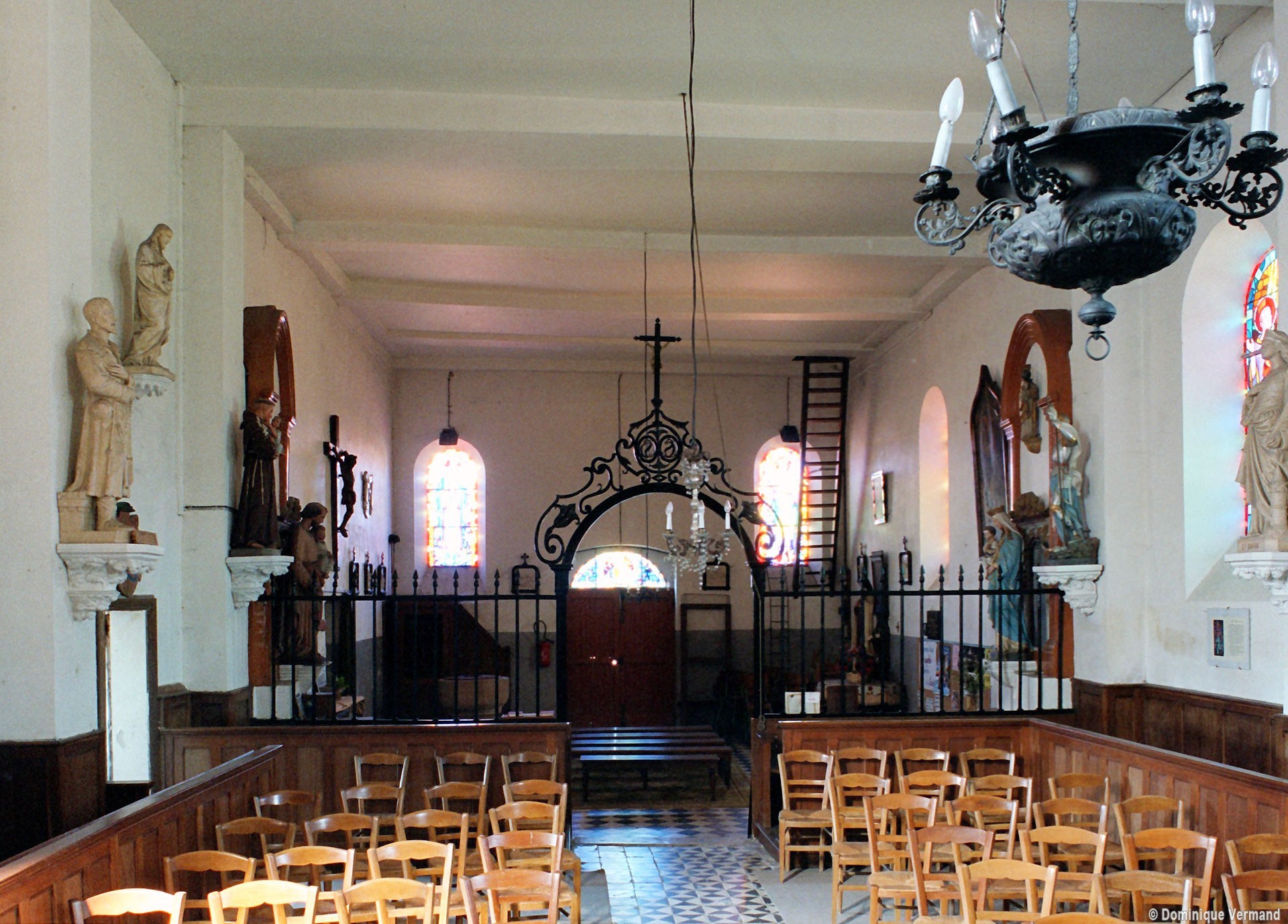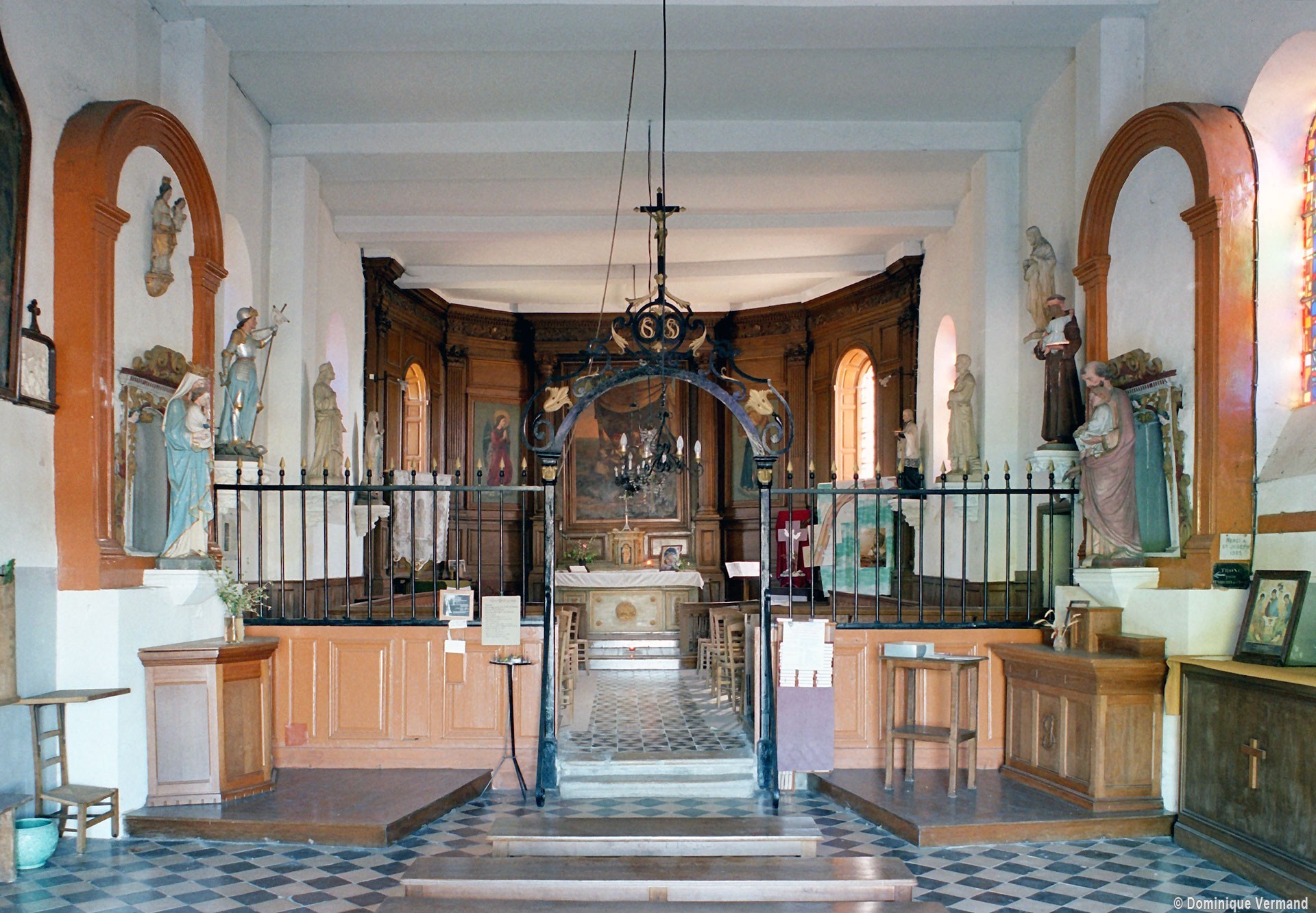 L’intérieur n’a pas de caractère architectural, mais vaut pour les belles boiseries du choeur, avec pilastres cannelés et chapiteaux corinthiens. Au-dessus du maître-autel, du 18ème siècle, le retable comporte une grande peinture des saints Côme et Damien, datée de 1840 et signée Coulon. Fait rare, la grille de choeur du 18ème siècle, en bois sculpté, est encore en place. Un Christ en croix du 15ème siècle et une Vierge à l’Enfant du 17ème siècle complètent le mobilier (2008).