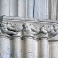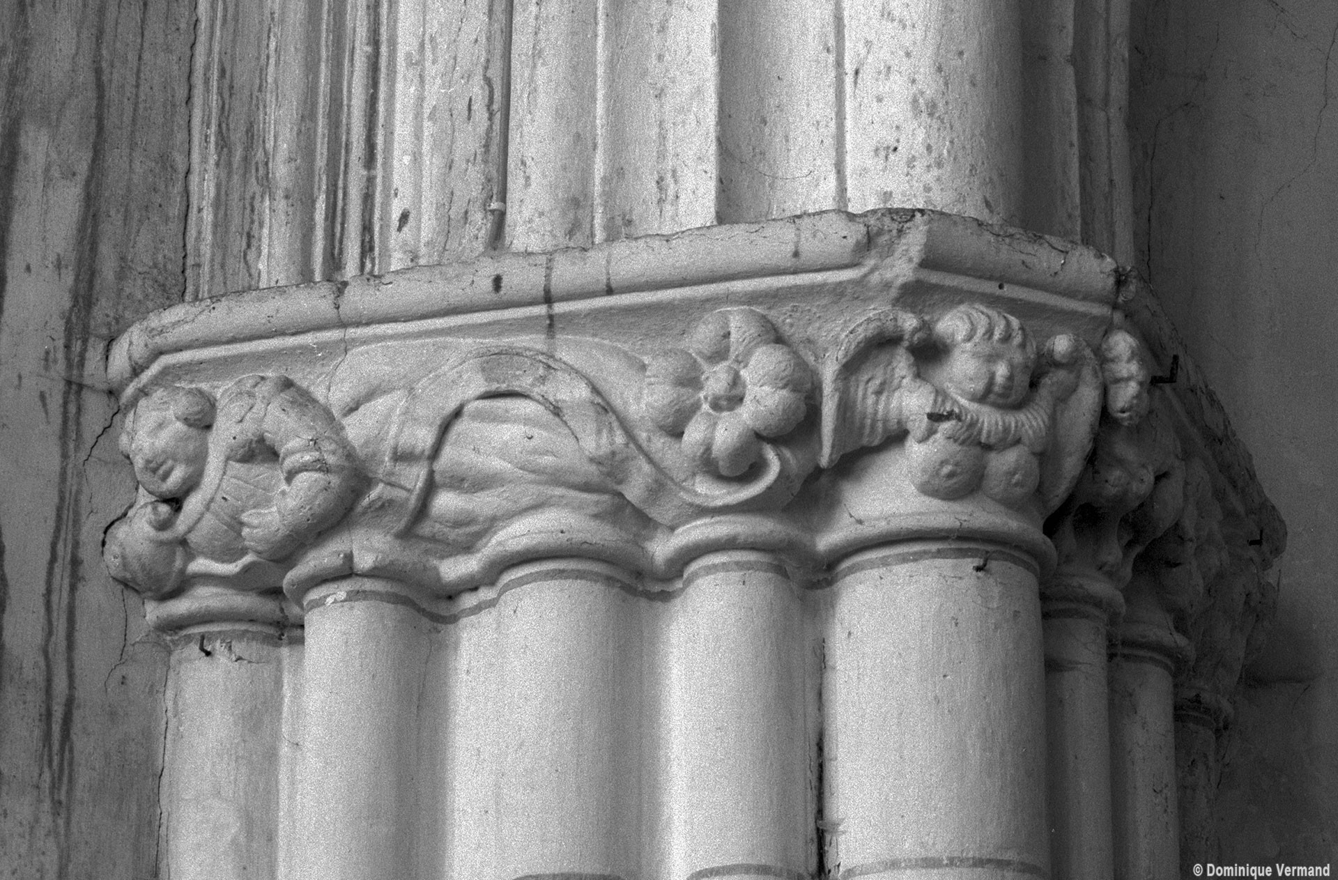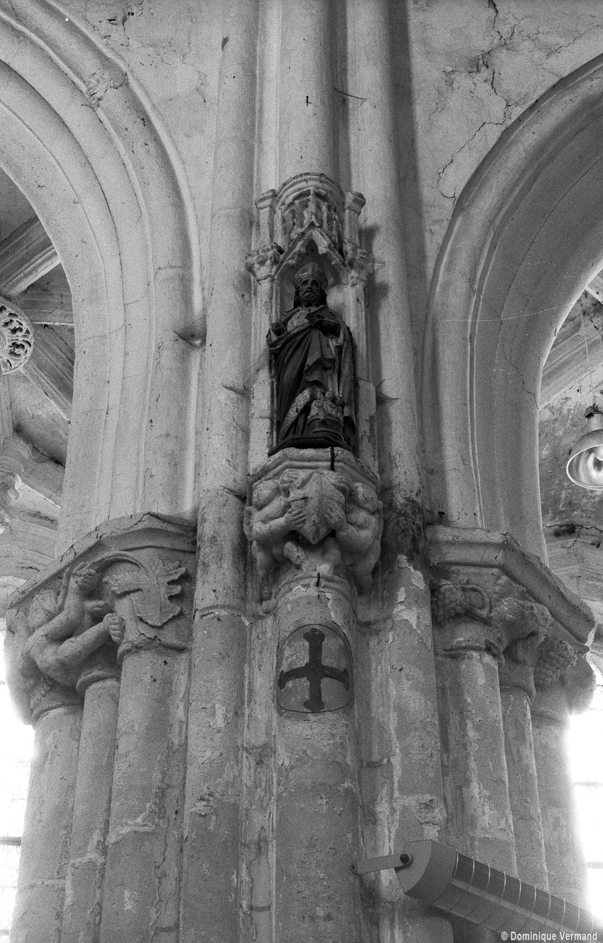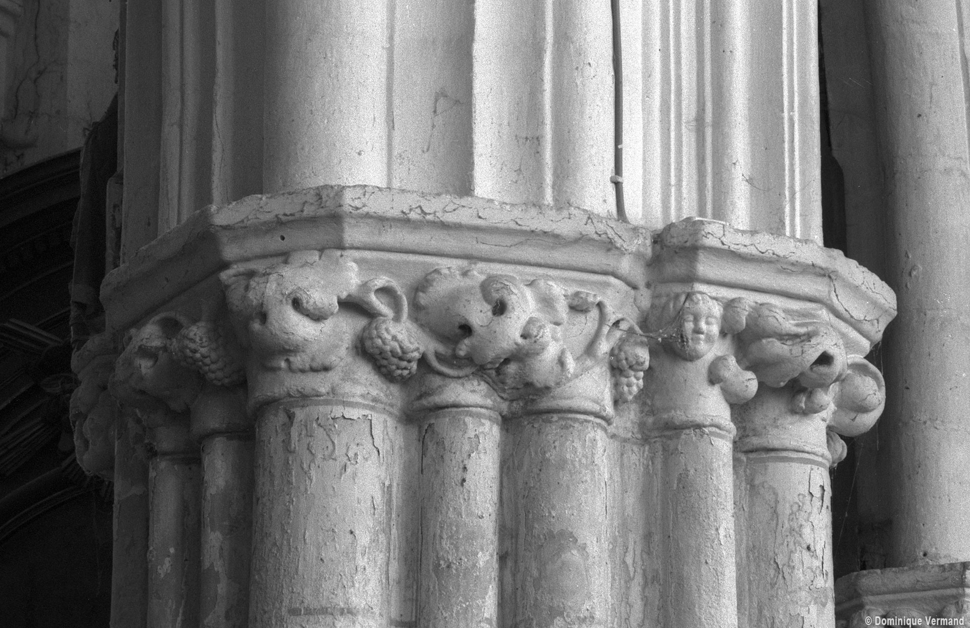Les arcades finement moulurées retombent sur des piles qui ne comportent pas moins de seize colonnettes. Treize d’entre elles, associées aux retombées des arcades et des voûtes du bas-côté, sont surmontées par des chapiteaux dont le décor de personnages, de feuilles et de fruits se poursuit d’une corbeille à l’autre à la manière d’une frise. Vers le vaisseau central, le tailloir du chapiteau de la demi-colonne médiane, qui correspond au doubleau de la voûte, sert de socle à une niche surmontée d’un dais finement ouvragé abritant une statue. Une disposition semblable se retrouve, pour le 16ème siècle, à l’église de Serans, dans le Vexin, et l’église de Trumilly l’adoptait déjà au 13ème siècle dans une variante avec petits panneaux peints.
