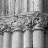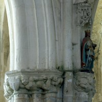 Bâtie durant le second quart du 13ème siècle et partie la plus ancienne avec l’abside, la tour de façade était à l’origine un clocher porche – son rez-de-chaussée était ouvert sur trois côtés – comme le prouve la disposition des contreforts.