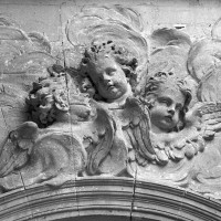 A l’opposé, le portique richement décoré – niches, demi-colonnes, sculptures en bas-relief, entablement – qui s’élève à l’emplacement de l’entrée de l’ancien choeur remonte à la seconde moitié du 16ème siècle.