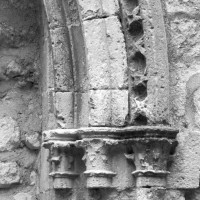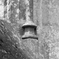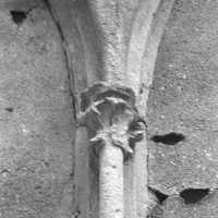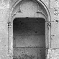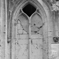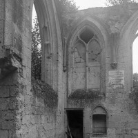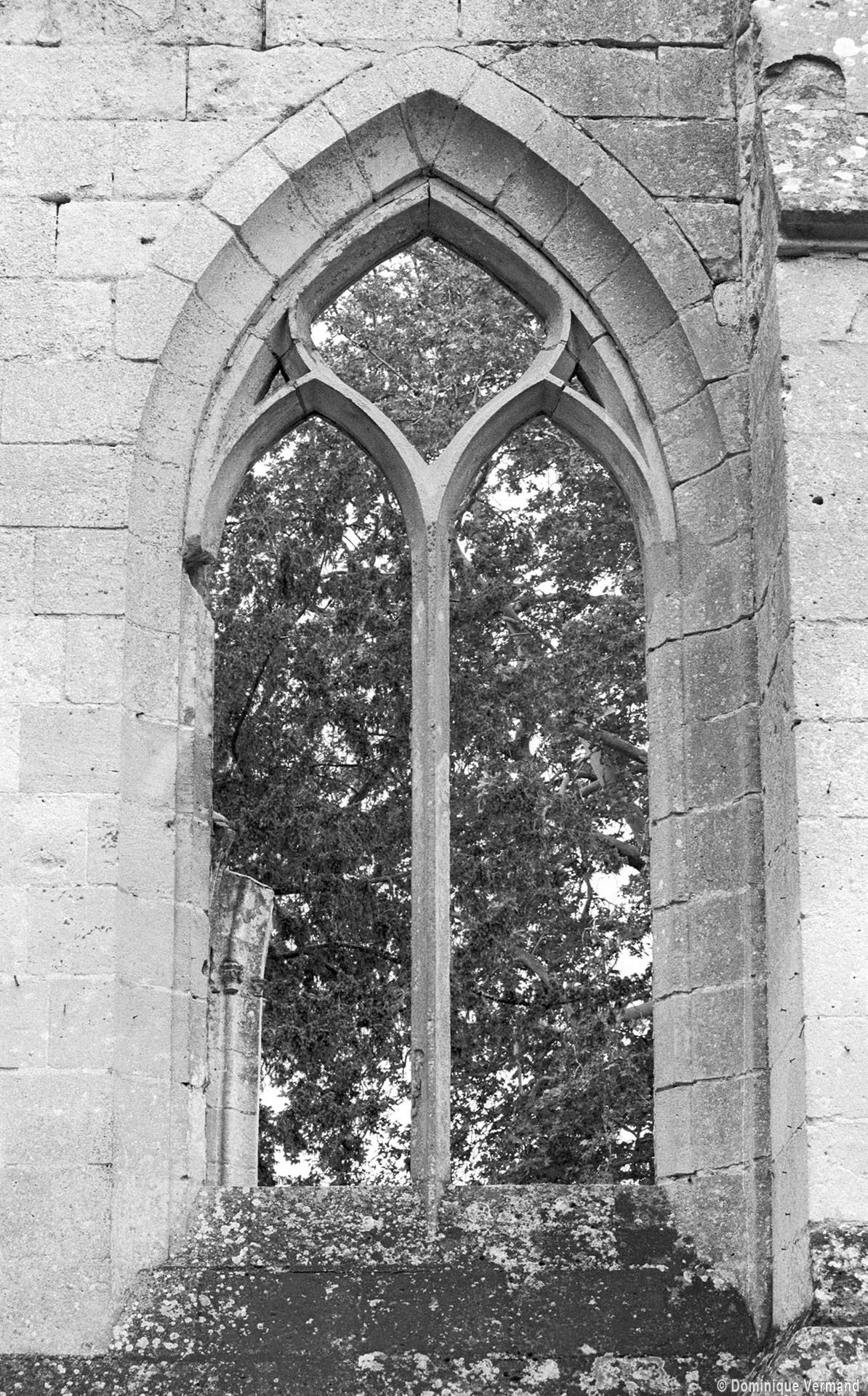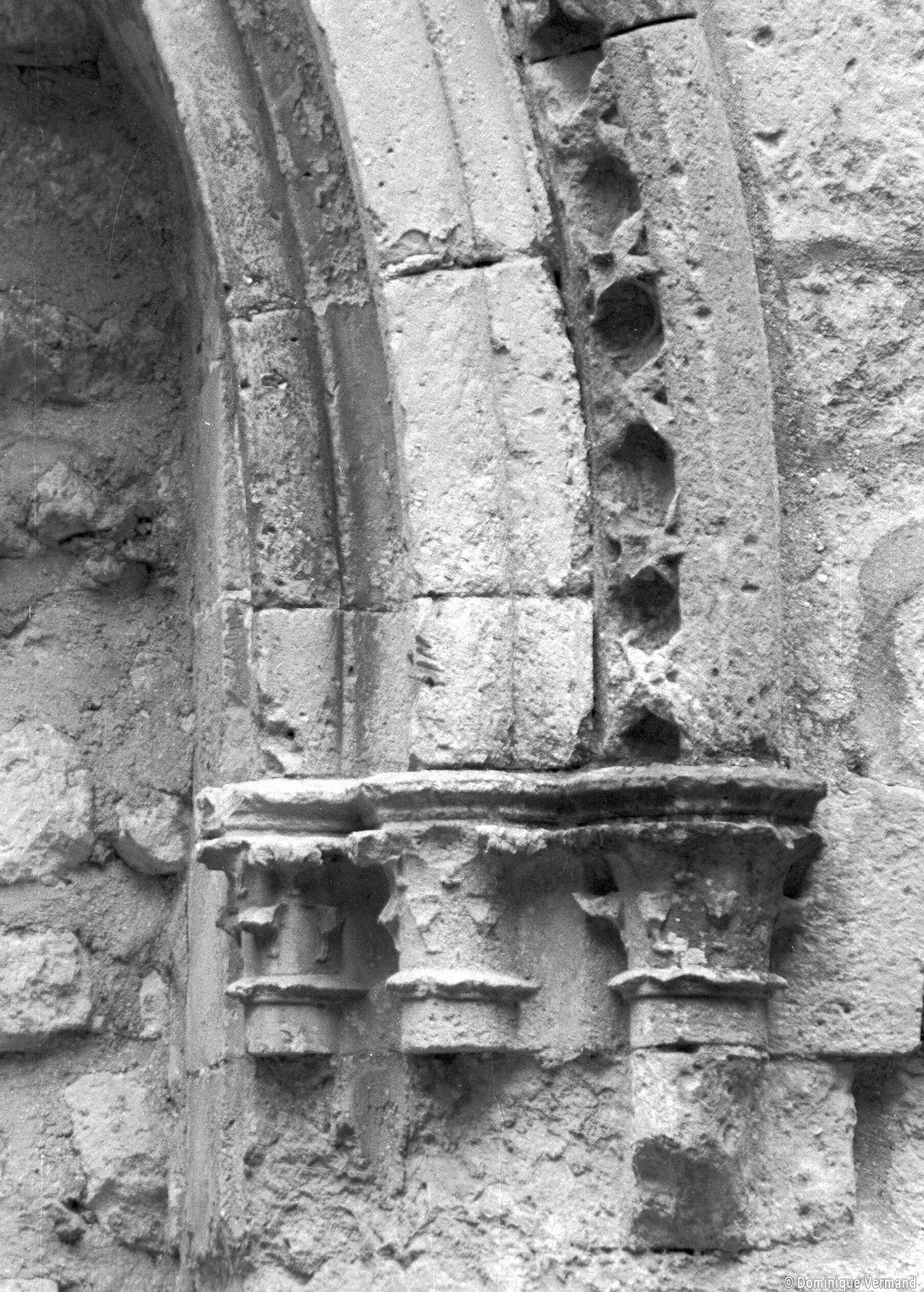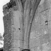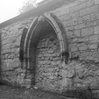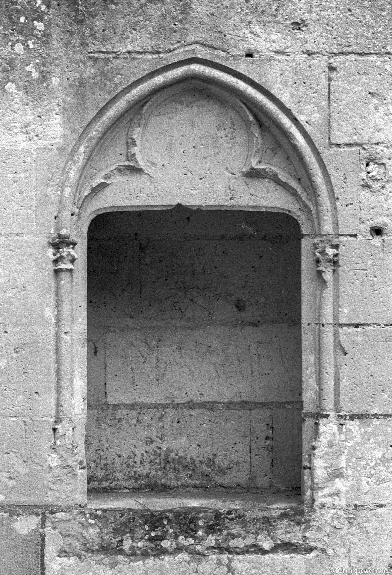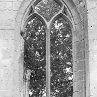 Entre les deux, on accordera toute son attention à la chapelle méridionale qui, bien que privée de ses voûtes, est d’un grand intérêt. Flanquée à l’angle sud-ouest d’une tourelle d’escalier polygonale contemporaine, elle constitue un rare exemple d’architecture de la fin du 14ème siècle dans notre région. Les retombées des trois voûtes d’ogives s’effectuent sur des culs-de-lampe finement sculptés. Si le réseau des plus grandes fenêtres a disparu, celui des trois fenêtres du mur sud subsiste et deux d’entre elles montrent un tracé très précoce – et encore timide – avec courbe et contre-courbe, à l’origine du flamboyant (2001, modifié 2016).