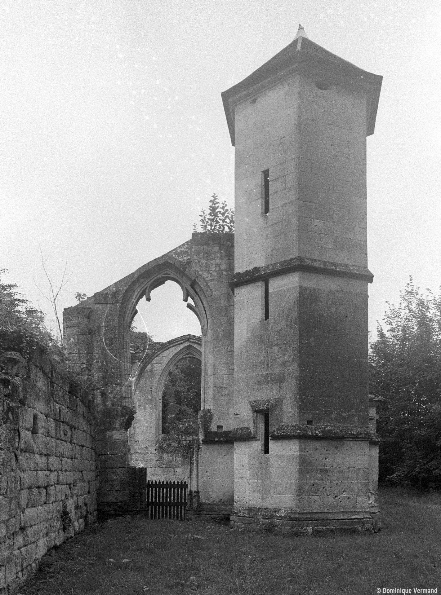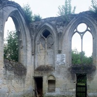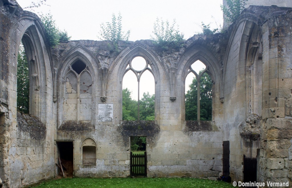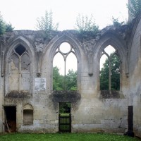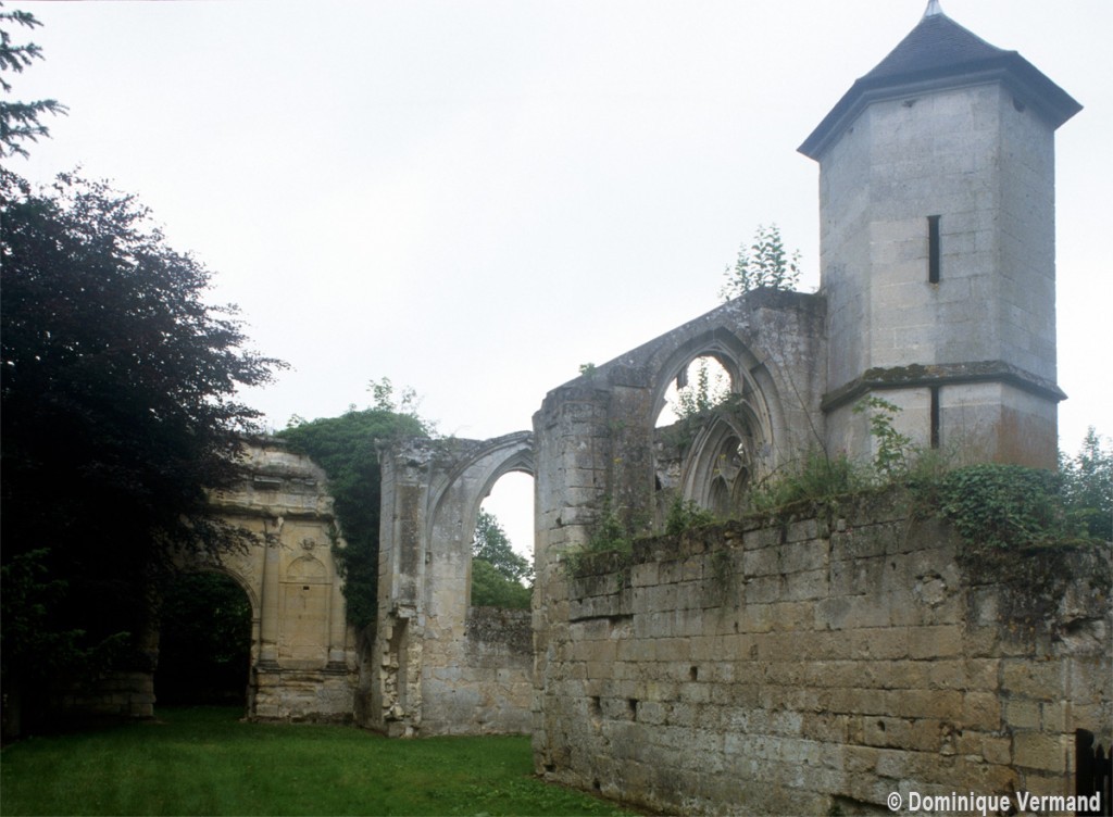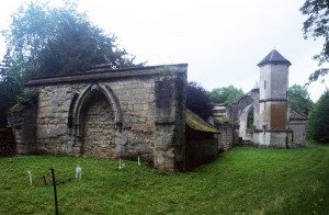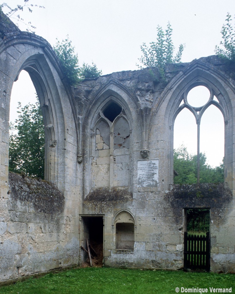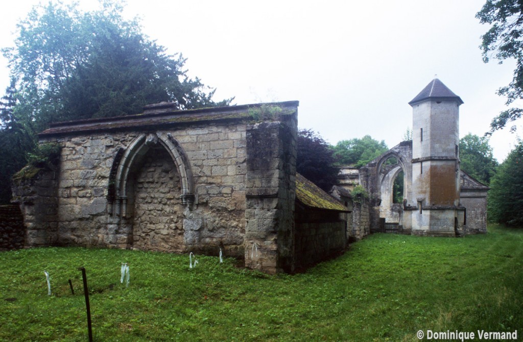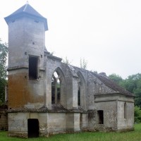 Les vestiges de l’église se dressent à proximité d’un imposant pavillon du milieu du 17ème siècle. L’ensemble appartient à l’Office National des Forêts. Le plan initial ne peut être restitué car tout le côté nord a été détruit. Avec son portail à fines colonnettes, la partie occidentale de la longue nef unique doit remonter à l’époque de la fondation.